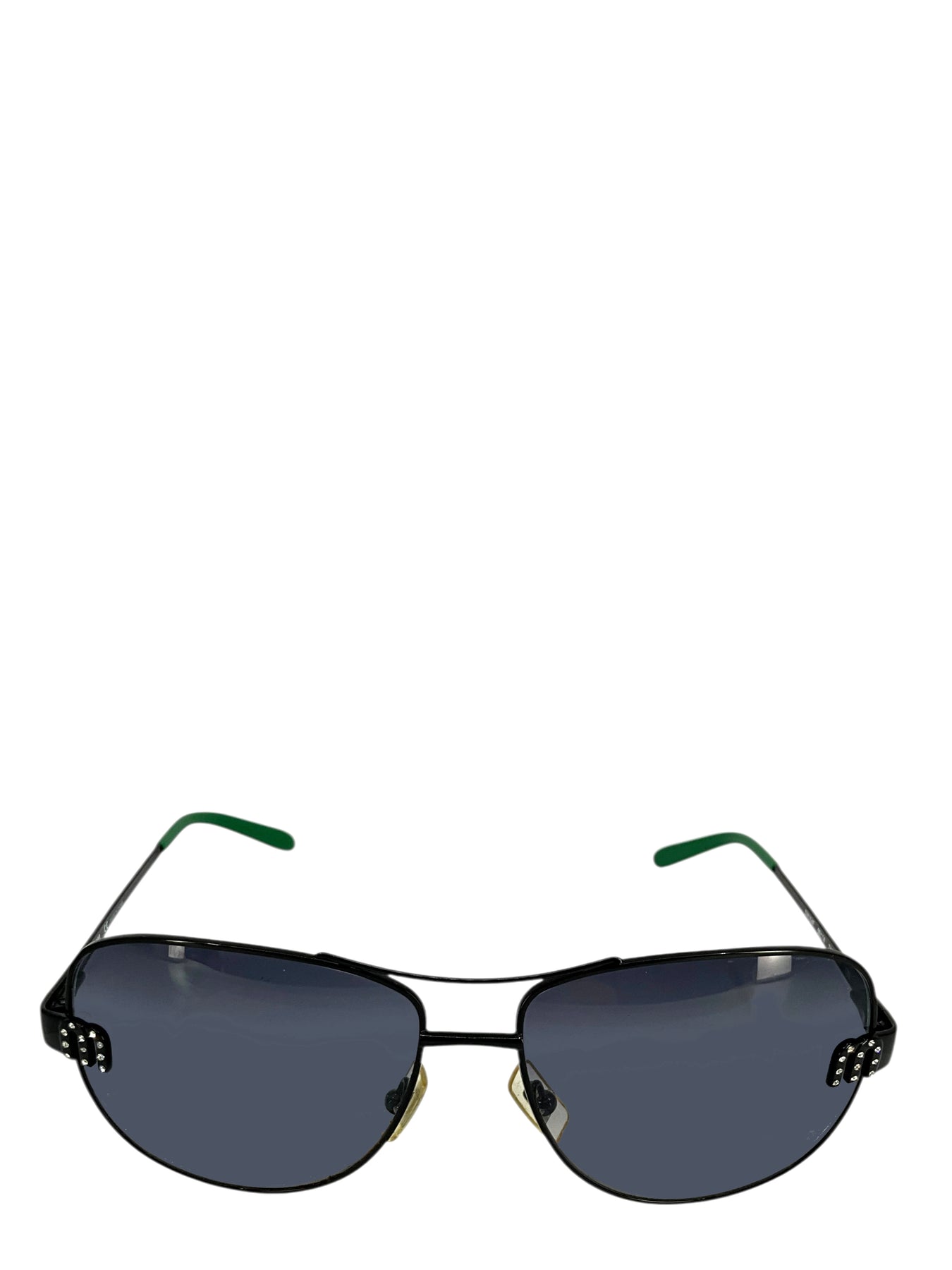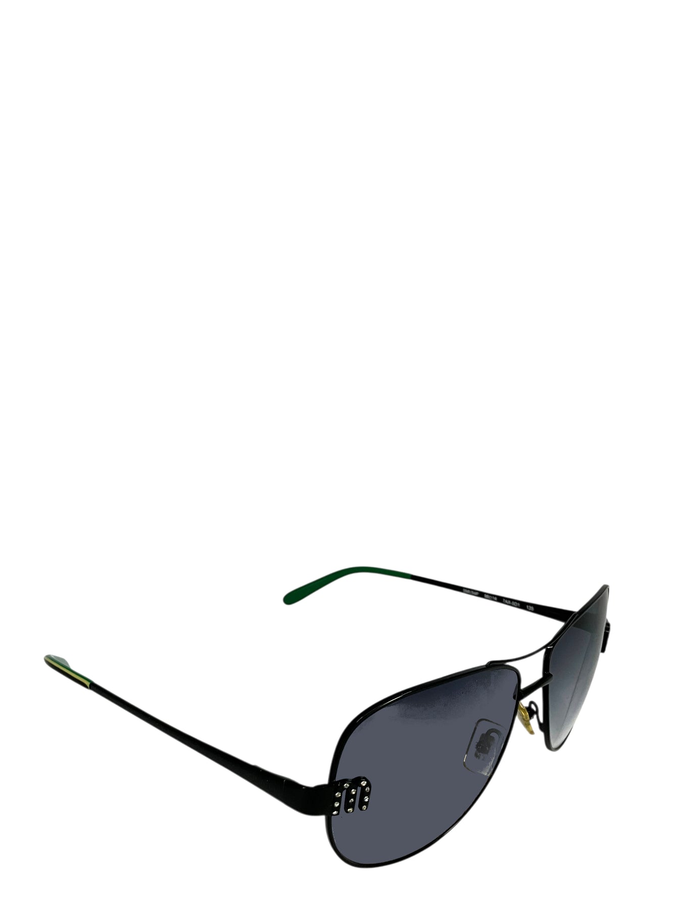 Add to your collection this guaranteed authentic pair of Miu Miu SMU54F Aviator Sunglasses featuring black metal frames and crystal-encrusted M logo's.