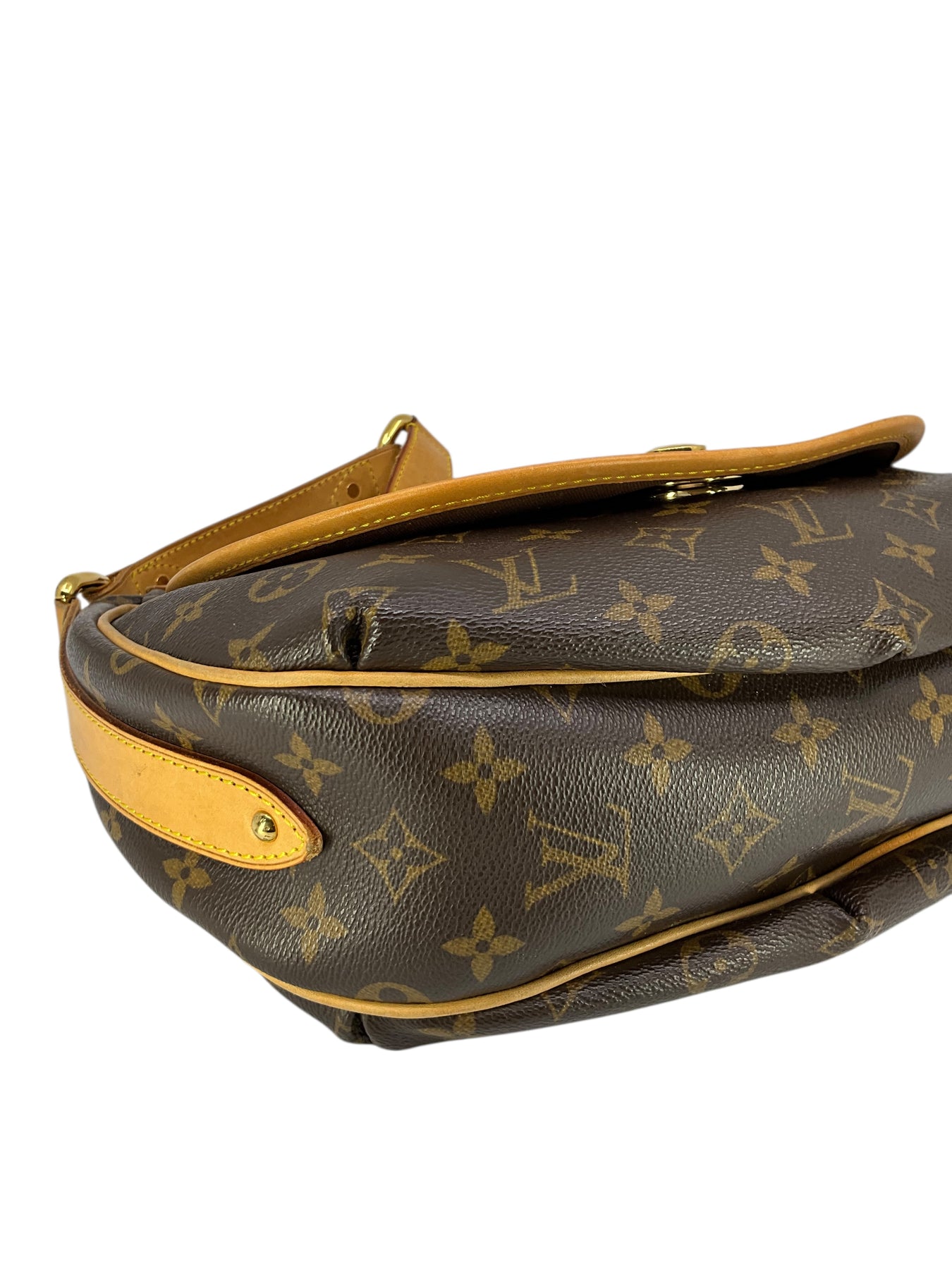 We guarantee authenticity of this Louis Vuitton Monogram Canvas Tulum PM crafted from signature brown monogram canvas and natural vachetta cowhide. Featuring a flat leather shoulder strap and a roomy, functional front flap compartment with a secure logo-engraved turn-lock closure.