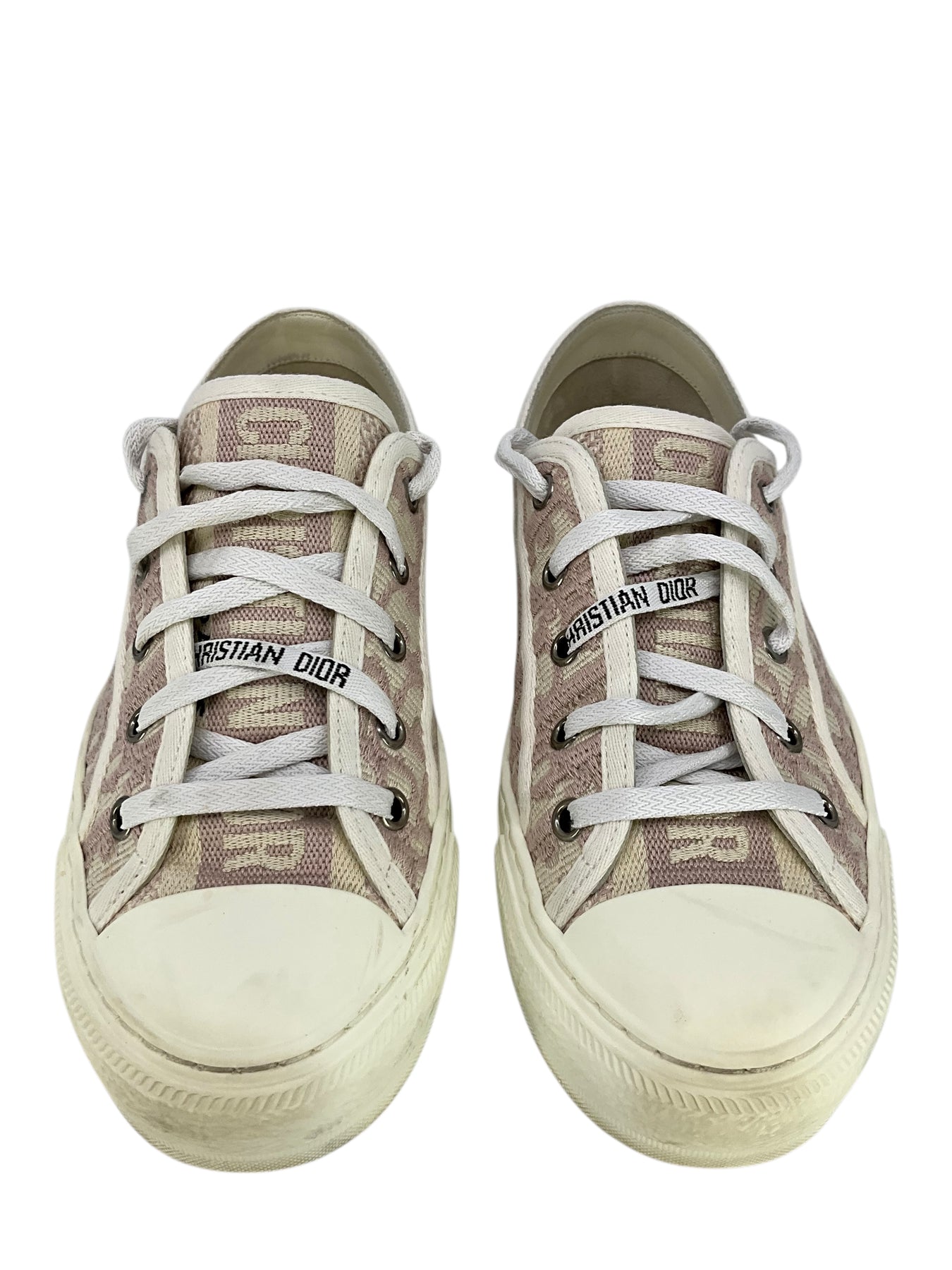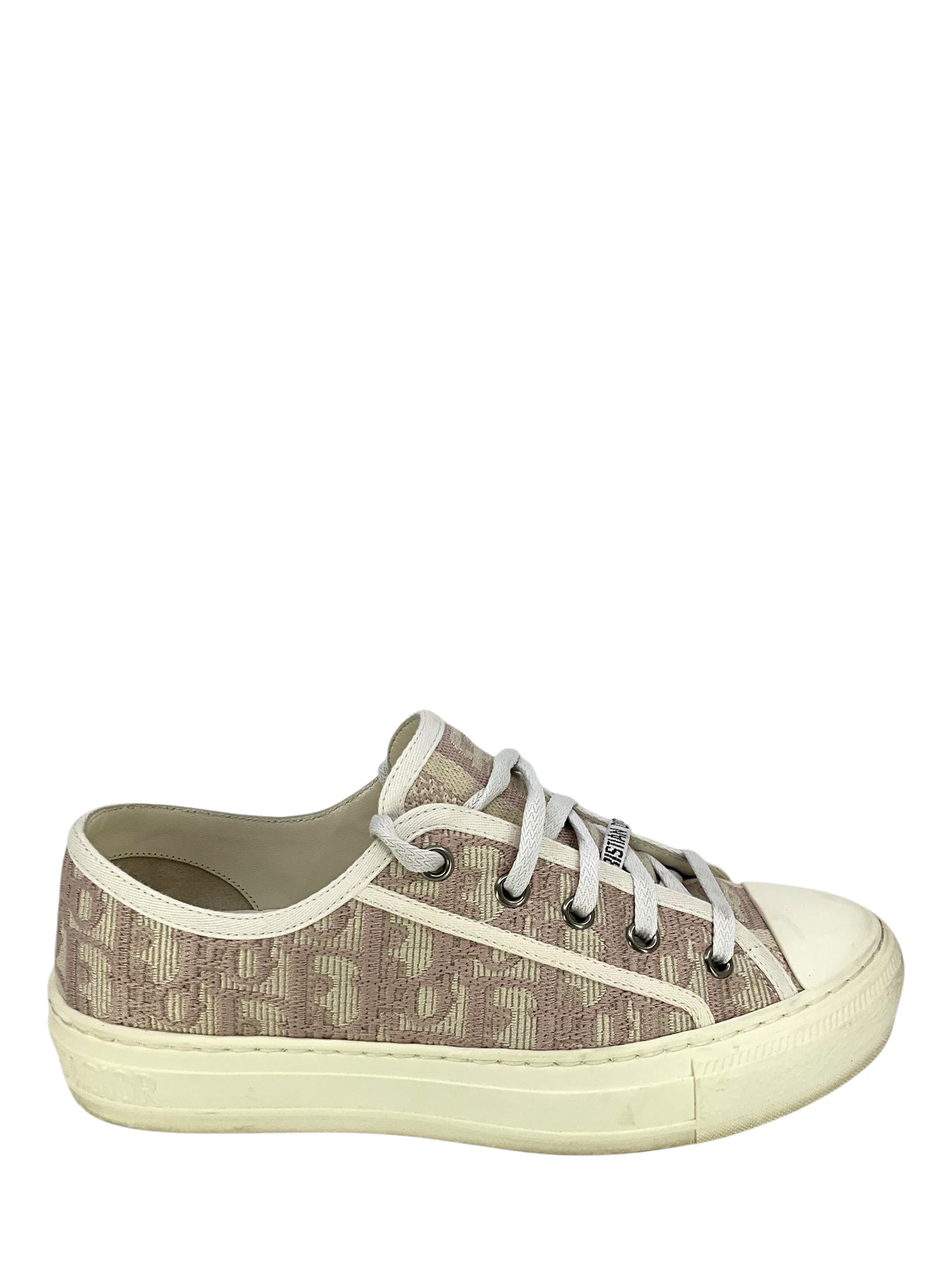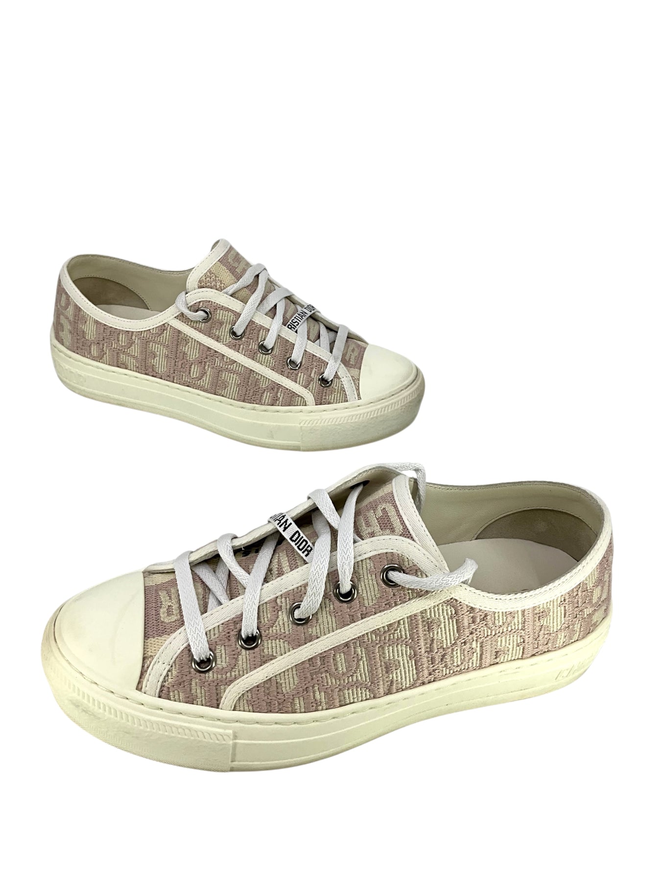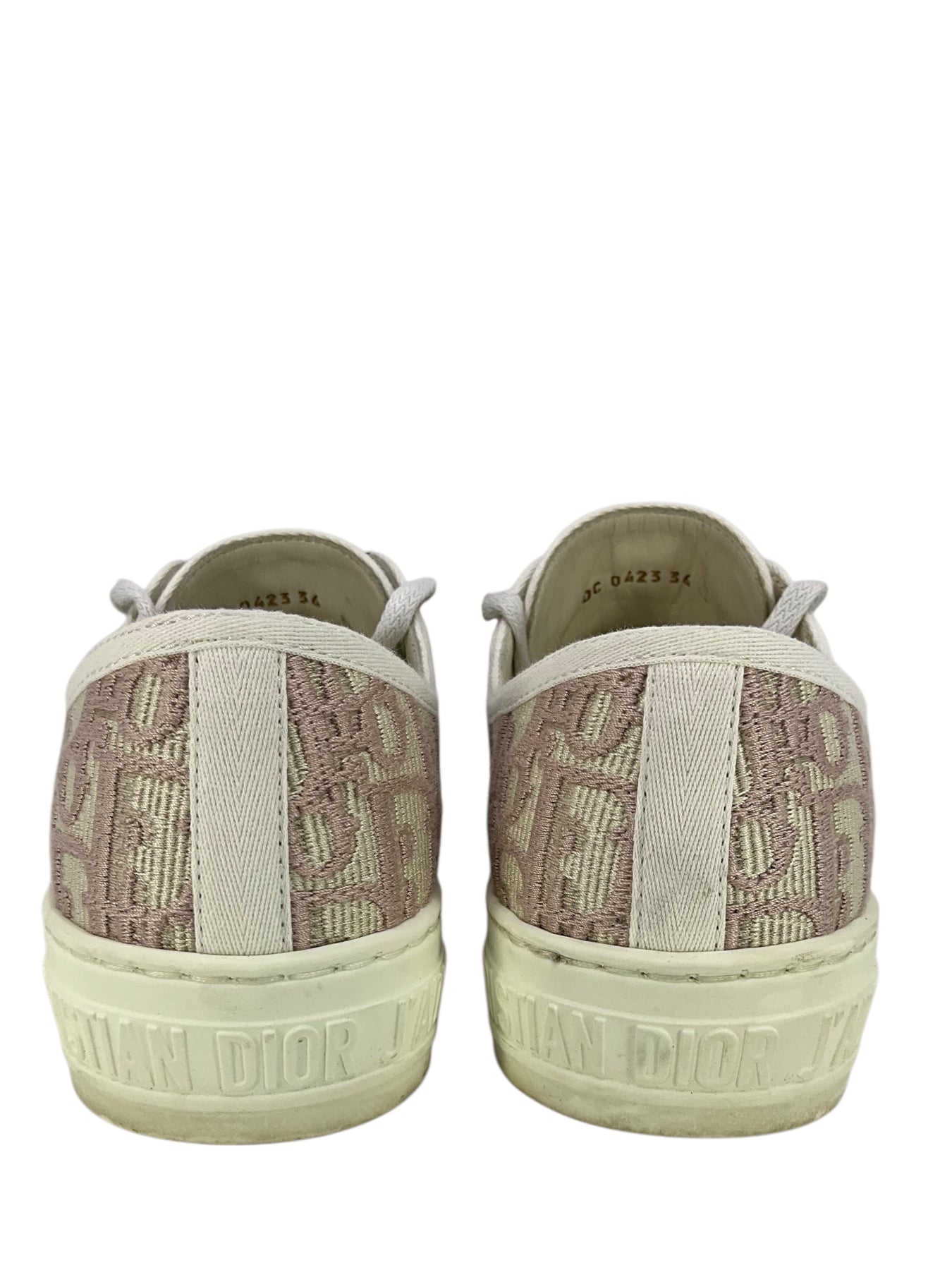 We guarantee authenticity of these DIOR Walk'n'Dior Embroidered Cotton Oblique Sneakers Size 6 in powder nude. Featuring a white cap toe and soles with self-tie laces.