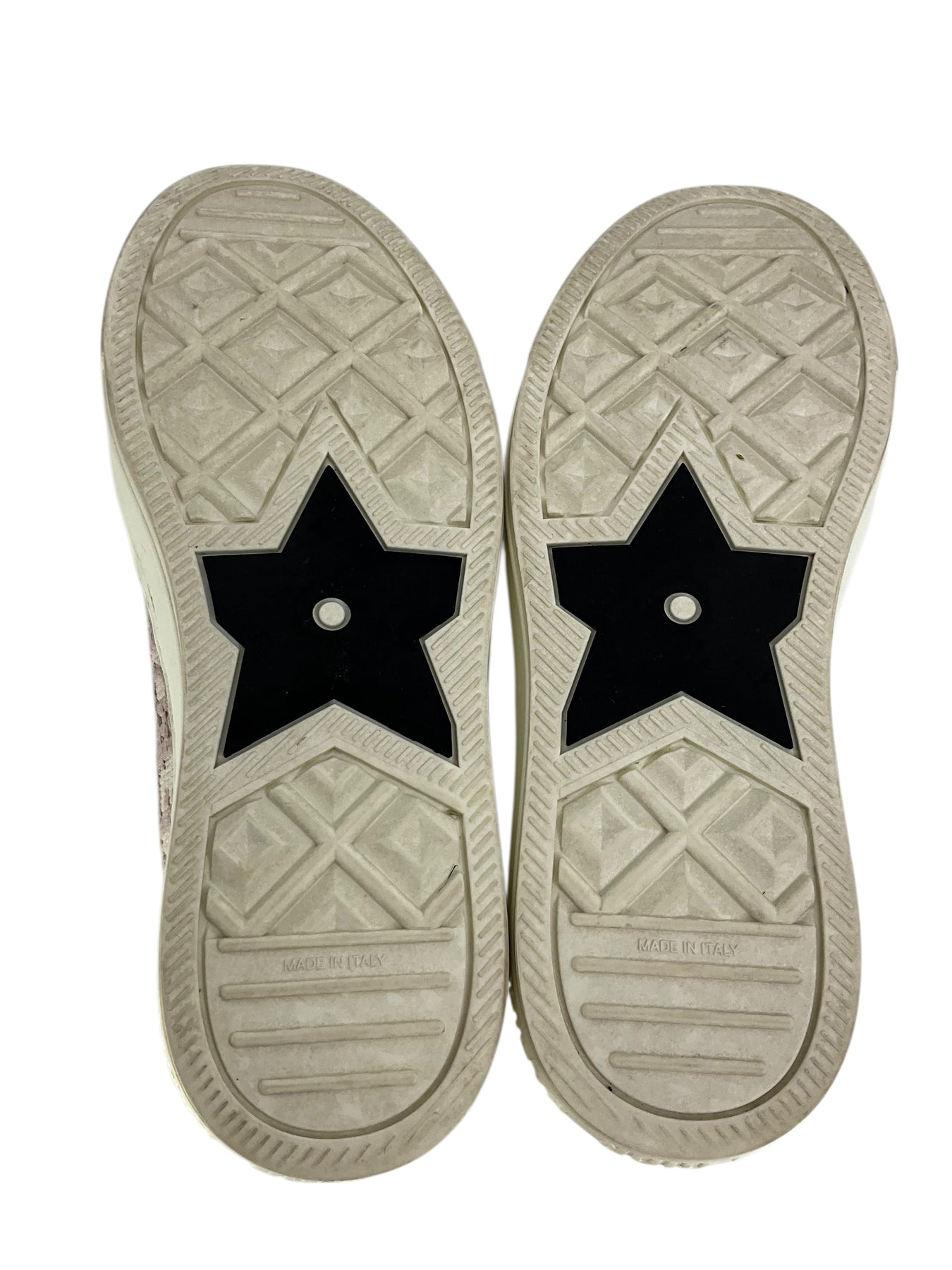 Condition: Very Good. The cotton embroidered uppers are like-new. The white rubber soles and cap toes have minor markings. *Includes original box and dust cover.