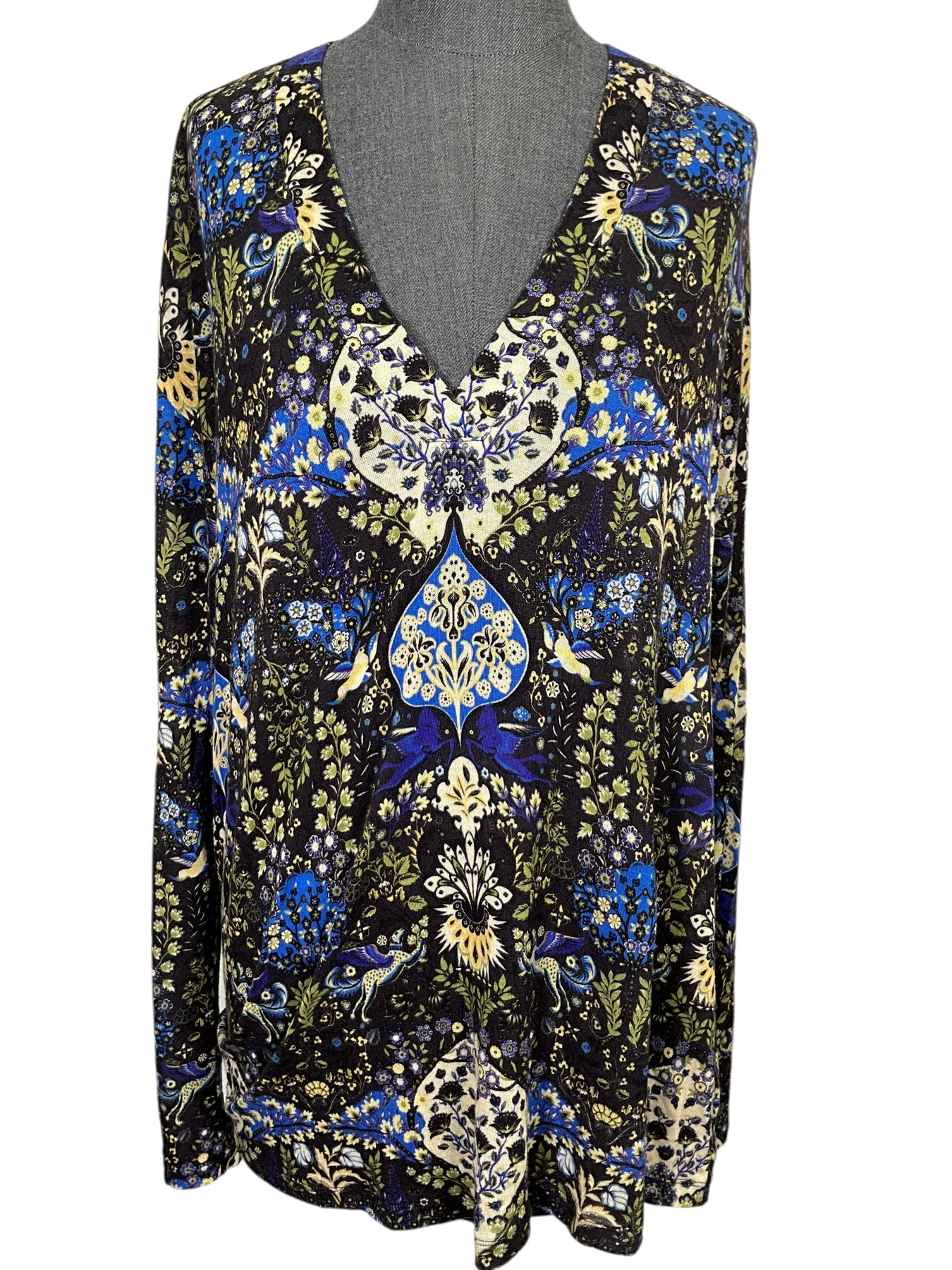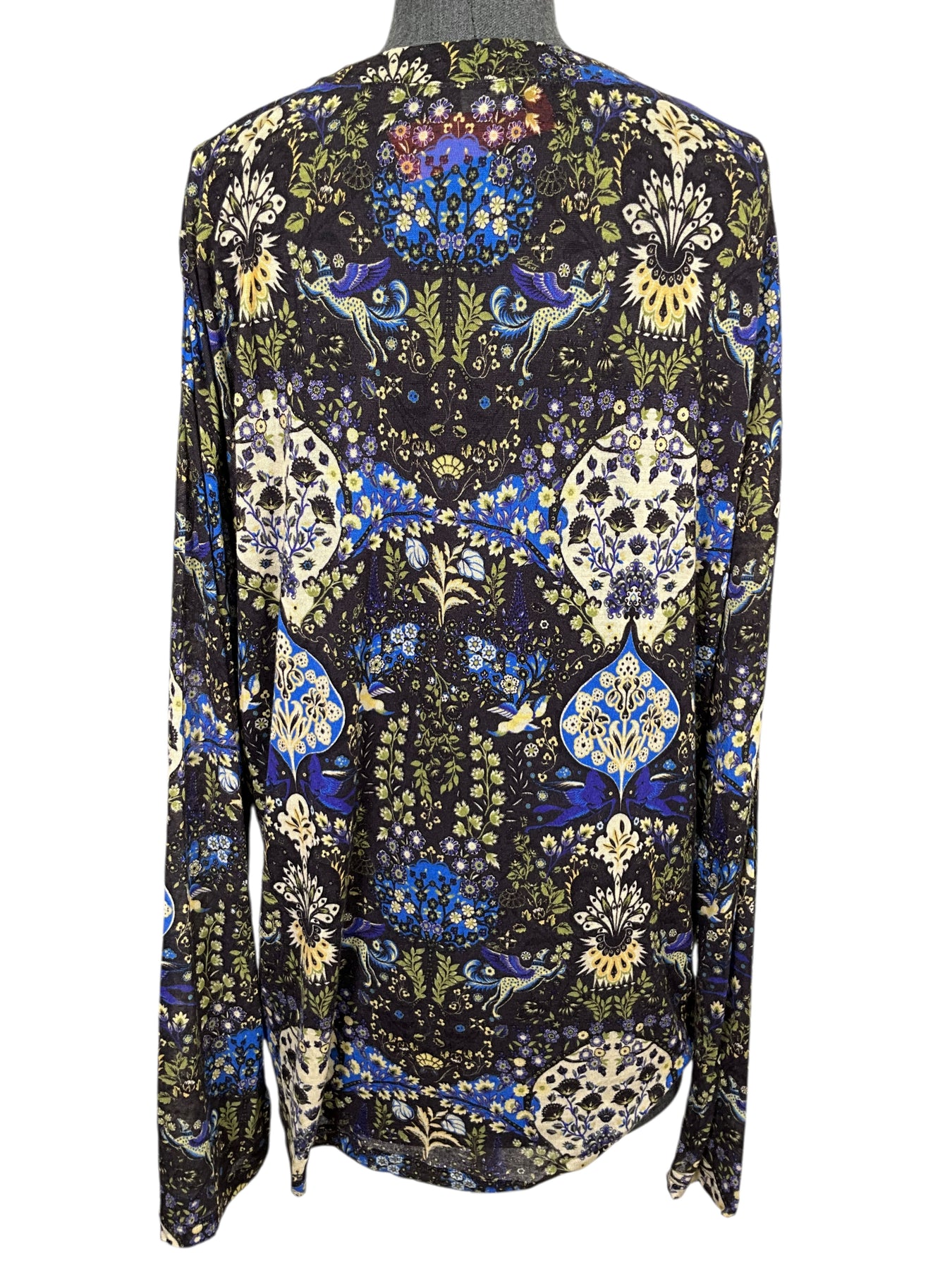 We guarantee the authenticity of this beautiful ETRO Silk Linen Printed Knit Sweater Size L (IT 46) crafted in black and multicolored hues with a v-neckline and a drop shoulder.