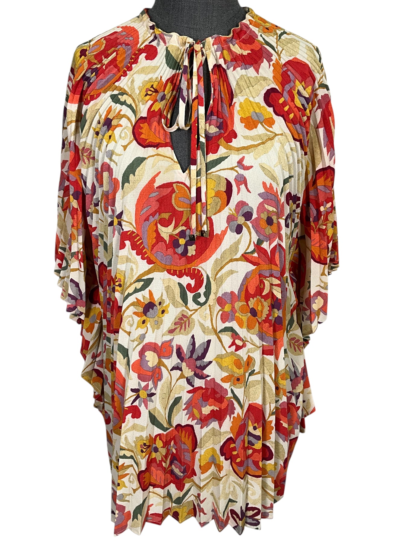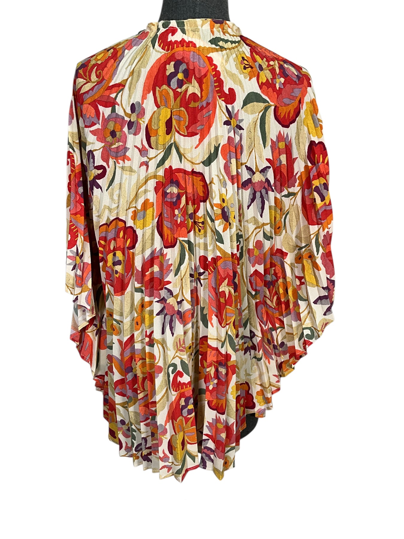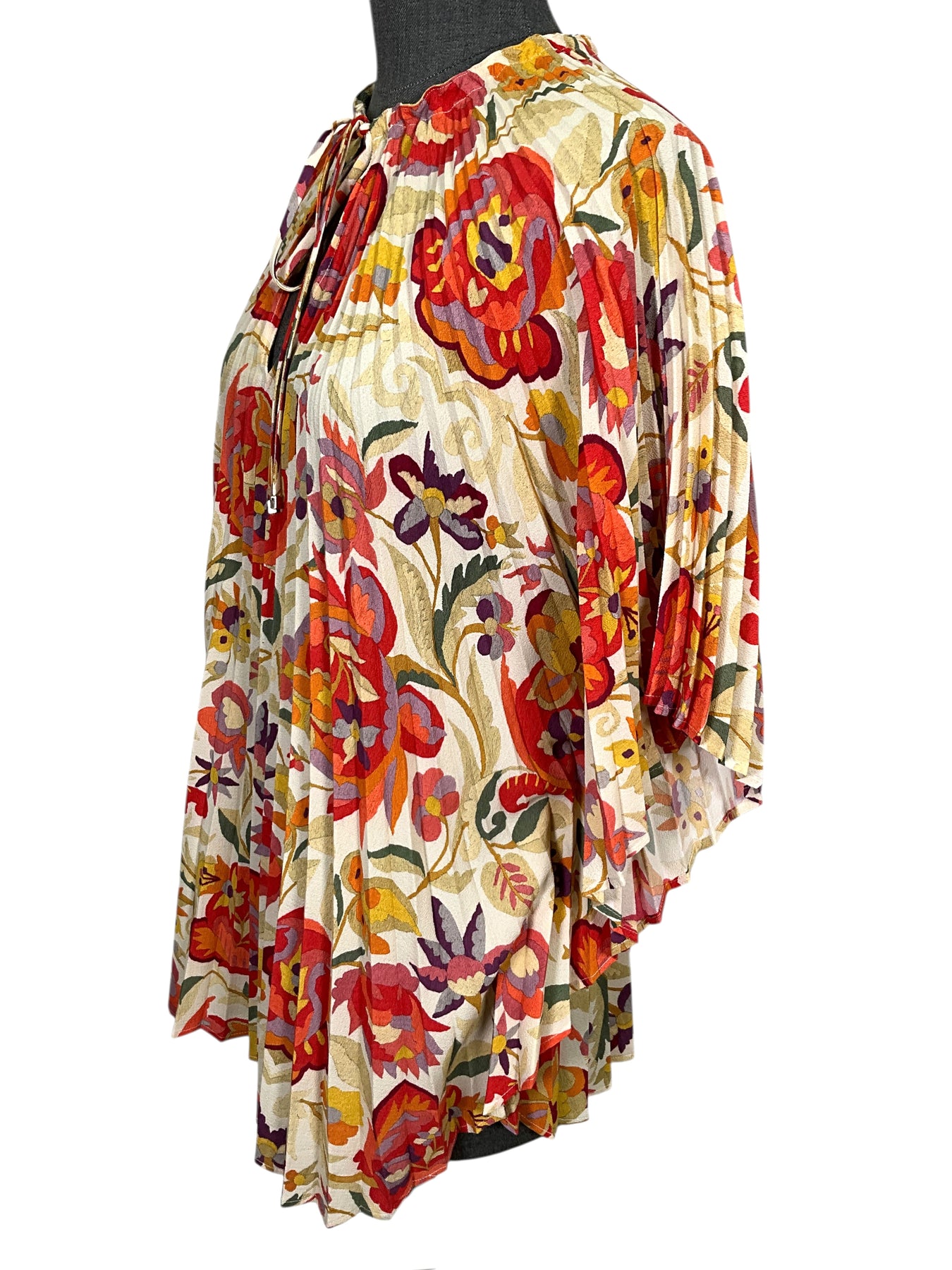 We guarantee the authenticity of this ETRO Floral Printed Pleated Poncho Blouse One Size. Featuring an allover multicolor floral print, a v-neckline with a self-tie closure and three-quarter sleeves.