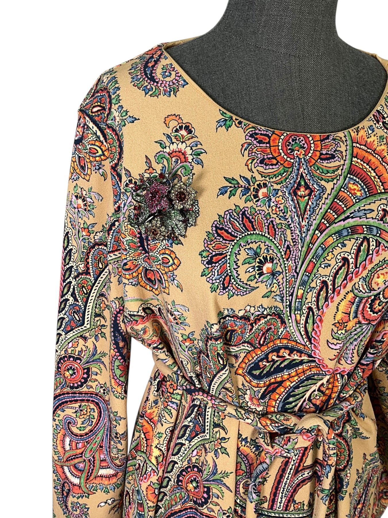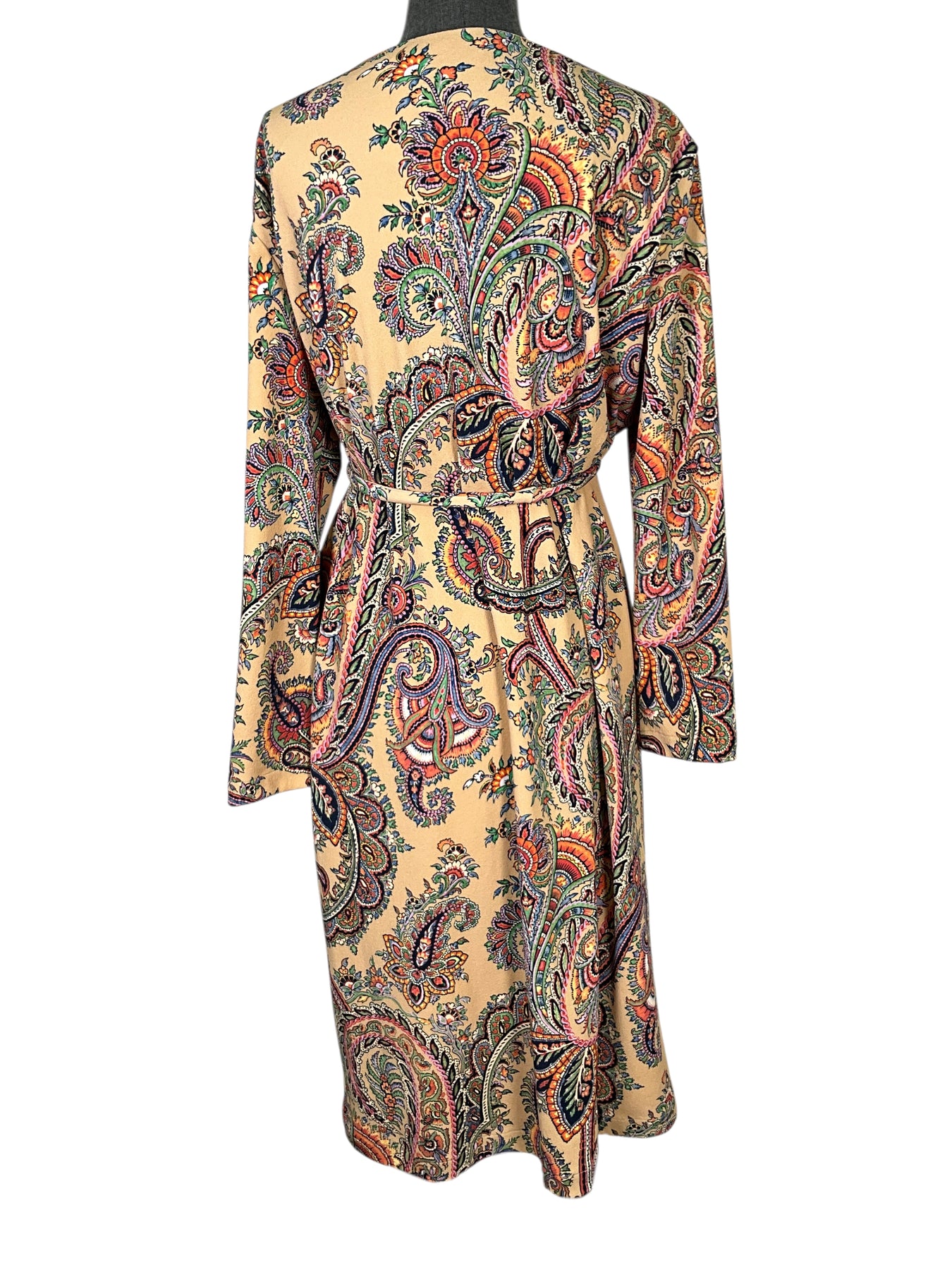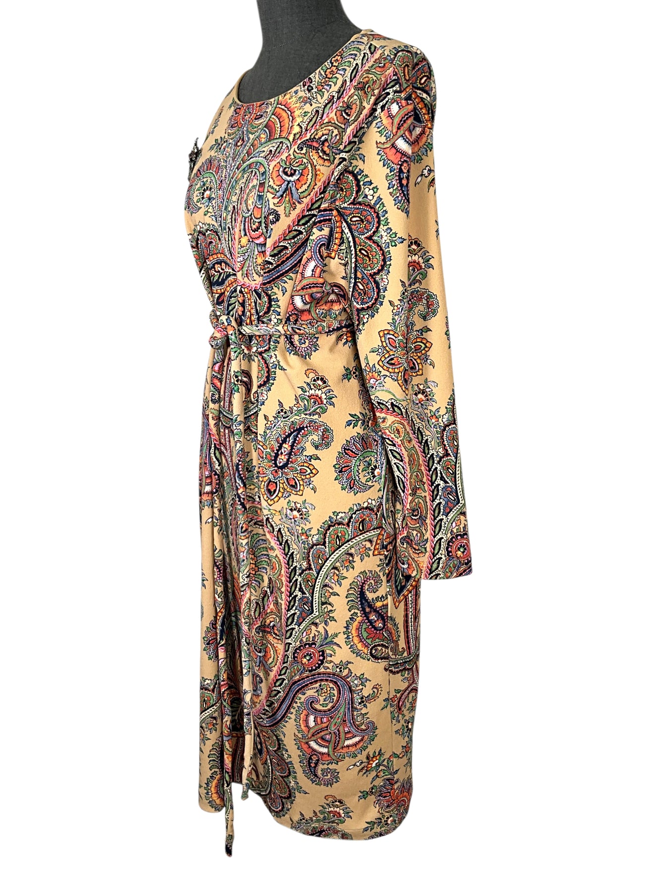 We guarantee the authenticity of this ETRO Paisley Printed Midi Dress Size XL (IT 50). Featuring a multicolor paisley print, an open neckline, a self-tie belt and long sleeves.