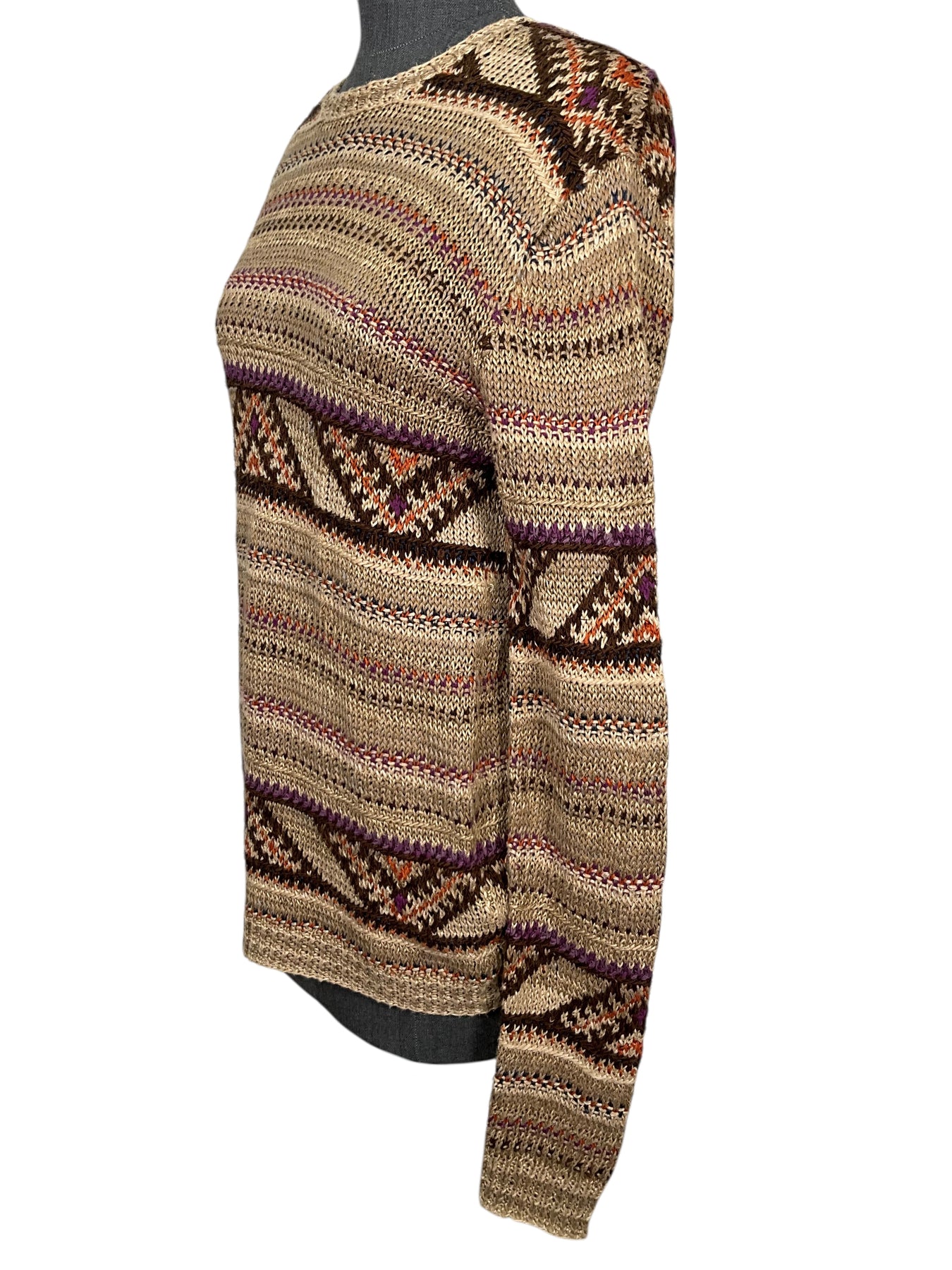 We guarantee the authenticity of this Ralph Lauren Purple Label Linen Blend Jacquard Striped Sweater Size XS NEW in khaki.