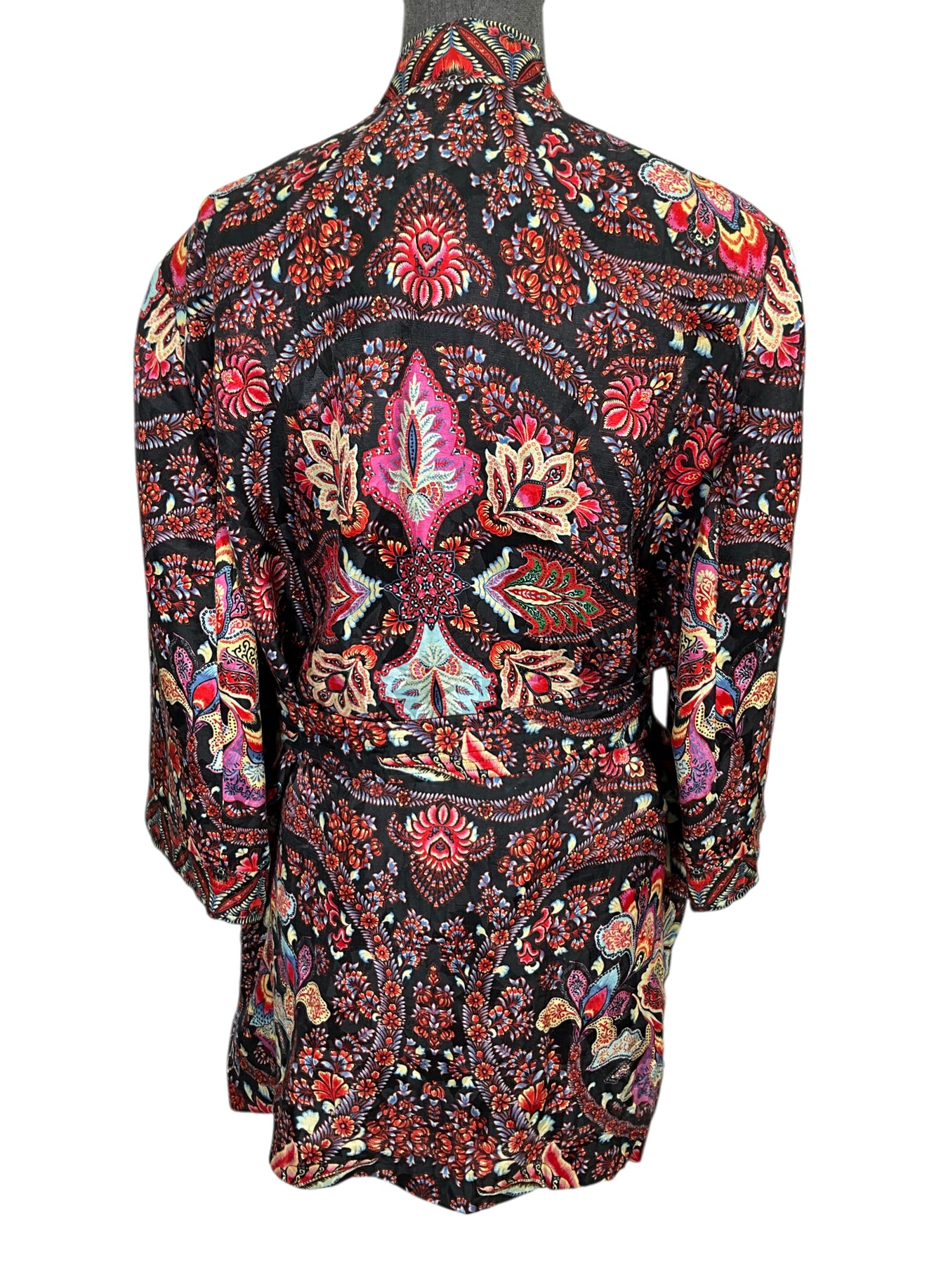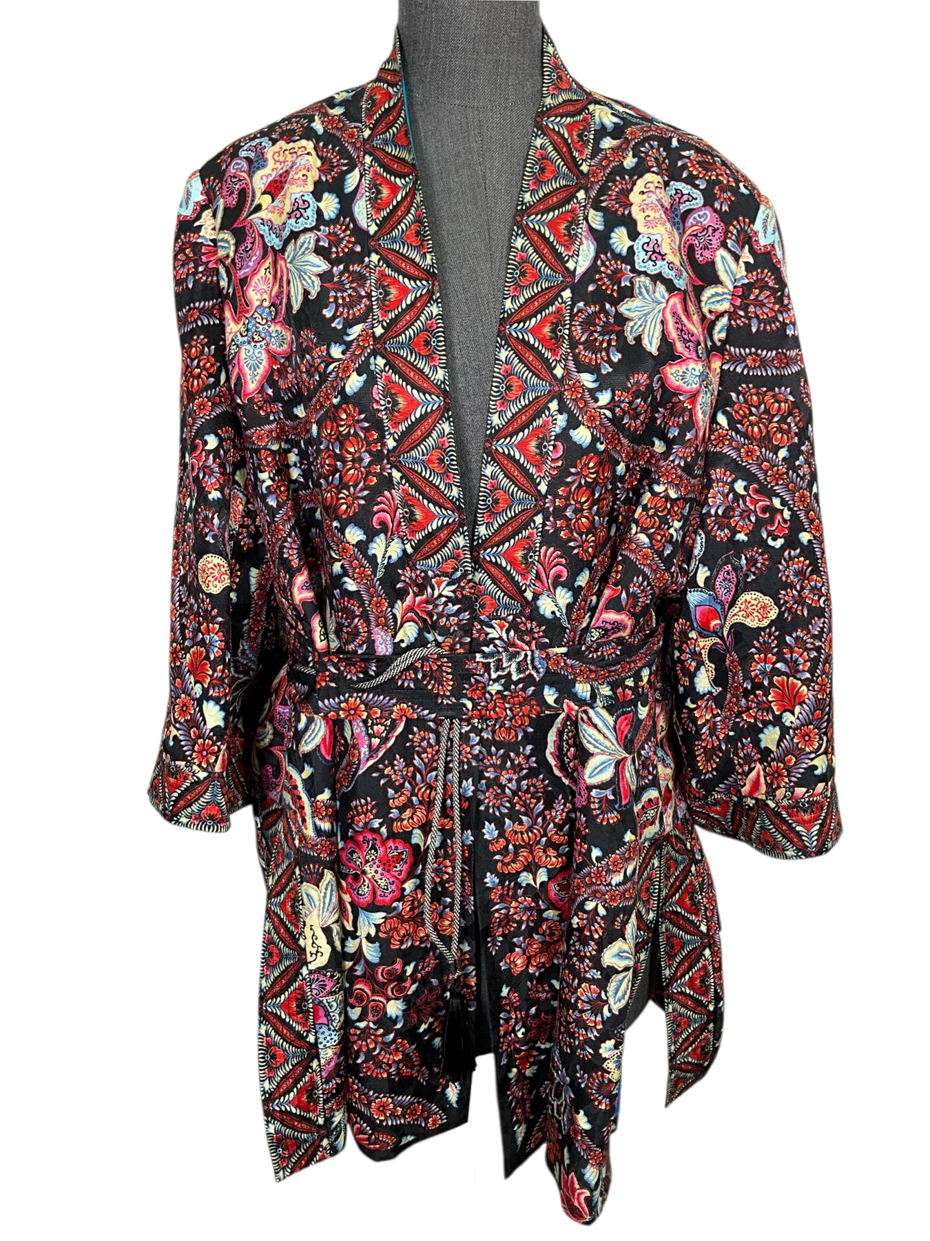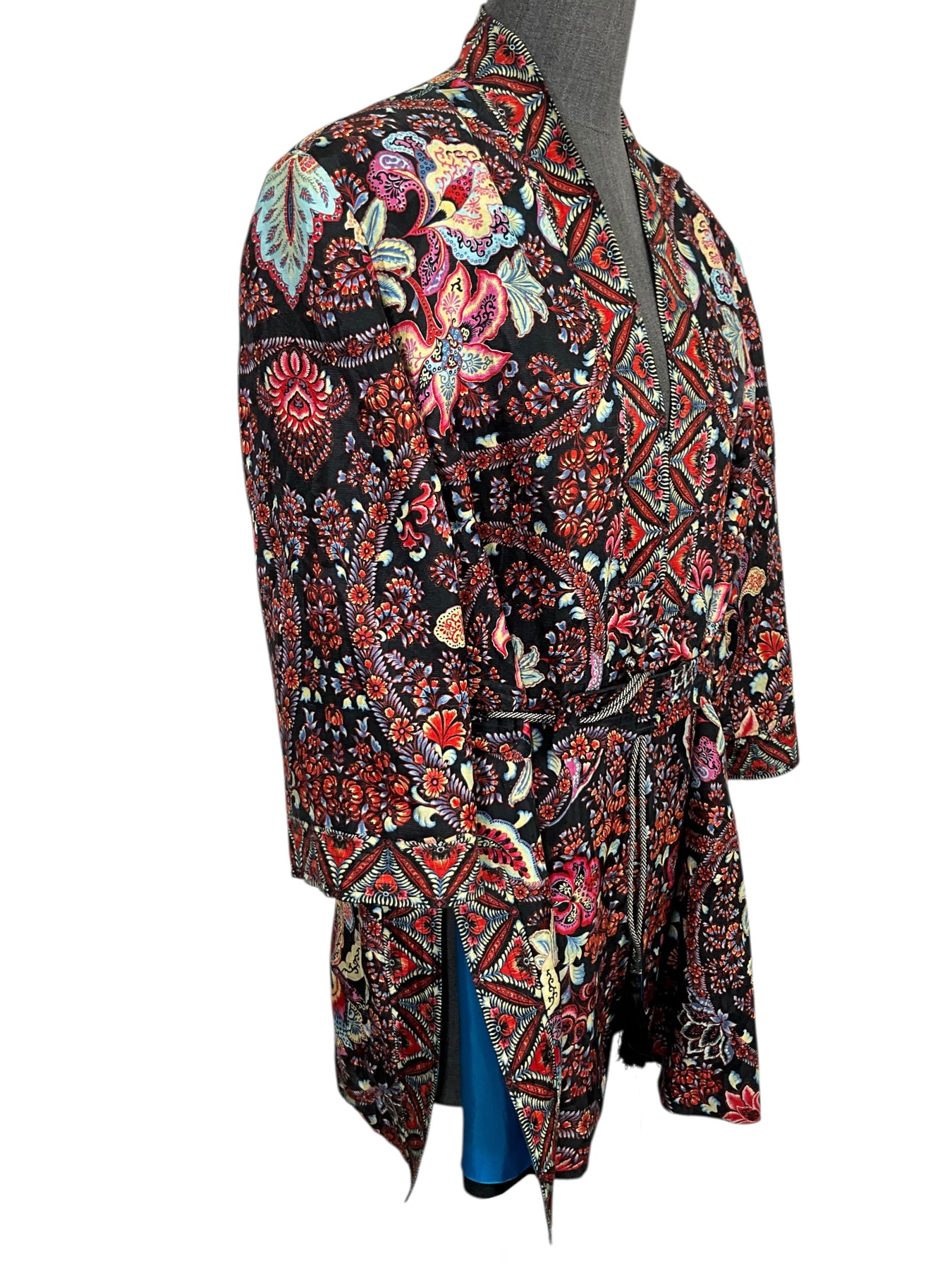 We guarantee the authenticity of this ETRO Floral Print Kimono Jacket One Size. Featuring a multicolor linen and silk blend with half sleeves and an open front with a self-tie belt.