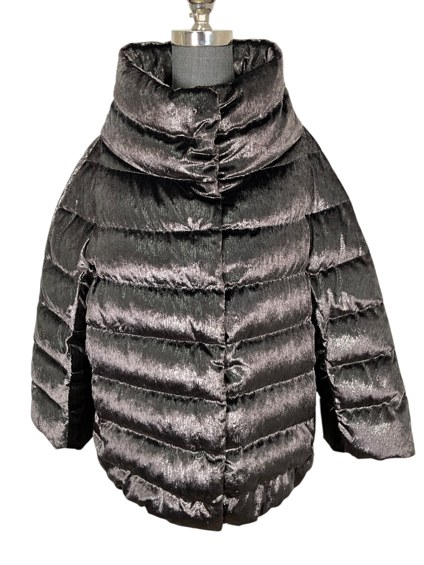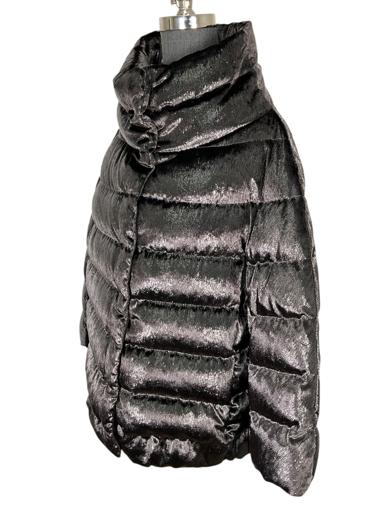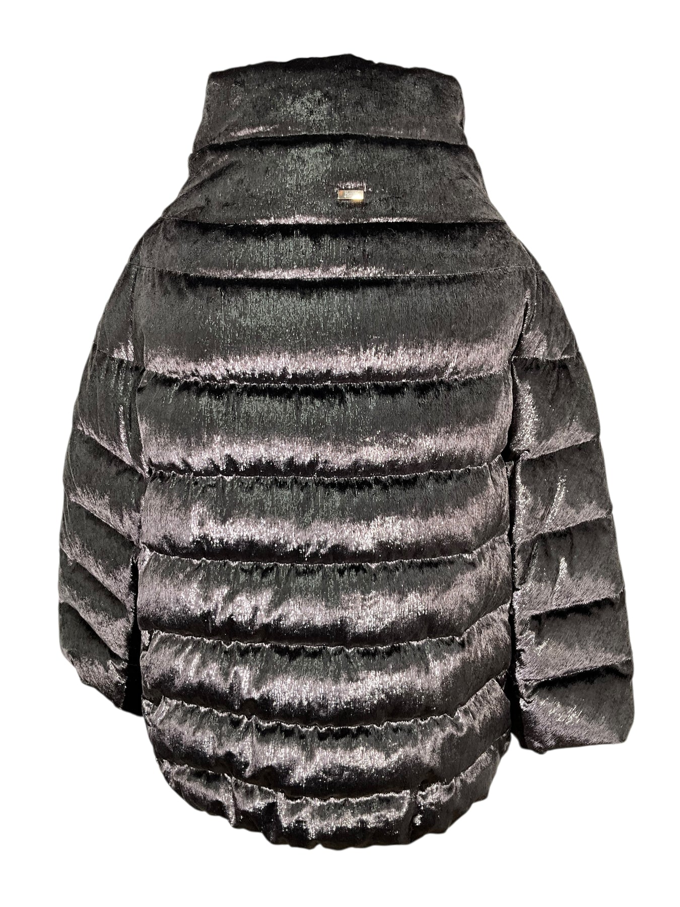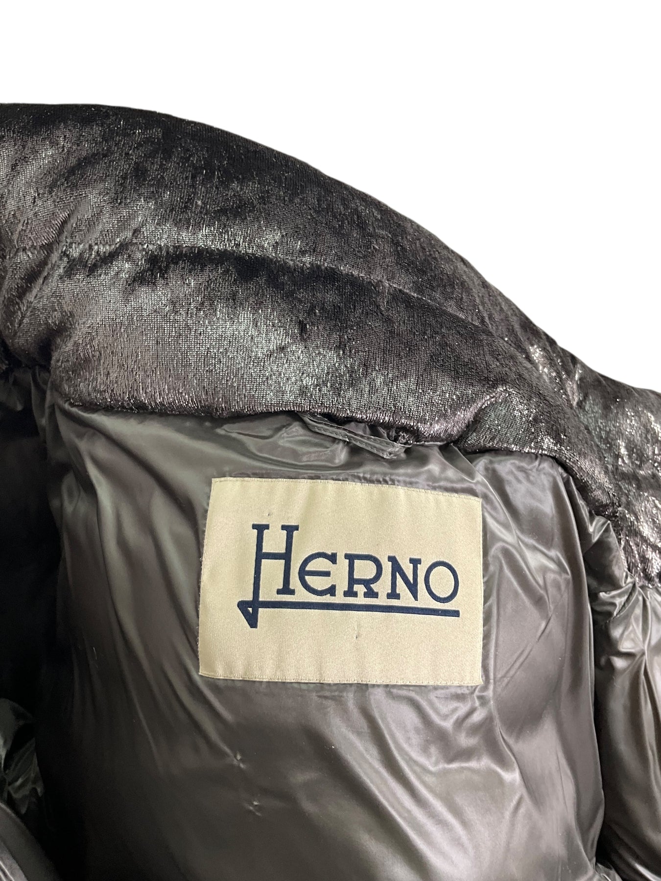 Guaranteed Authentic! Classic Herno Quilted Down Puffer Sofia Jacket Size M (IT 48) crafted in beautiful puffy quilted lightweight metallic polyester and goose down. Featuring two side pockets and front snap closures.