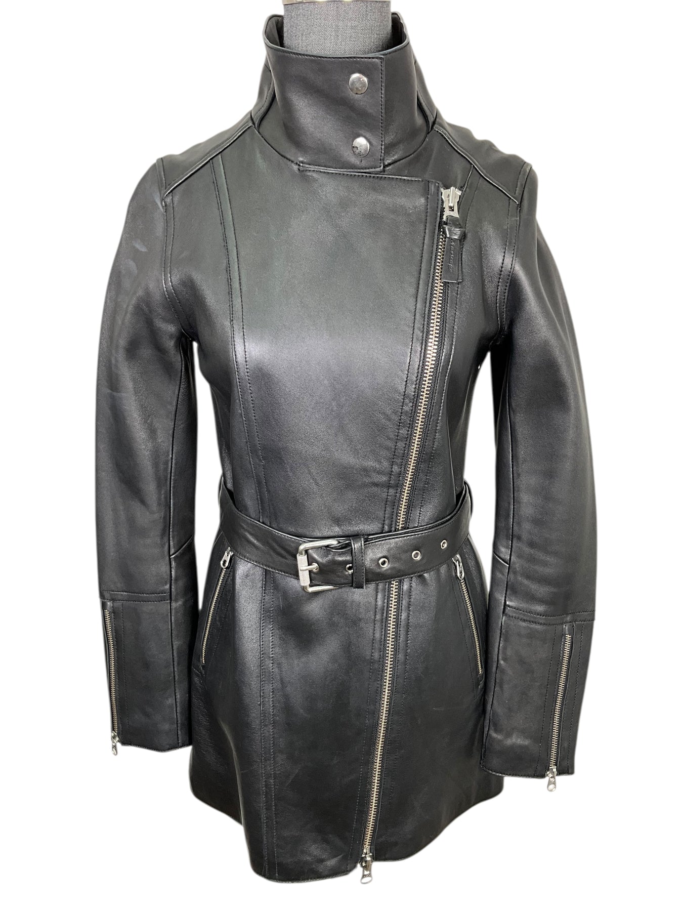 Mackage Leather Moto Belted Trench Coat Size S-Consigned Designs