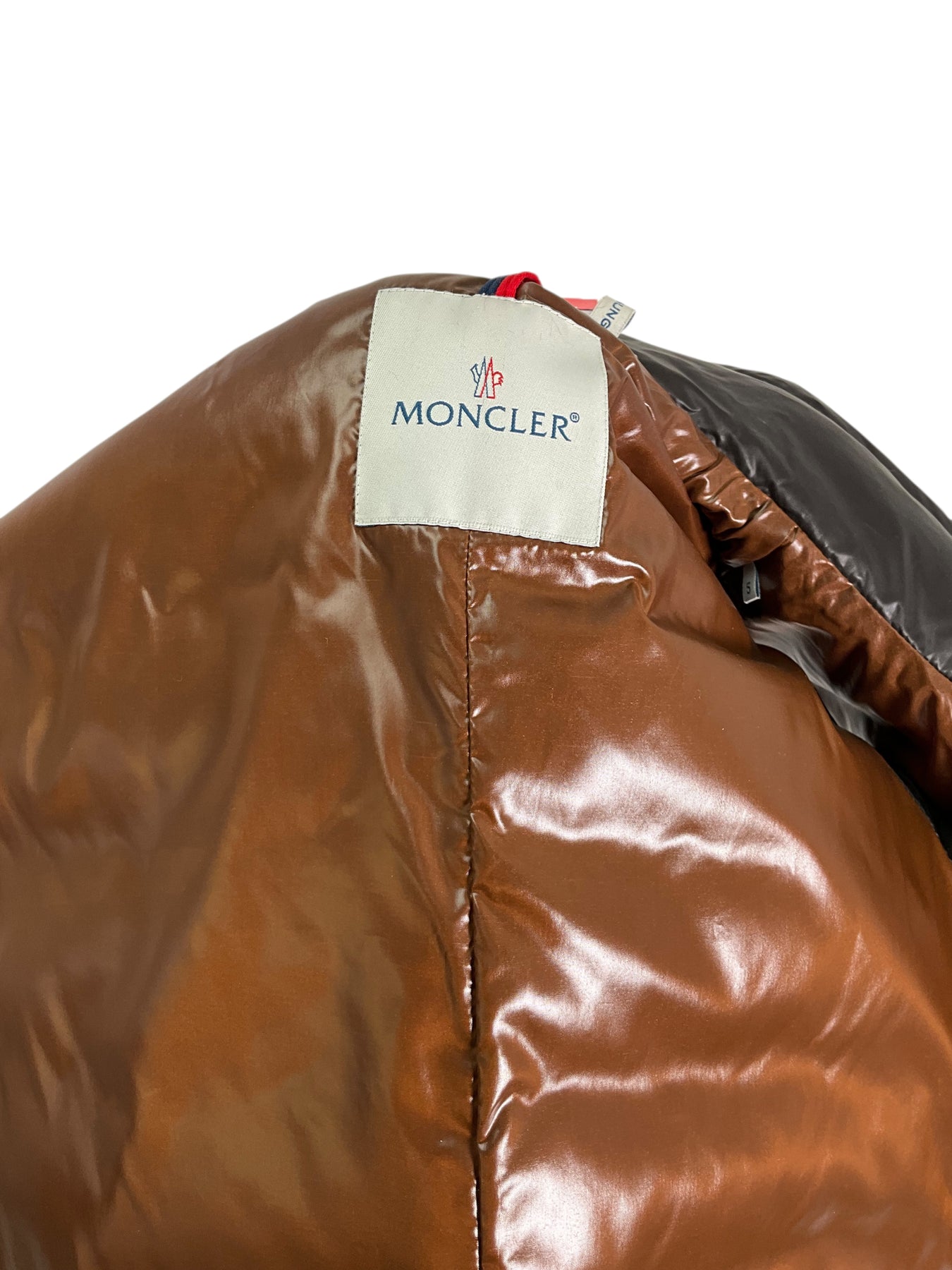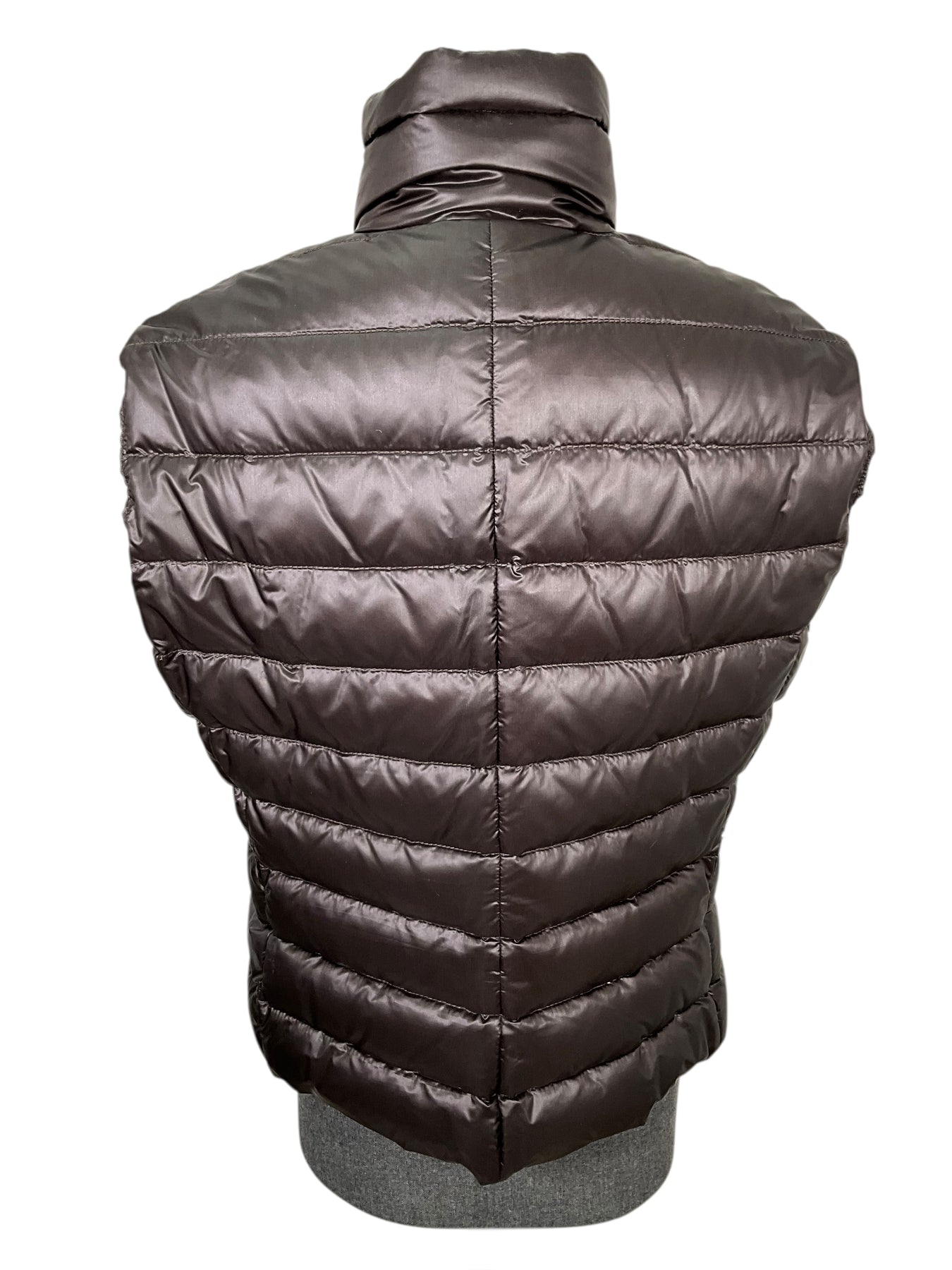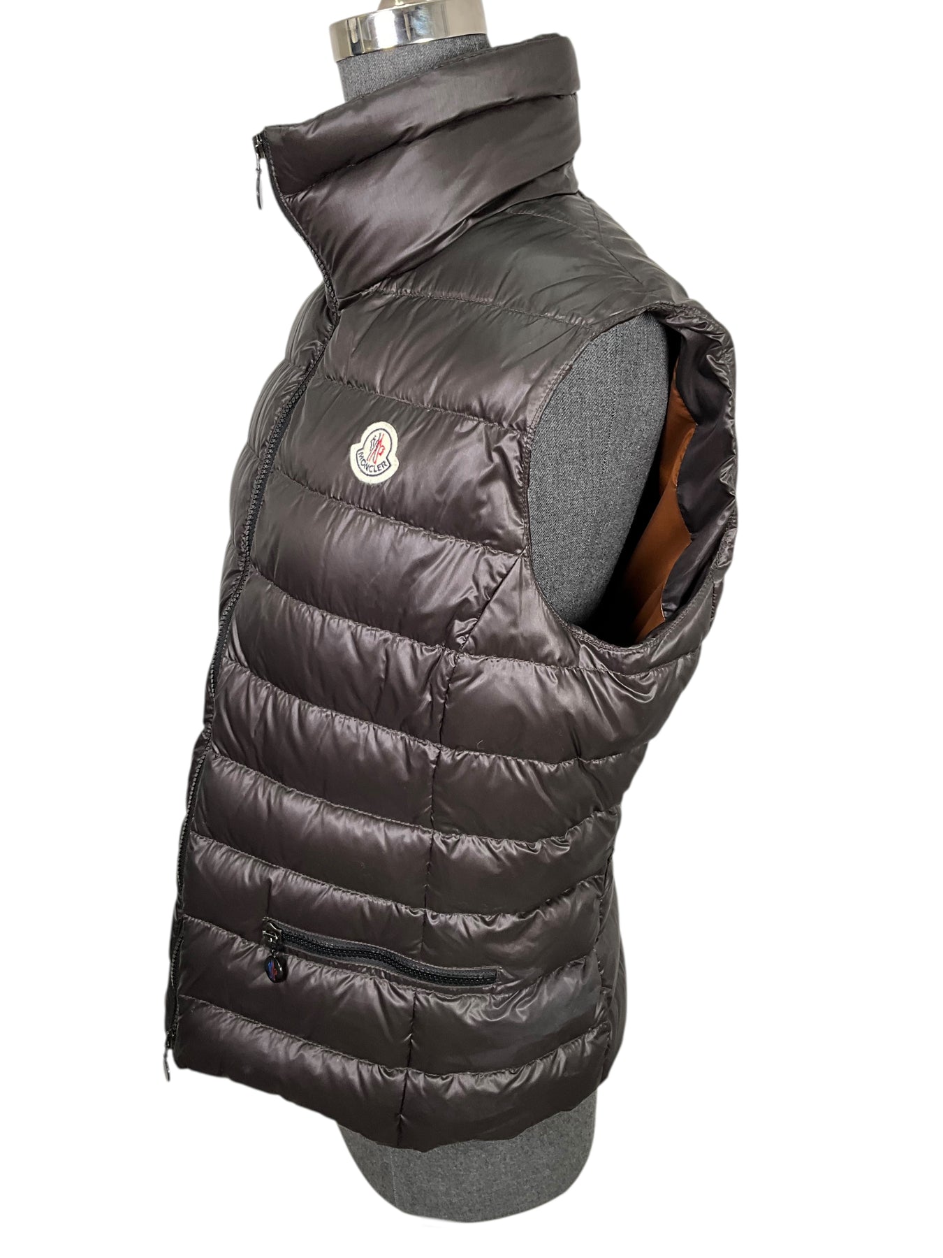 n heads in this gorgeous authentic MONCLER Quilted Puffy Goose Down Vest Size XL (5) crafted from brown down-filled padded nylon.