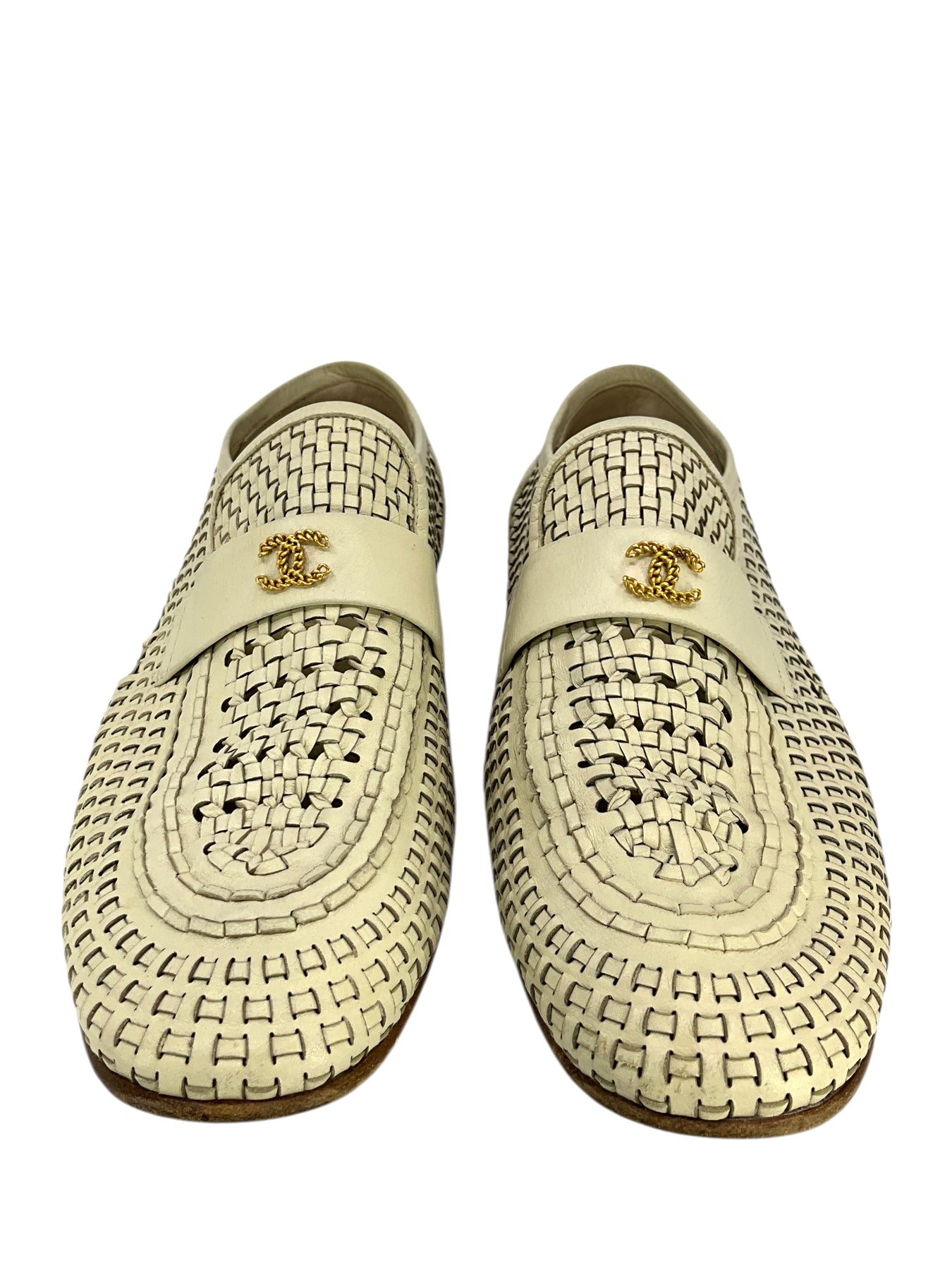 Chanel Woven Leather CC Logo Loafers Size 8-Consigned Designs