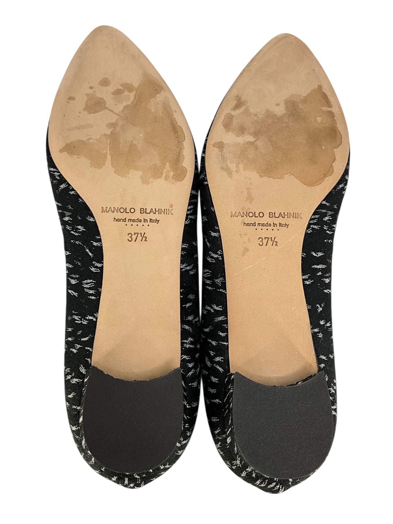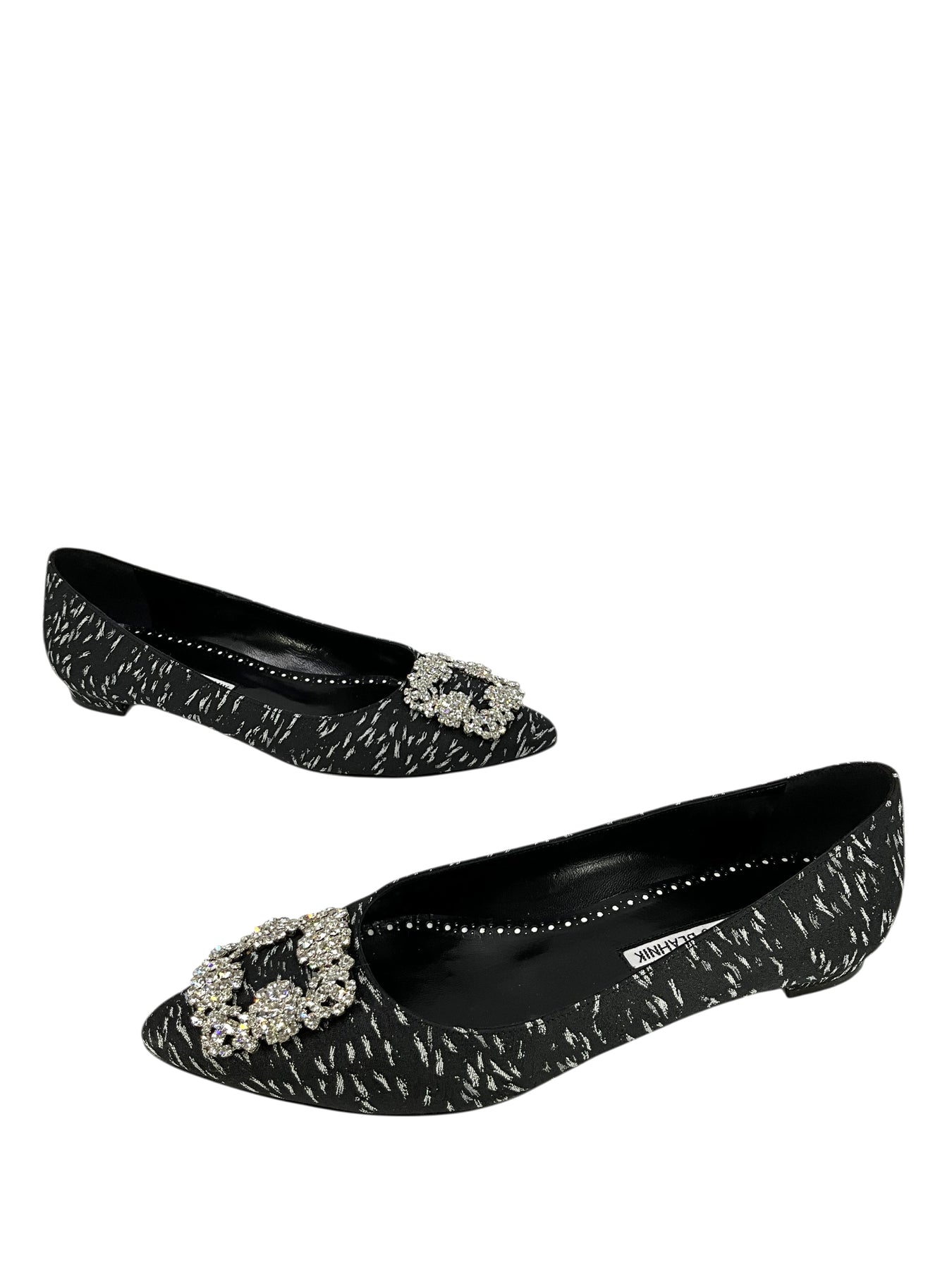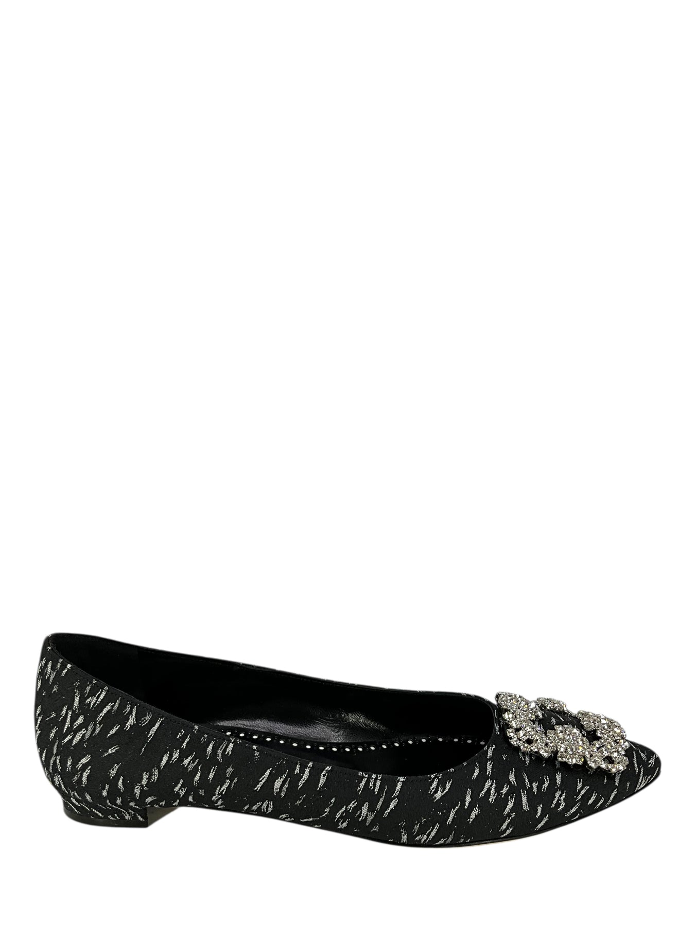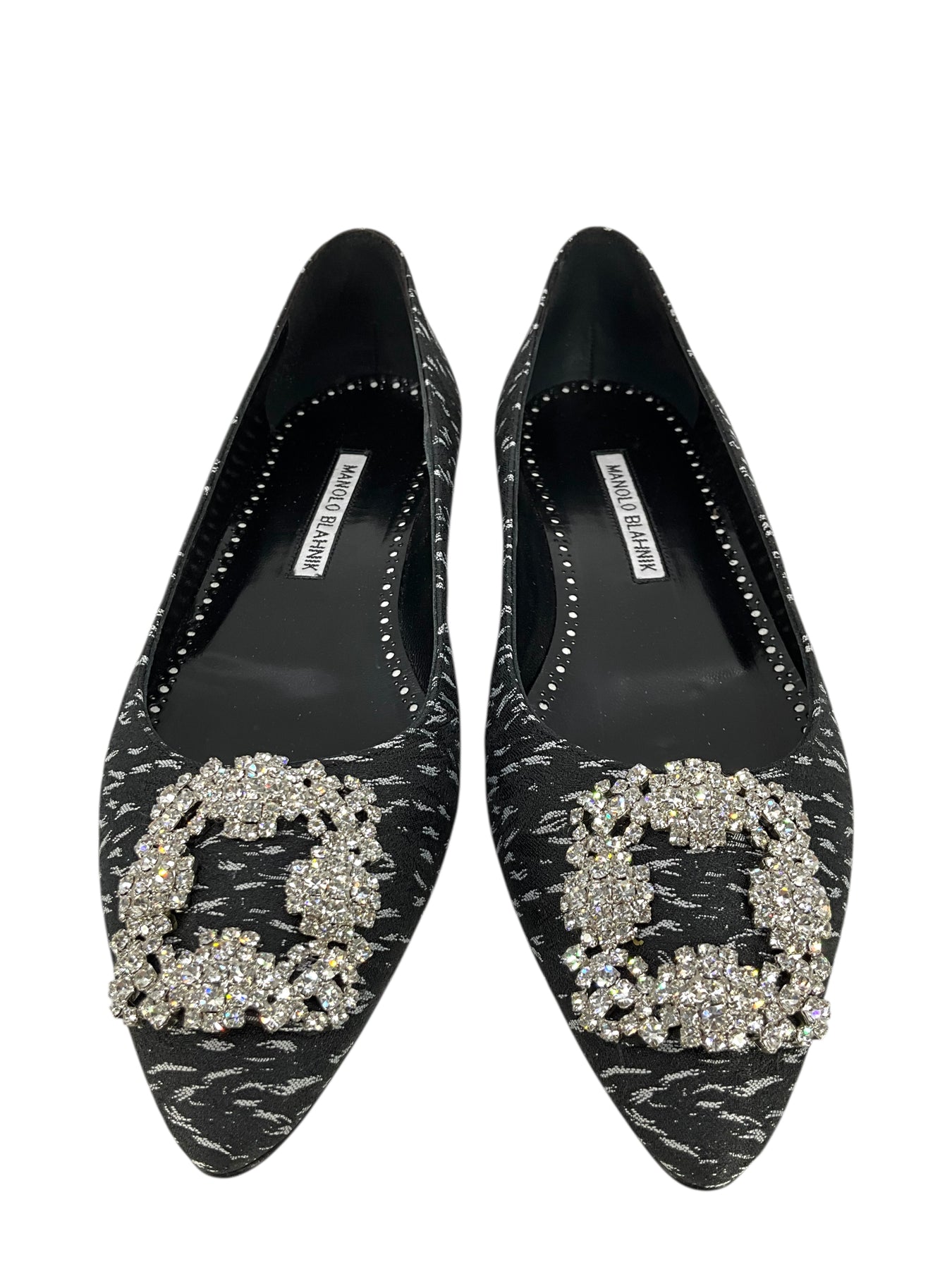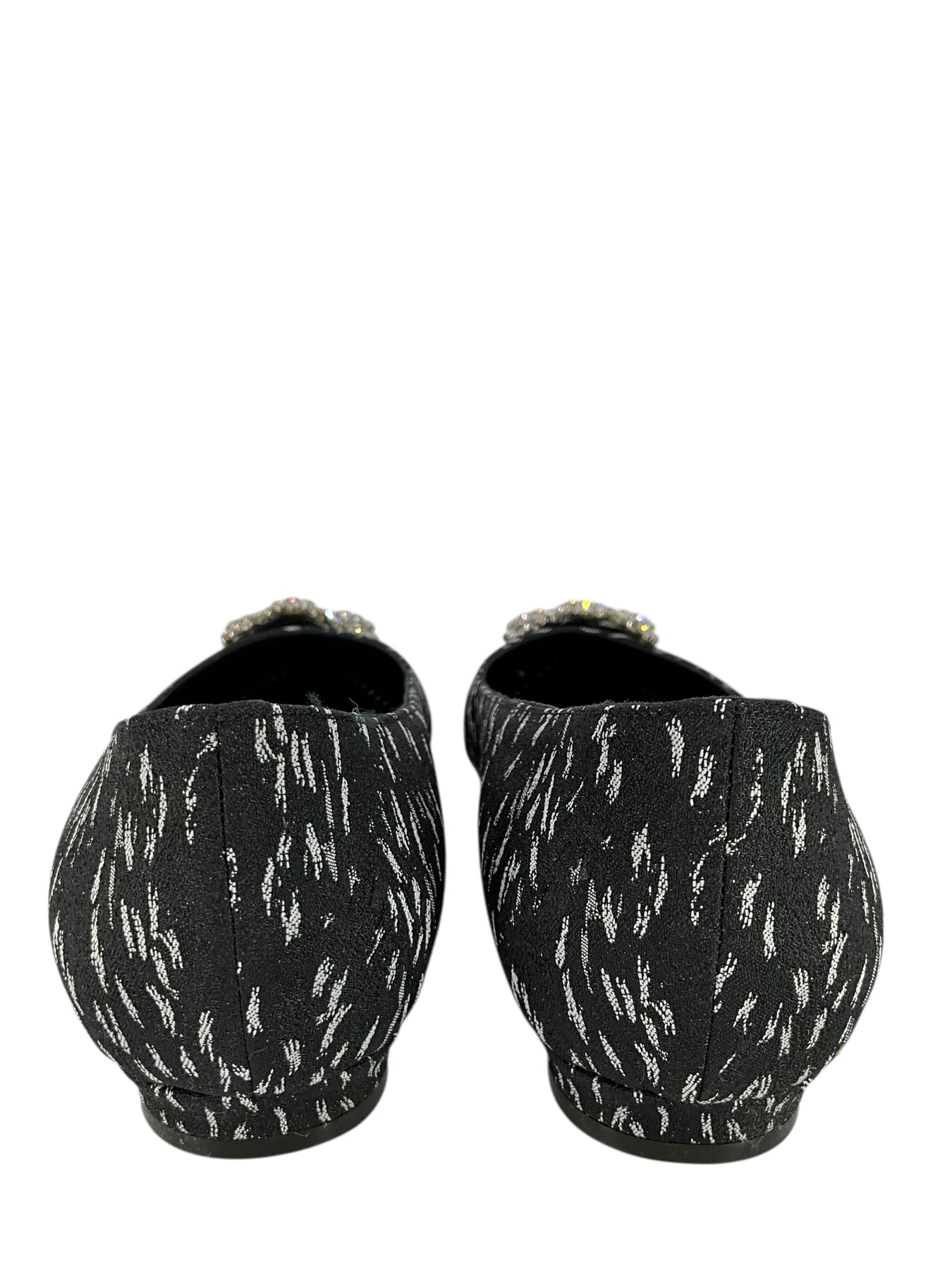 Manolo Blahnik HANGISI Jacquard Jewel Buckle Flats Size 7.5-Consigned Designs