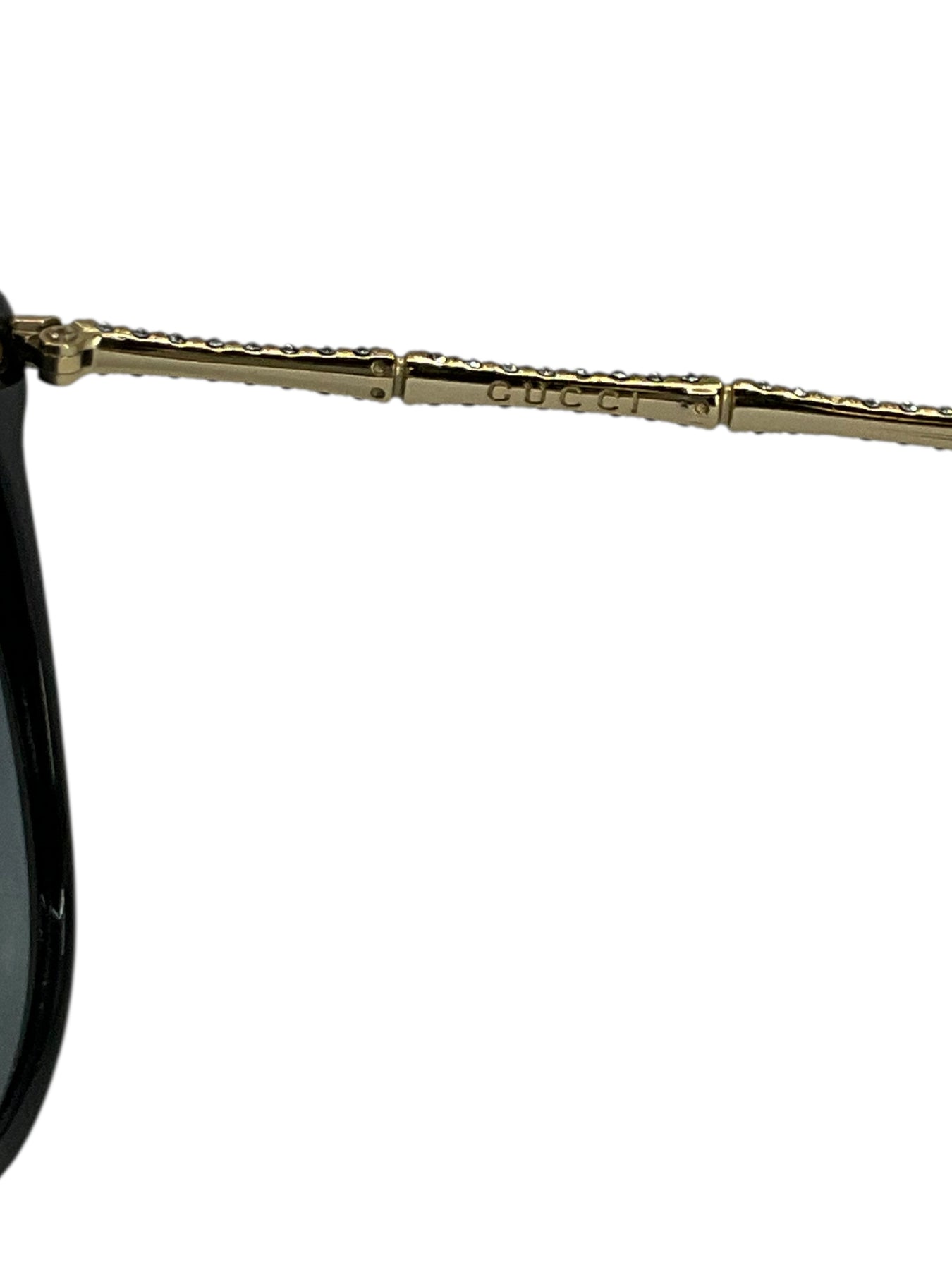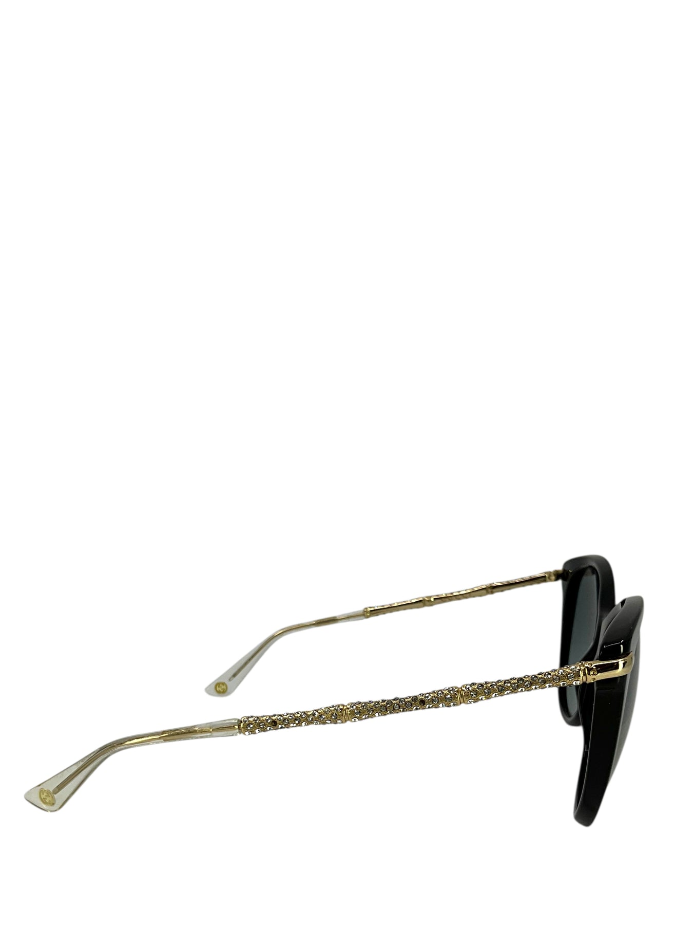 Add to your collection this guaranteed authentic pair of GUCCI Swarovski Crystal GG 3771/S Polarized Sunglasses featuring black acetate frames and crystal-encrusted gold-tone metal arms.