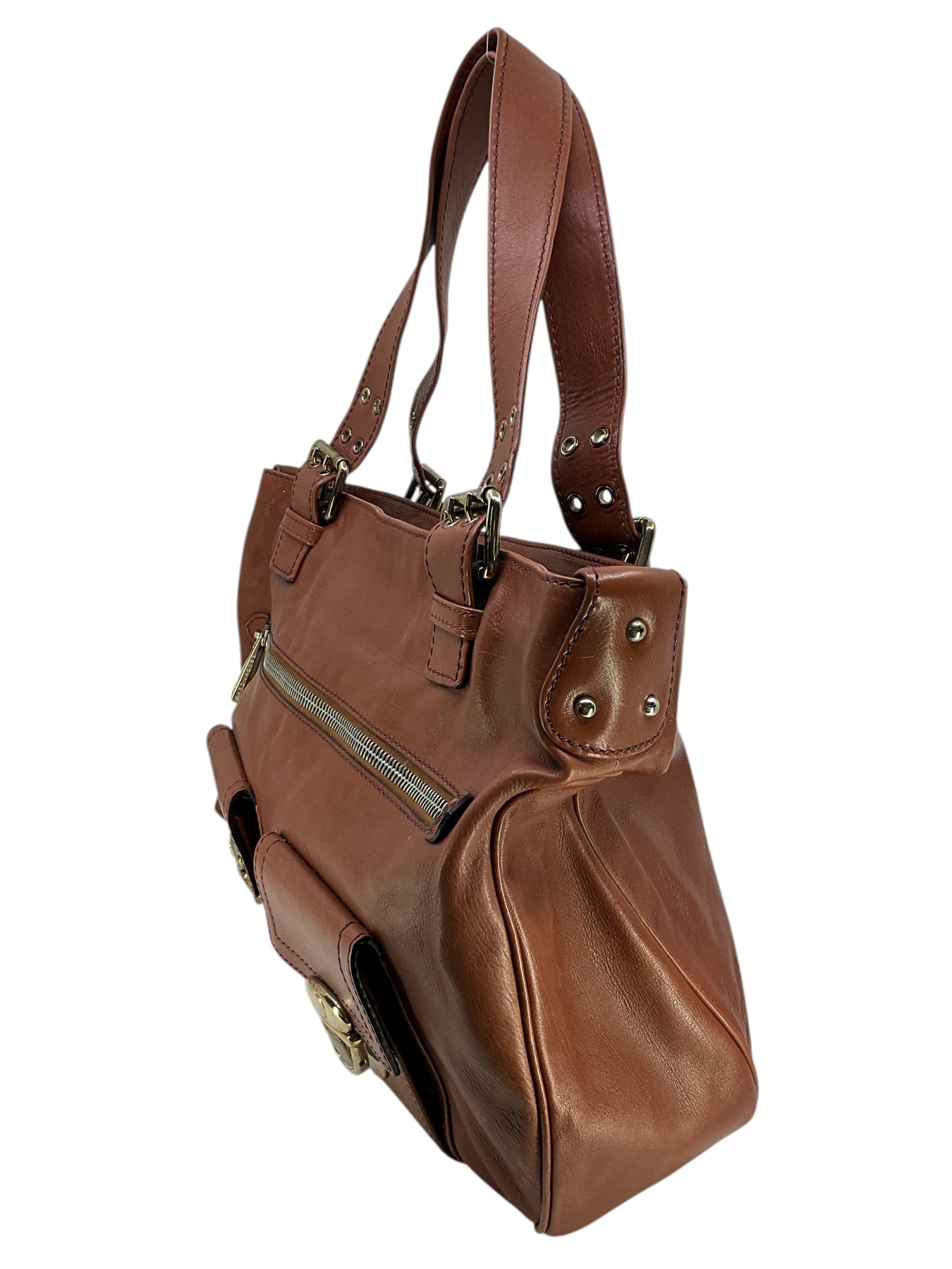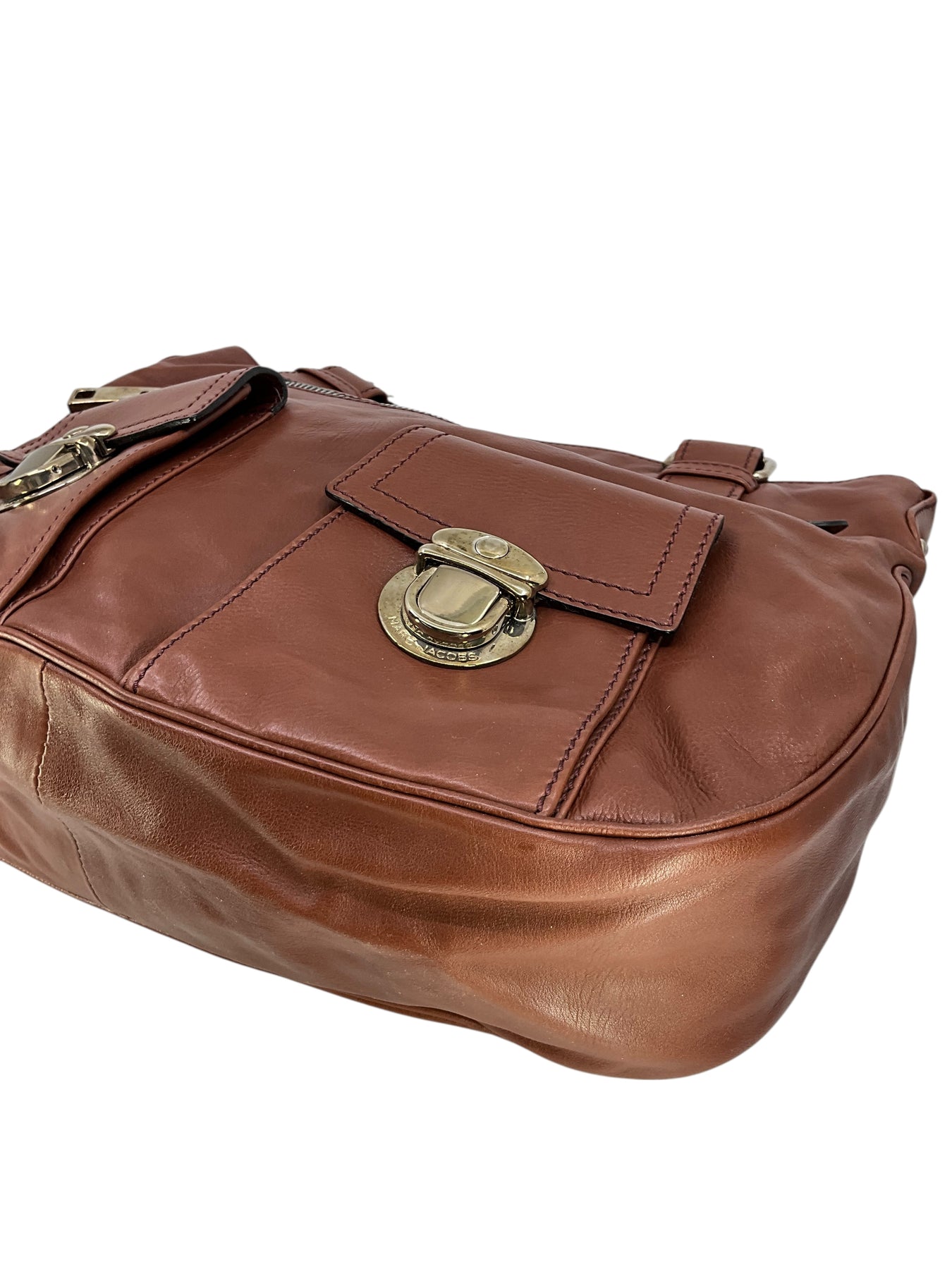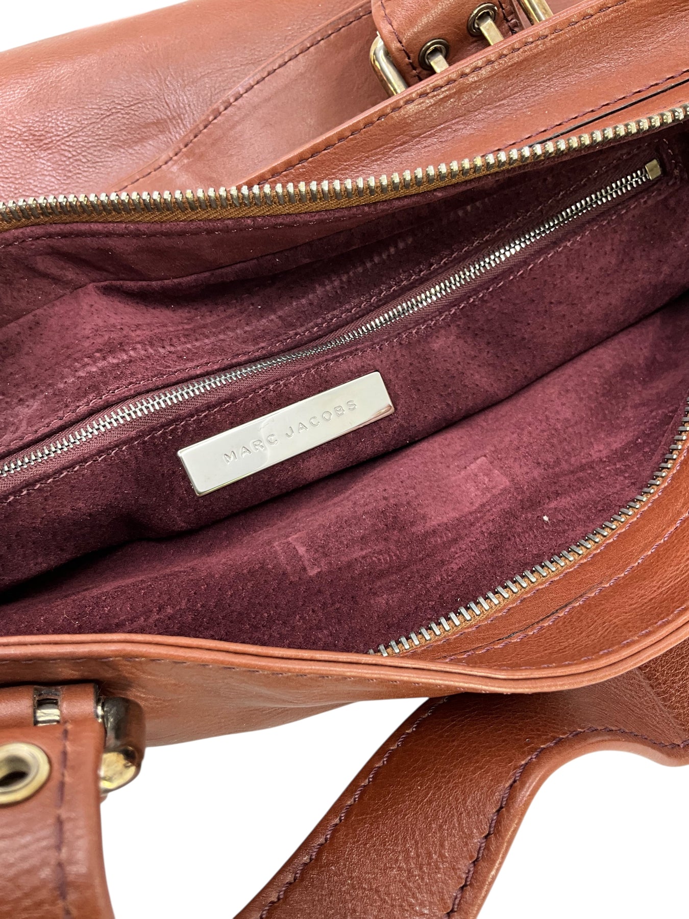 This guaranteed authentic Marc Jacobs Calfskin Large New Stella Bag makes for the perfect everyday carry-all. Expertly crafted in Italy from stunning brown leather and silver-tone hardware. It features double adjustable flat leather shoulder straps, a functional exterior zip compartment and dual logo-engraved push-lock pockets.
