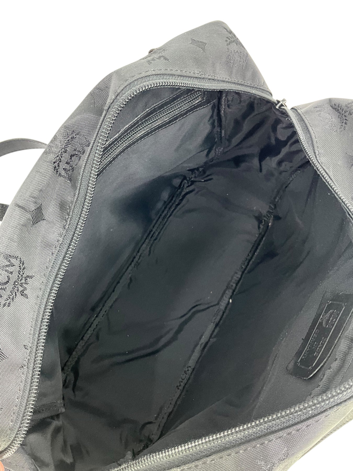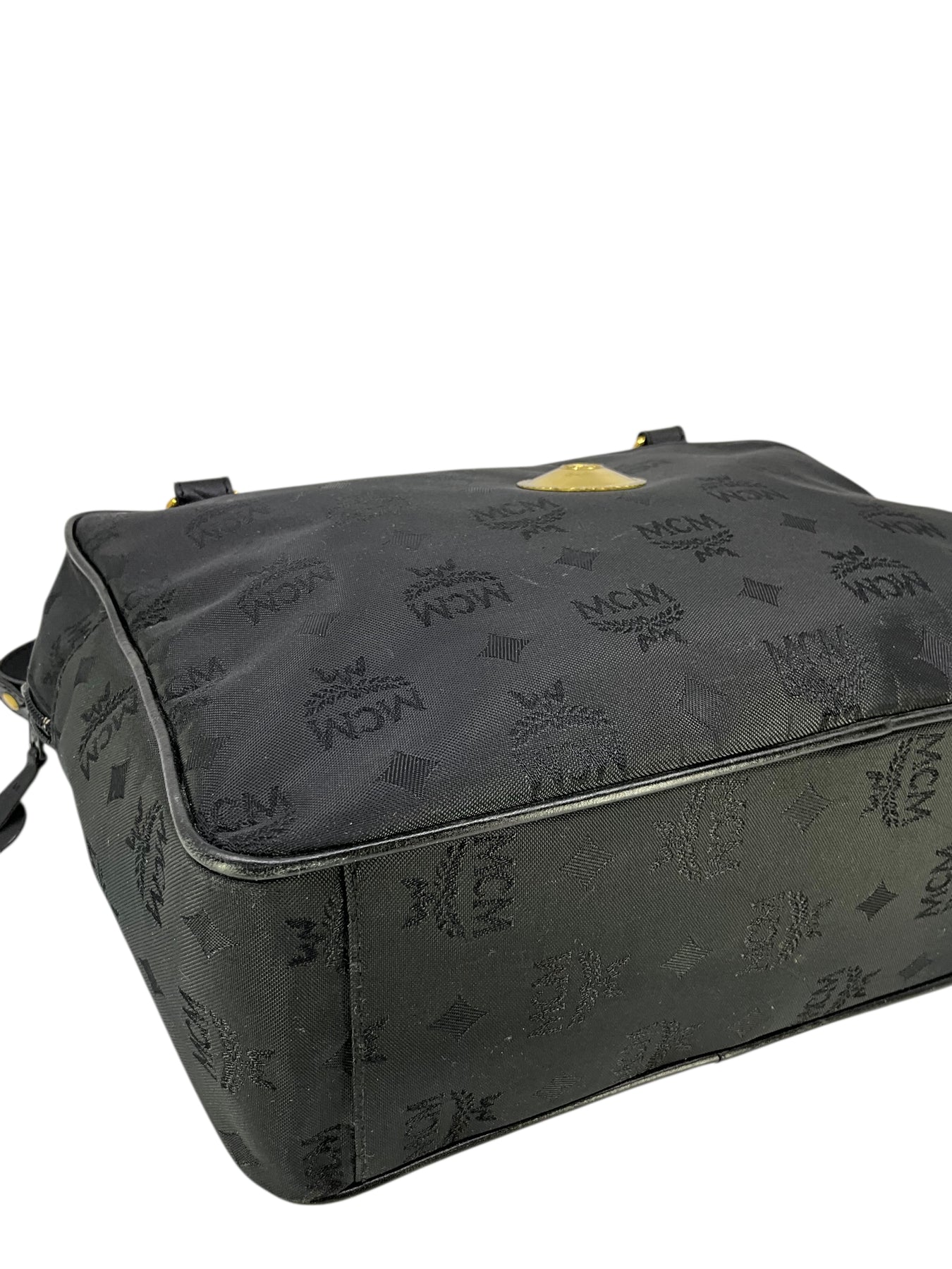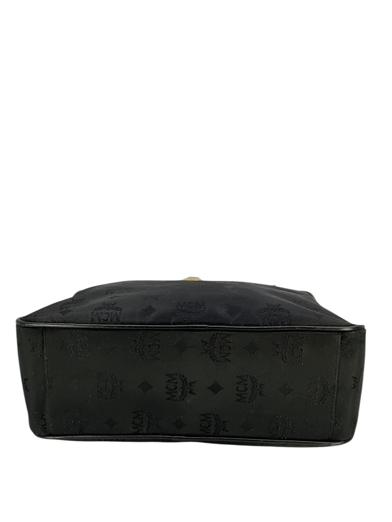 Add to your collection this authentic MCM Vicetos Monogram Chain Shoulder Bag crafted from black monogram embossed nylon and gold-tone hardware. Featuring tall chain link and leather shoulder straps and signature logo-engraved metal detailing at center. Shop authentic designer handbags by MCM at Consigned Designs.