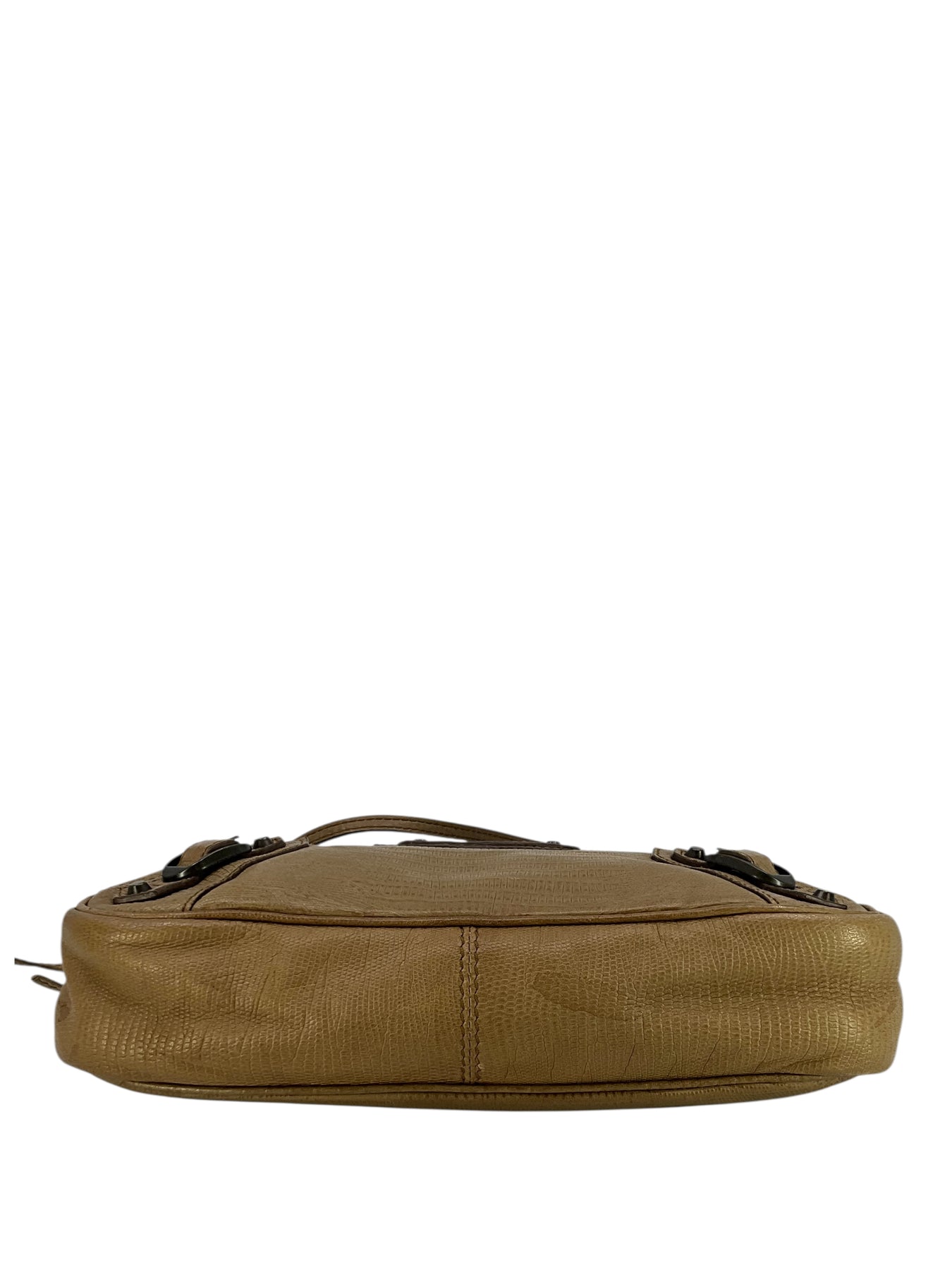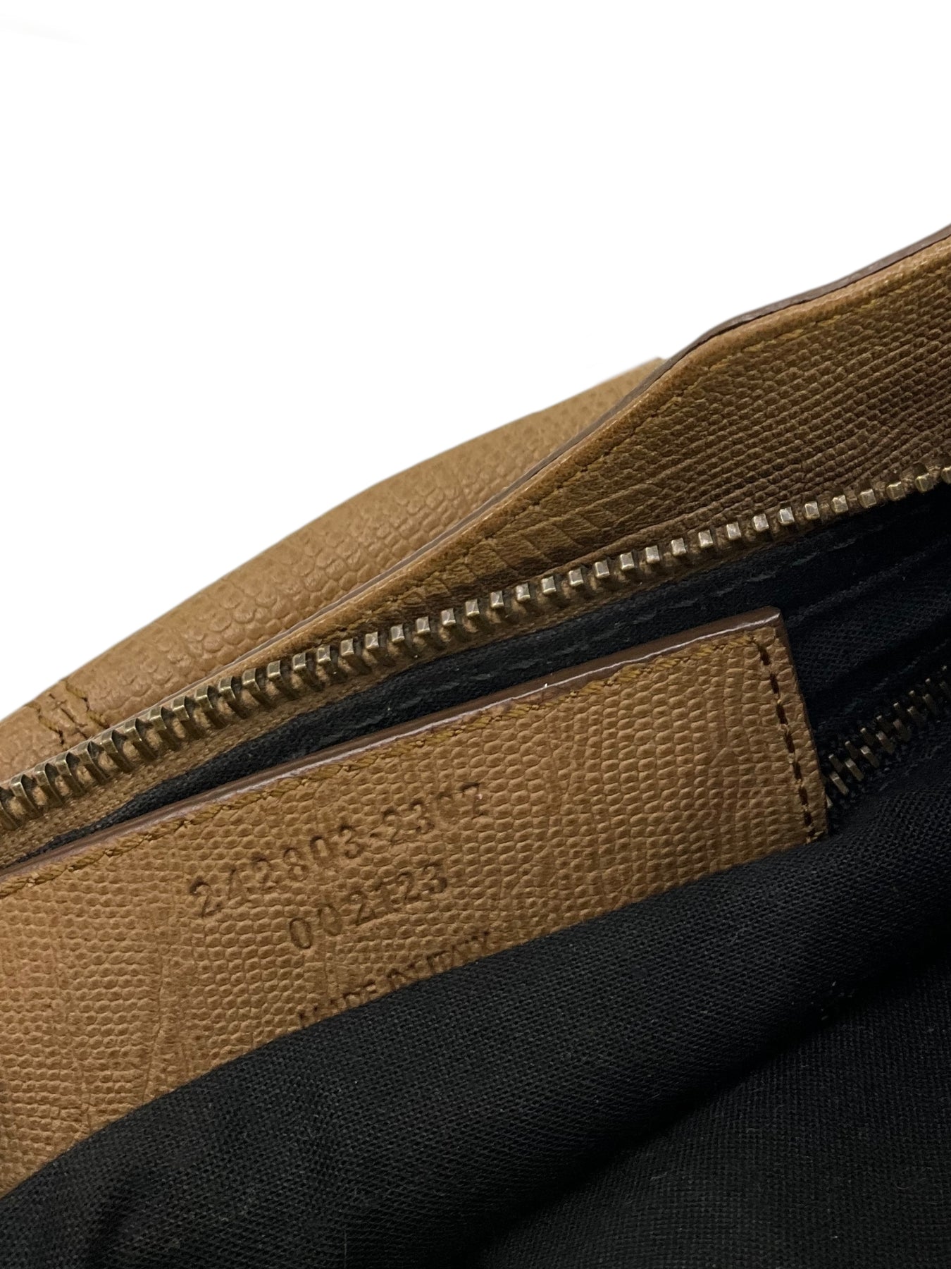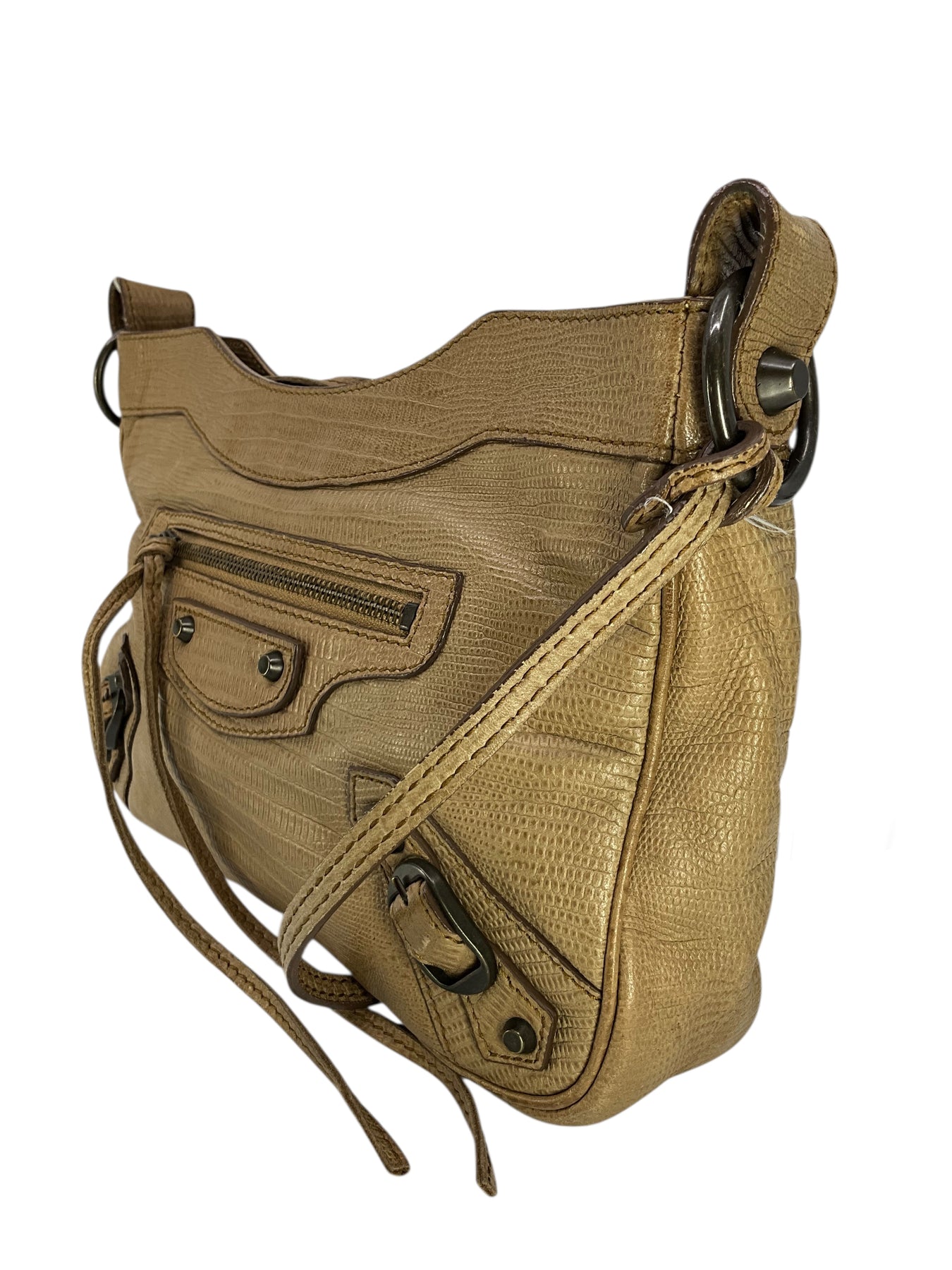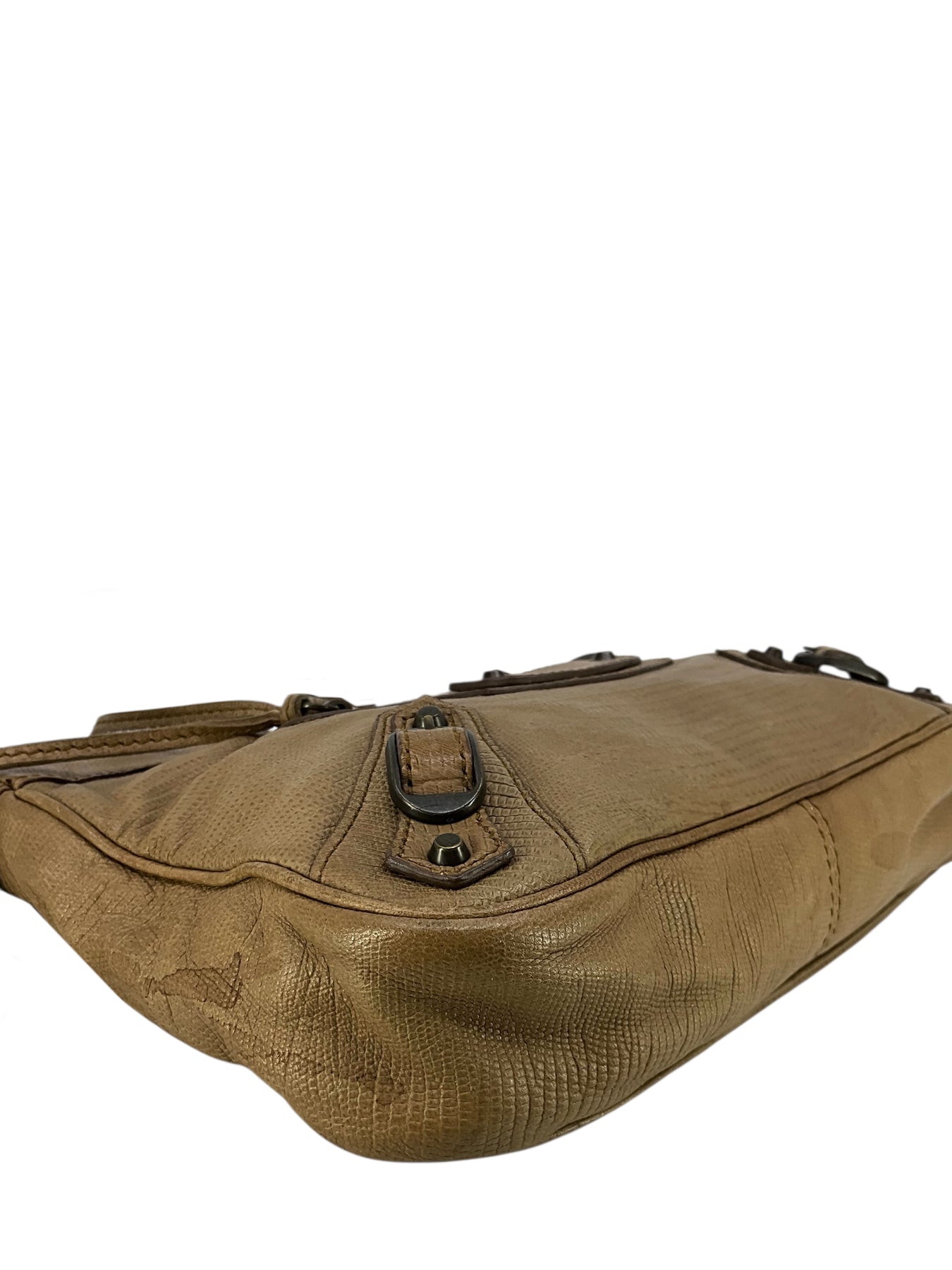 This authentic Balenciaga Motocross Classic Hip Crossbody Bag makes for the perfect bag for just the essentials. This bag is crafted from textured brown leather. It features a removable crossbody strap, bronze studded hardware, a front zip compartment and hanging hand mirror.