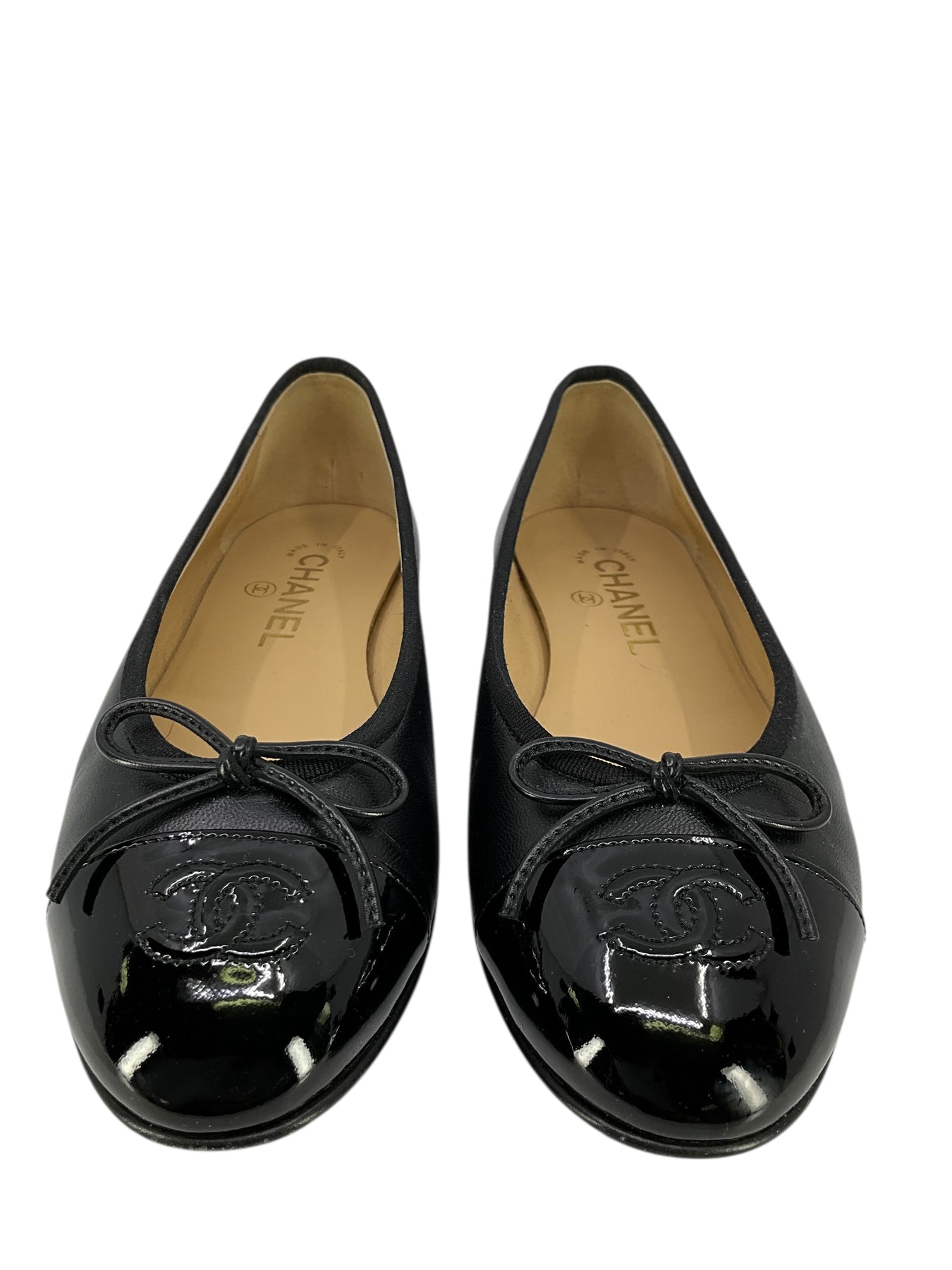 Chanel CC Cap Toe Lambskin Leather Ballet Flats Size 8.5