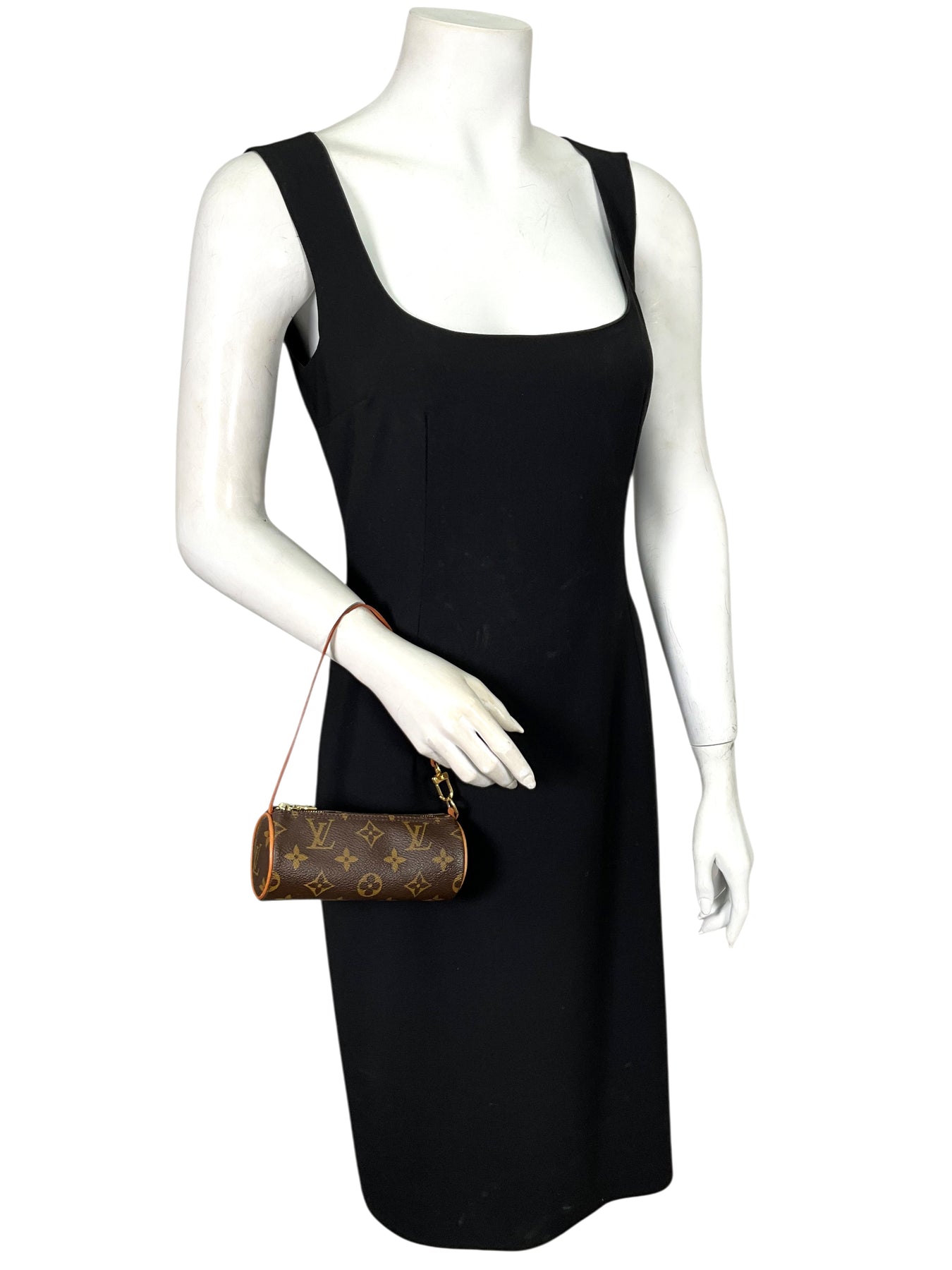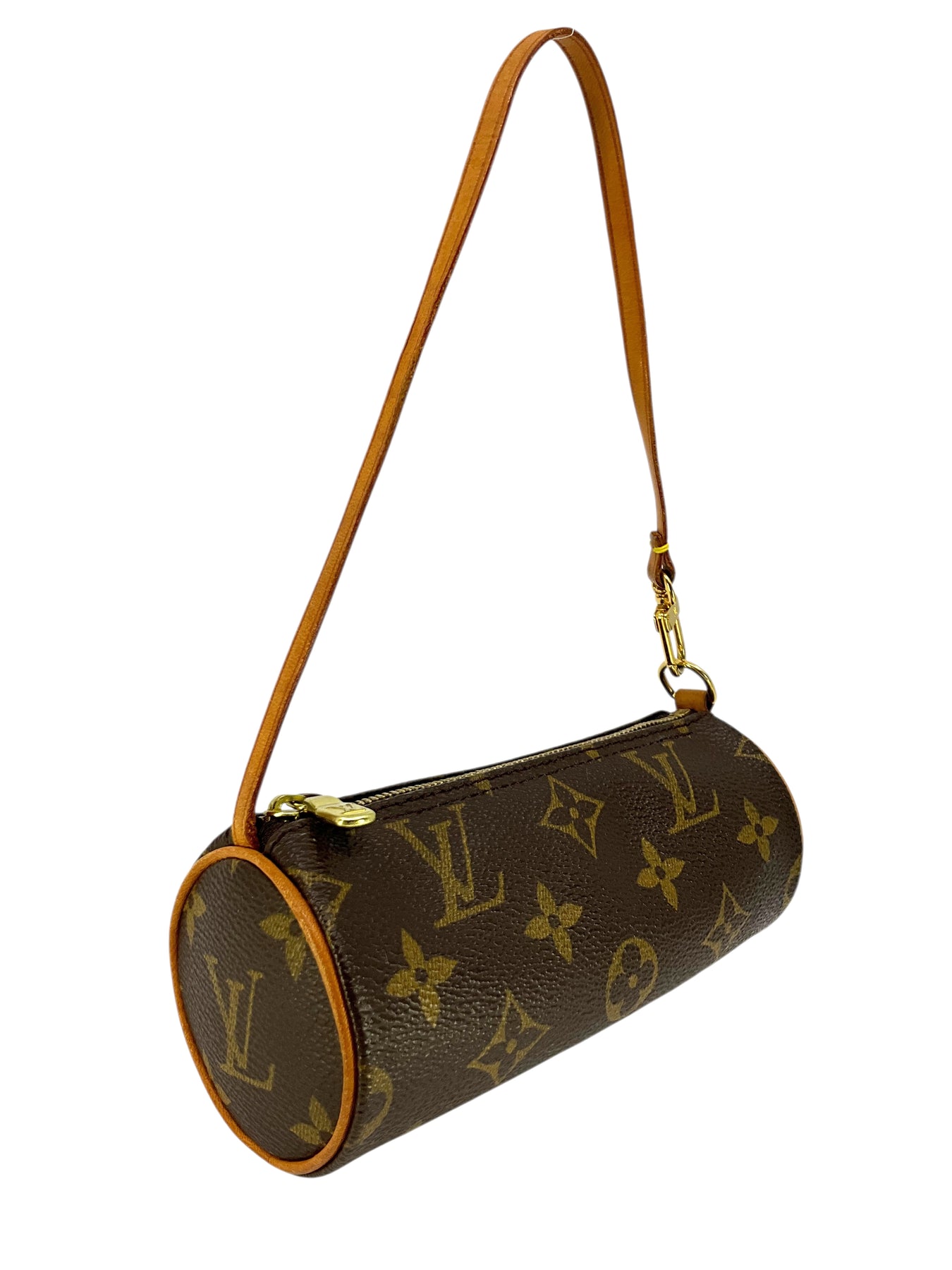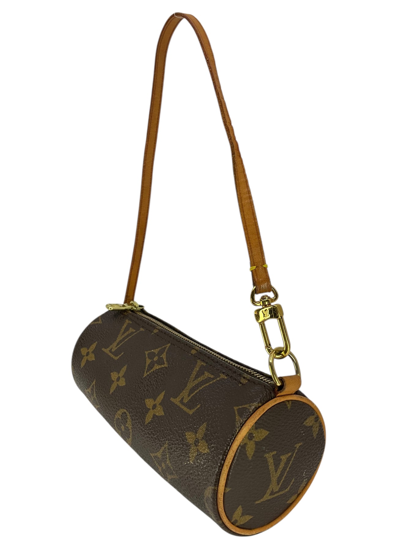Add to your collection this gorgeous authentic Louis Vuitton Monogram Mini Papillon Bag crafted from signature brown monogram on toile canvas and polished brass hardware. This stylish bag features a natural vachetta cowhide leather trim and a single shoulder strap.