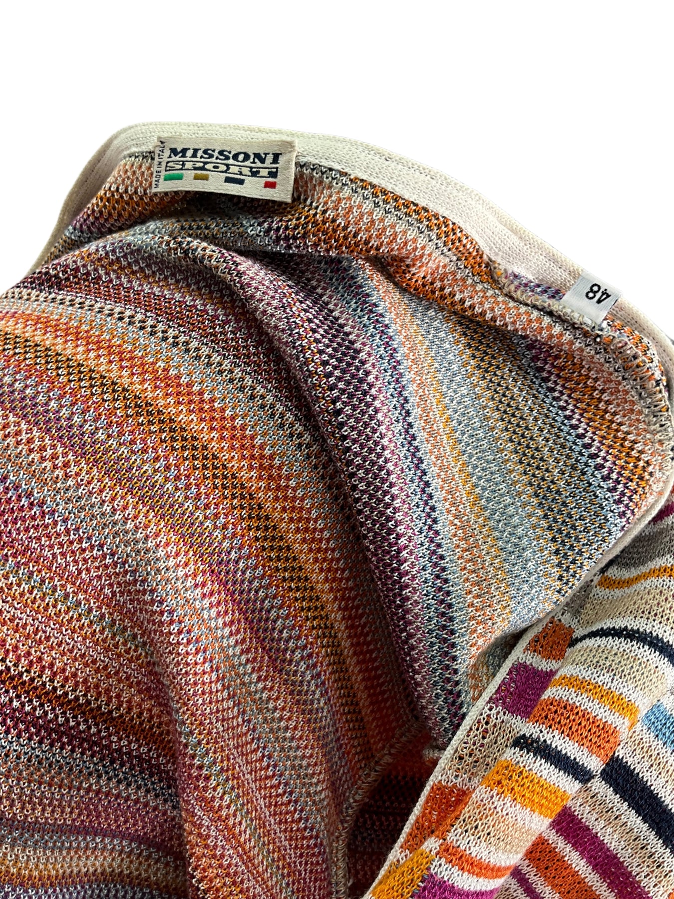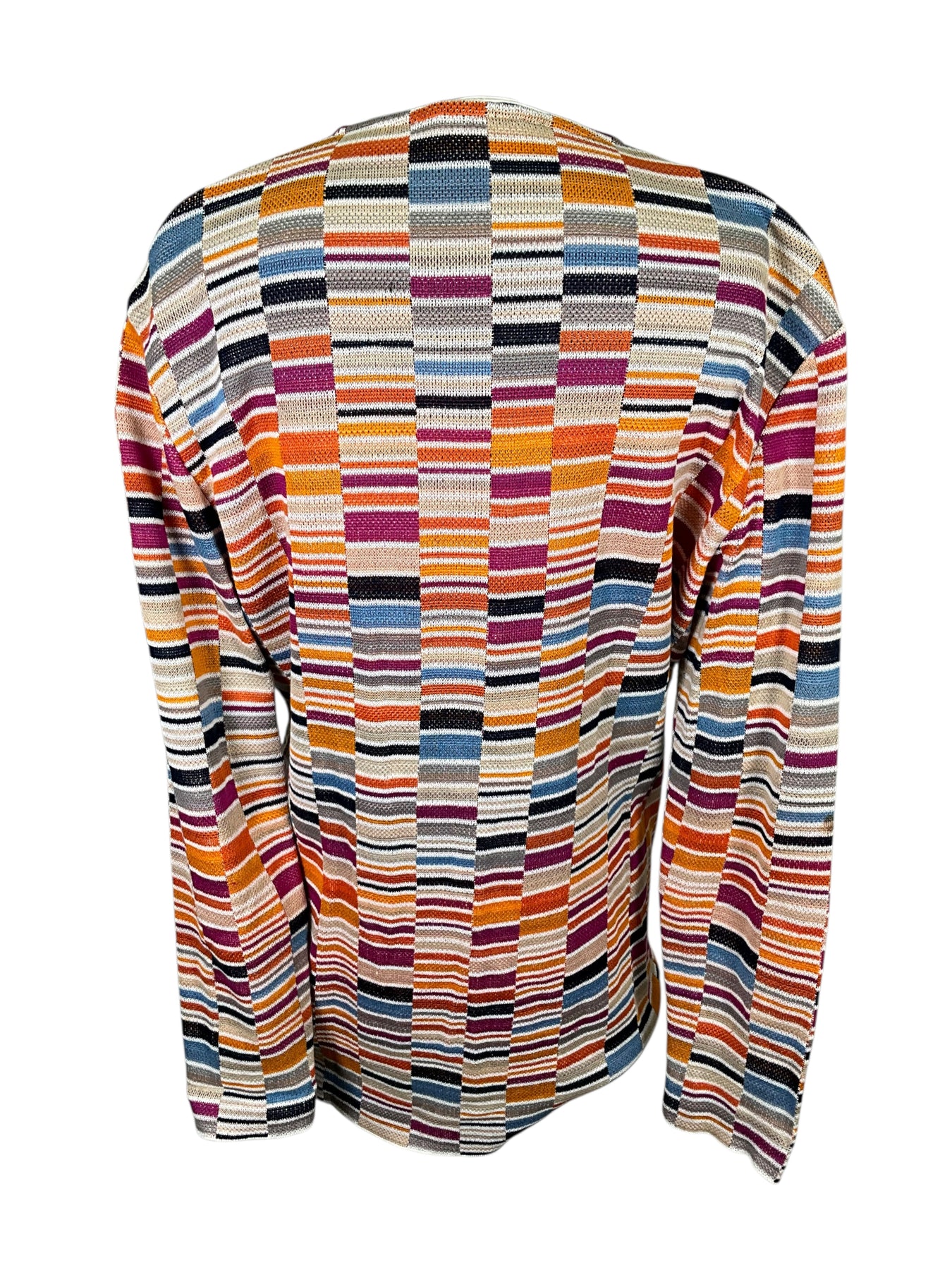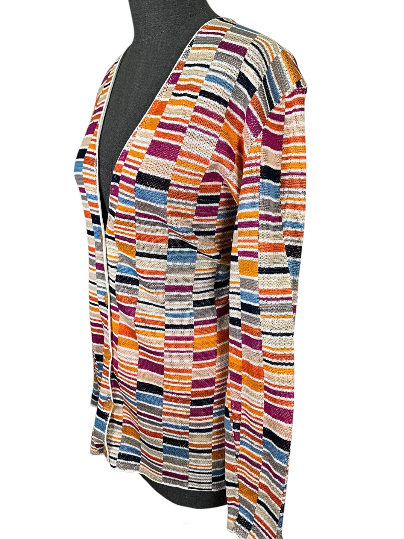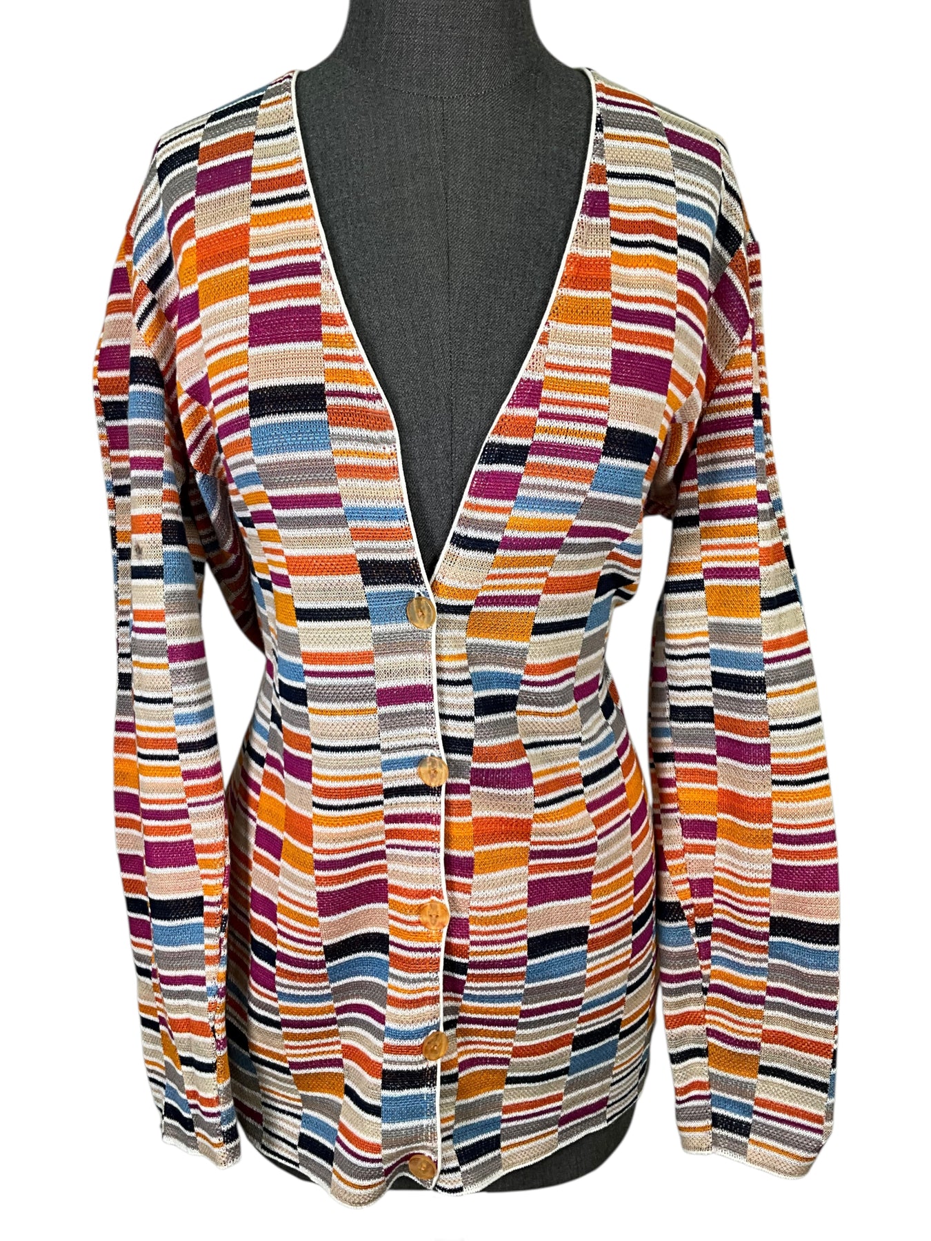 We guarantee the authenticity of this beautiful Missoni Sport Knit Cotton Long Cardigan Size XL crafted in multicolor hues with a v neckline and front button closures.