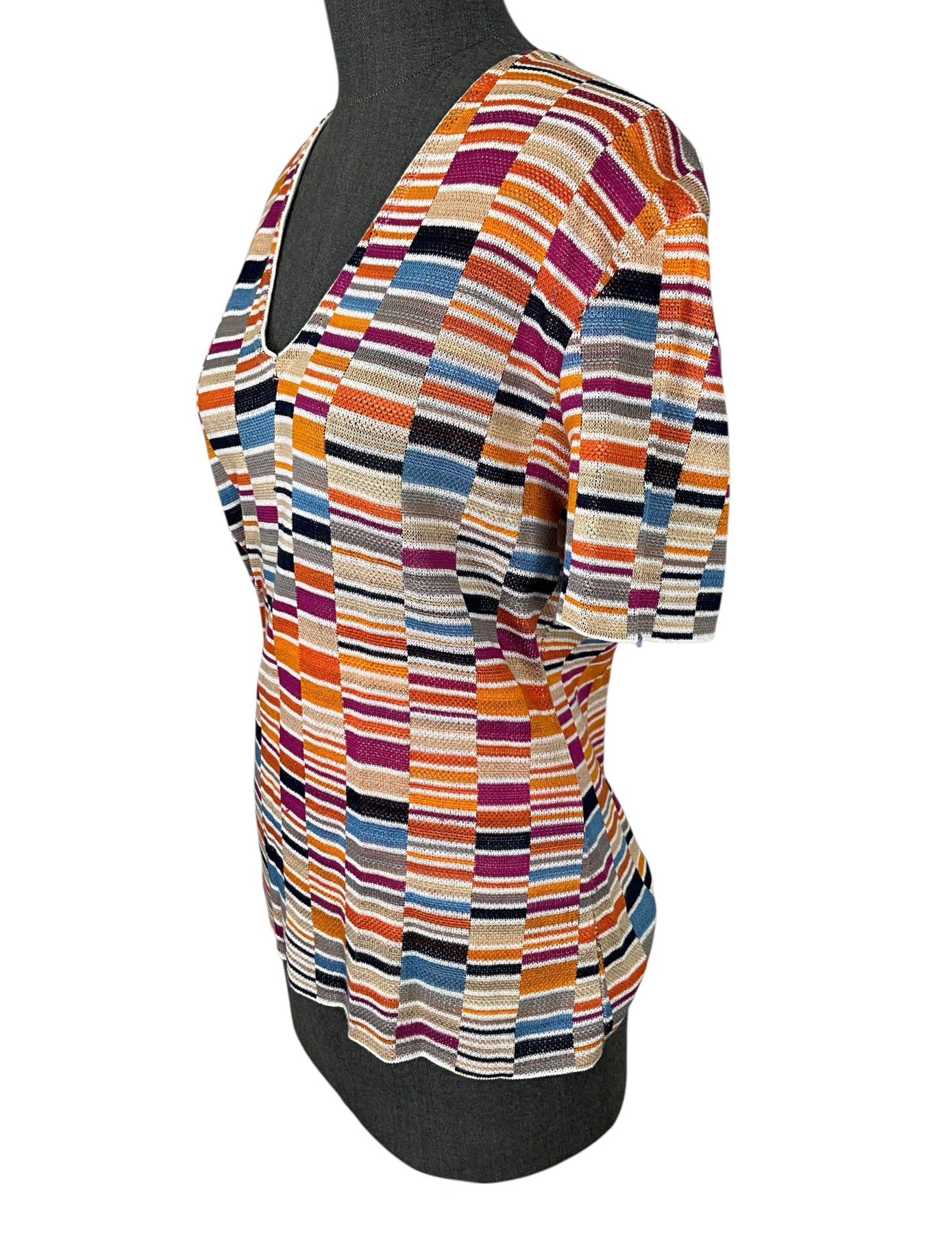 We guarantee the authenticity of this beautiful Missoni Sport Knit Cotton Short Sleeve Sweater Size XL crafted in multicolor hues with a v neckline.