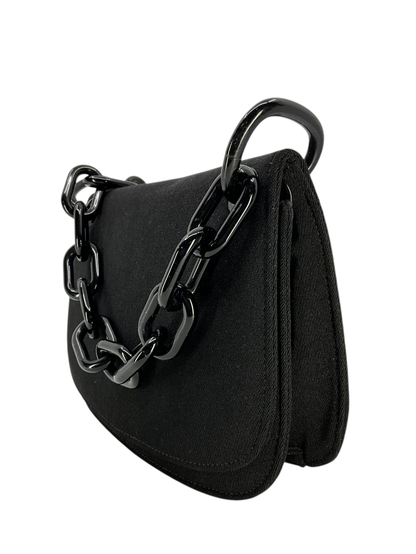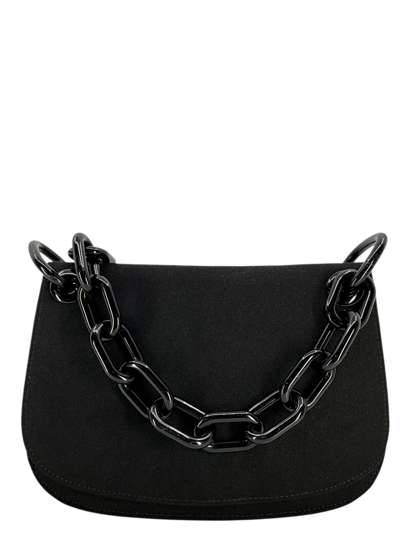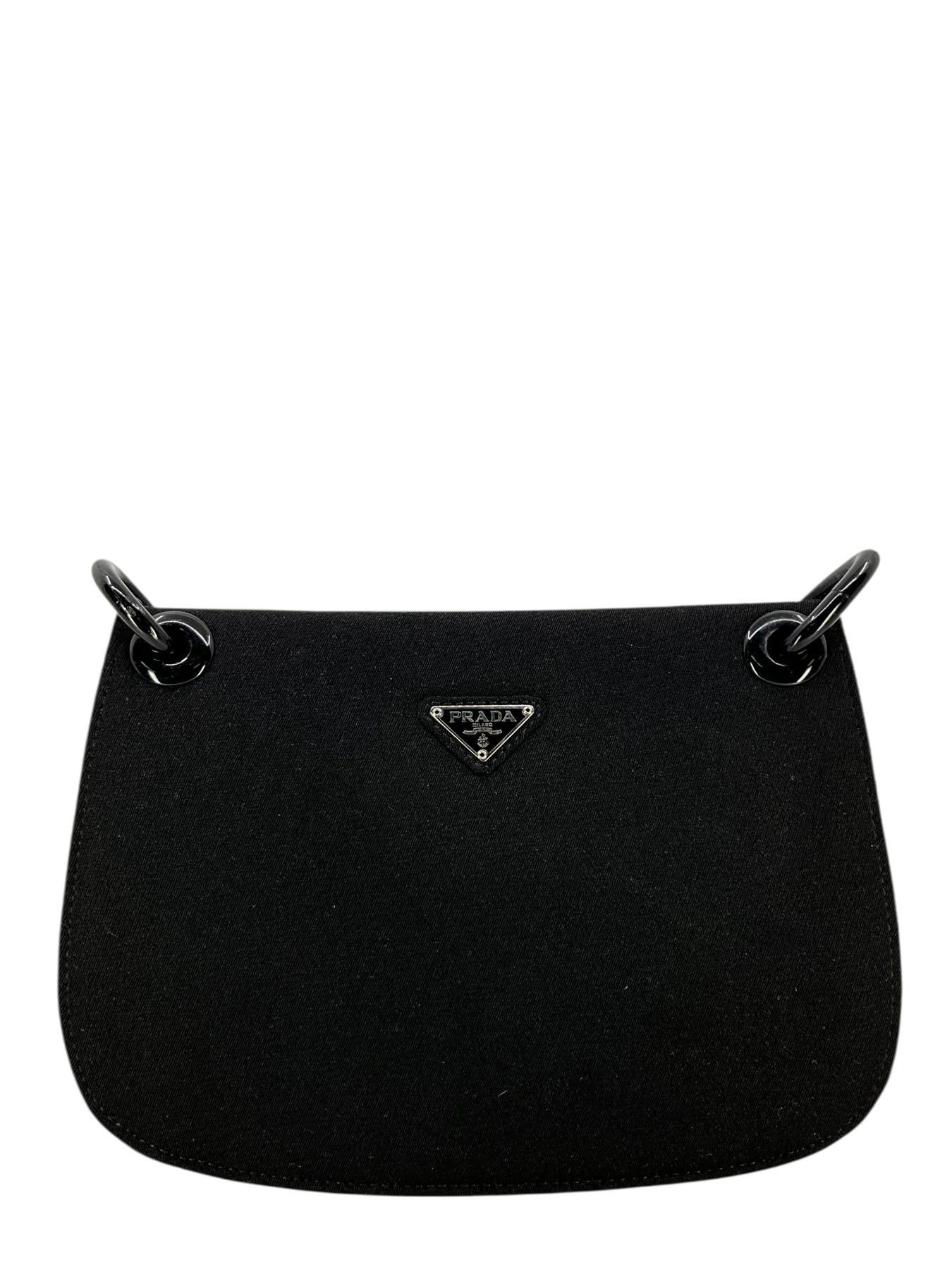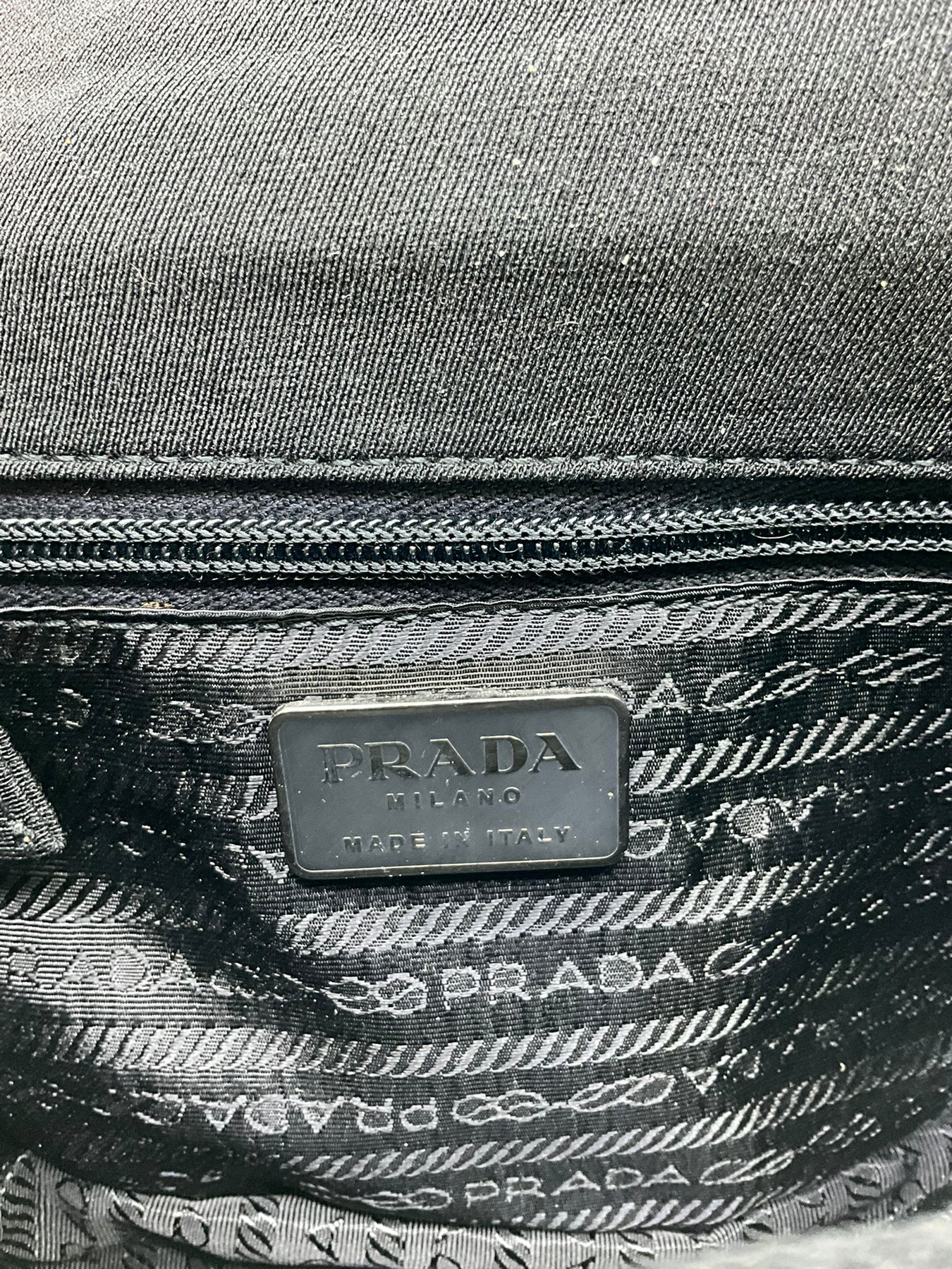 We guarantee the authenticity of this PRADA Tessuto Nylon Beaded Small Bag constructed of black nylon with a signature triangle logo at the back. Featuring a black plastic chain link shoulder strap and a secure front flap with a magnetic snap closure.