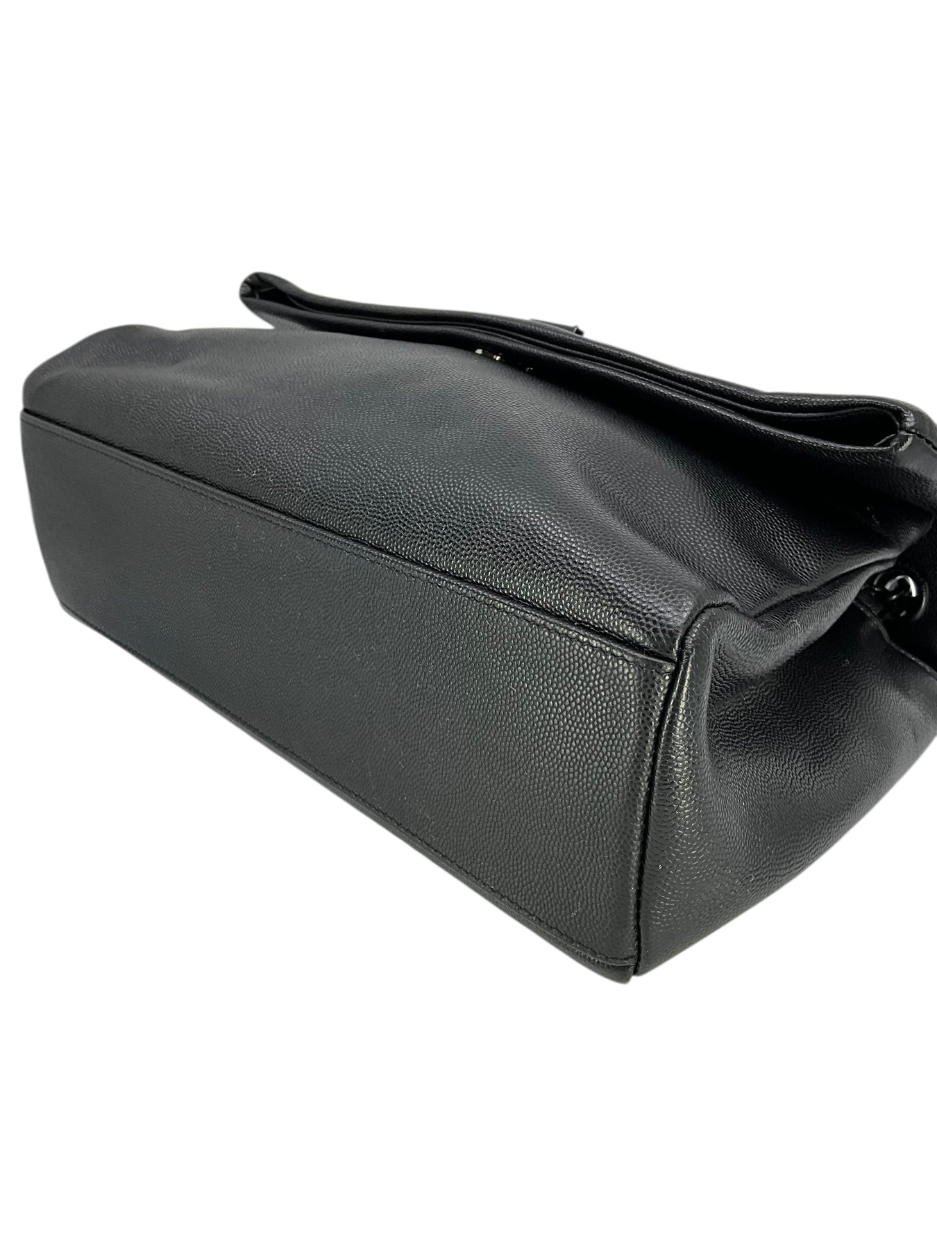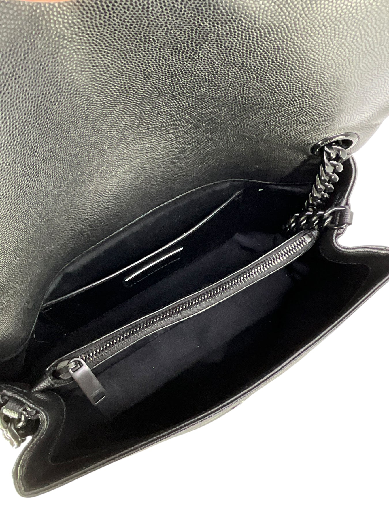 Condition: Very Good. The Front of the bag has creasing and indentation marks from the chain shoulder strap. No obvious marks or scuffs are present. The interior is clean and beautiful.