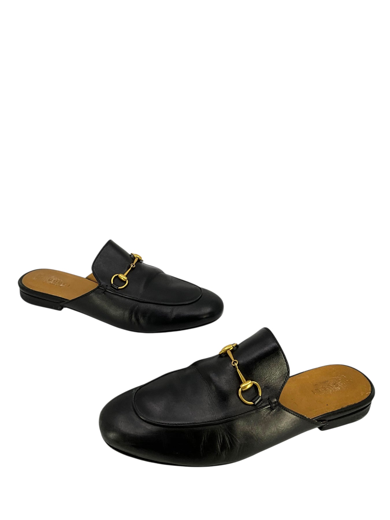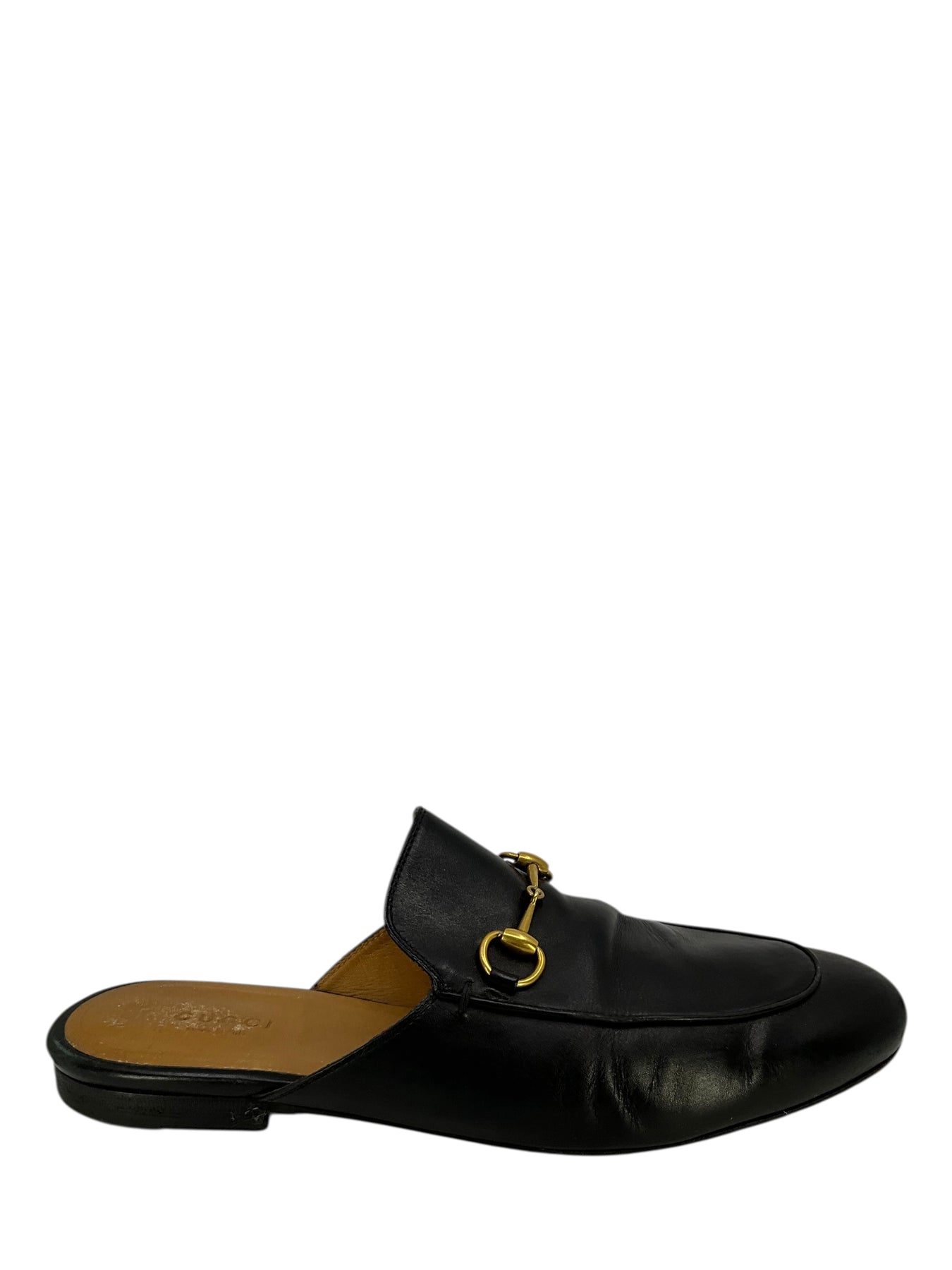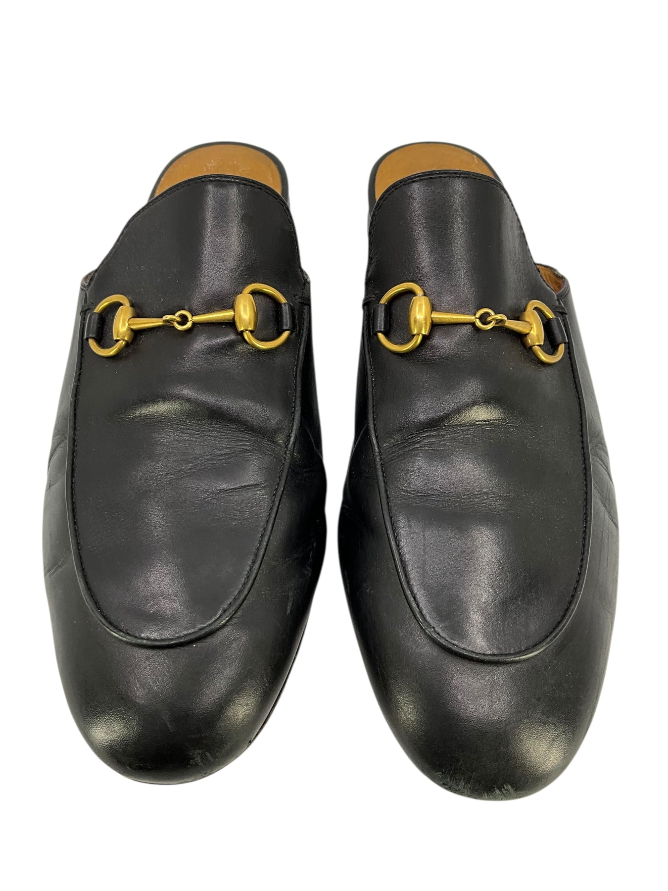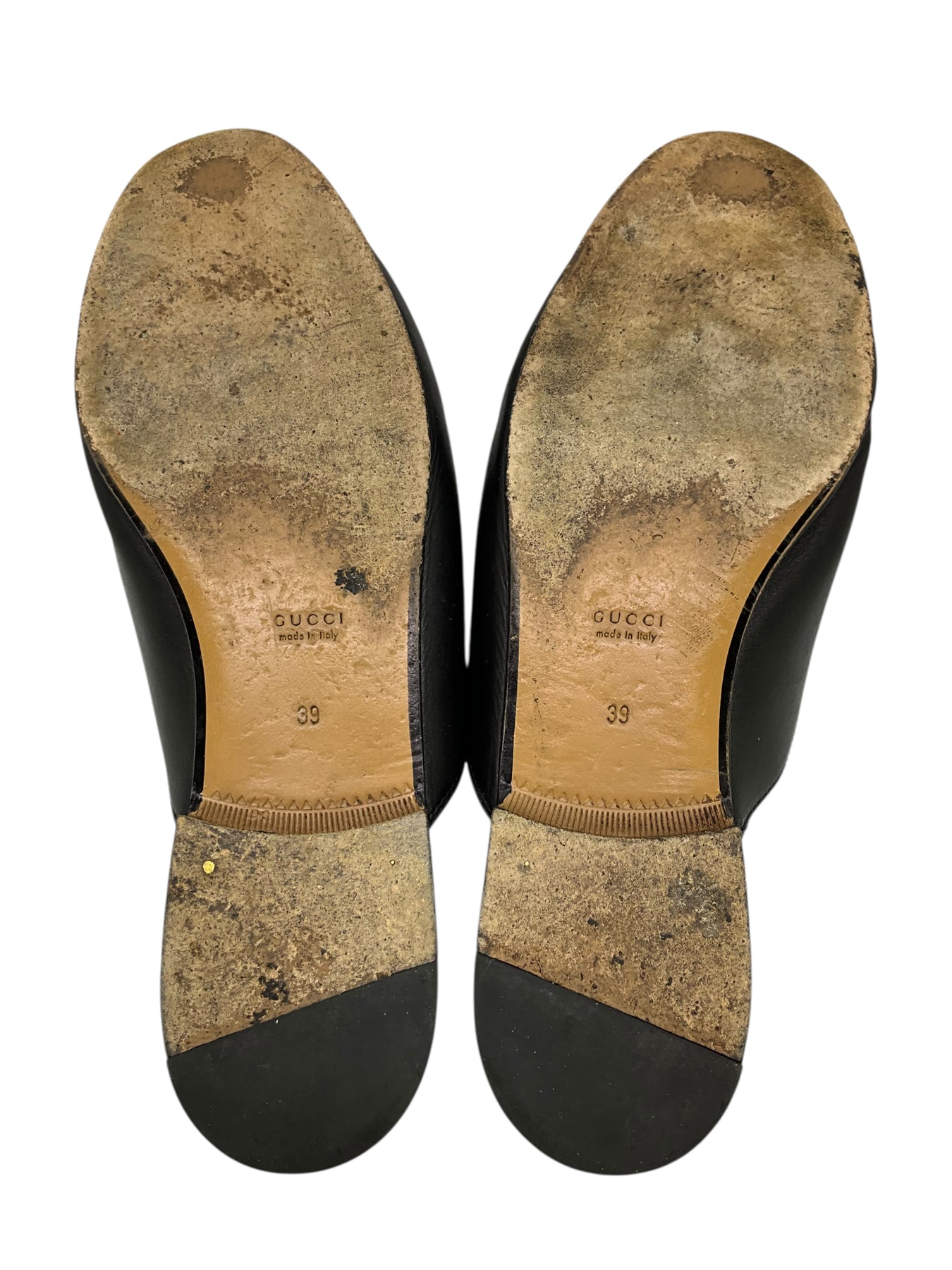 This authentic pair of Gucci Princetown Horsebit Leather Mules Size 9 (IT 39) has become a iconic collection since its debut. Beautifully crafted in black leather. These ultra-comfortable shoes feature a signature gold-tone horsebit accent, rounded toes and soft leather insoles.
