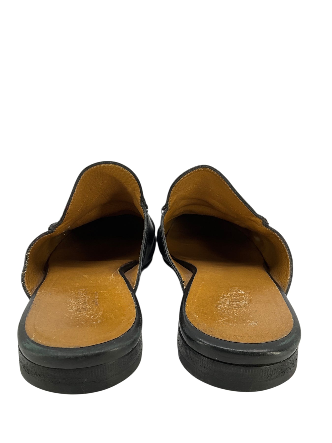 Condition: Good. Marks and creasing are present on exteiror black leather. The tips of the toes have scuffing. The foot-beds have wear. The bottom soles have obvious scuffing.