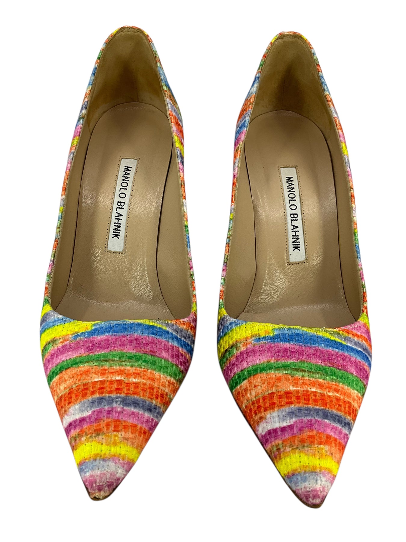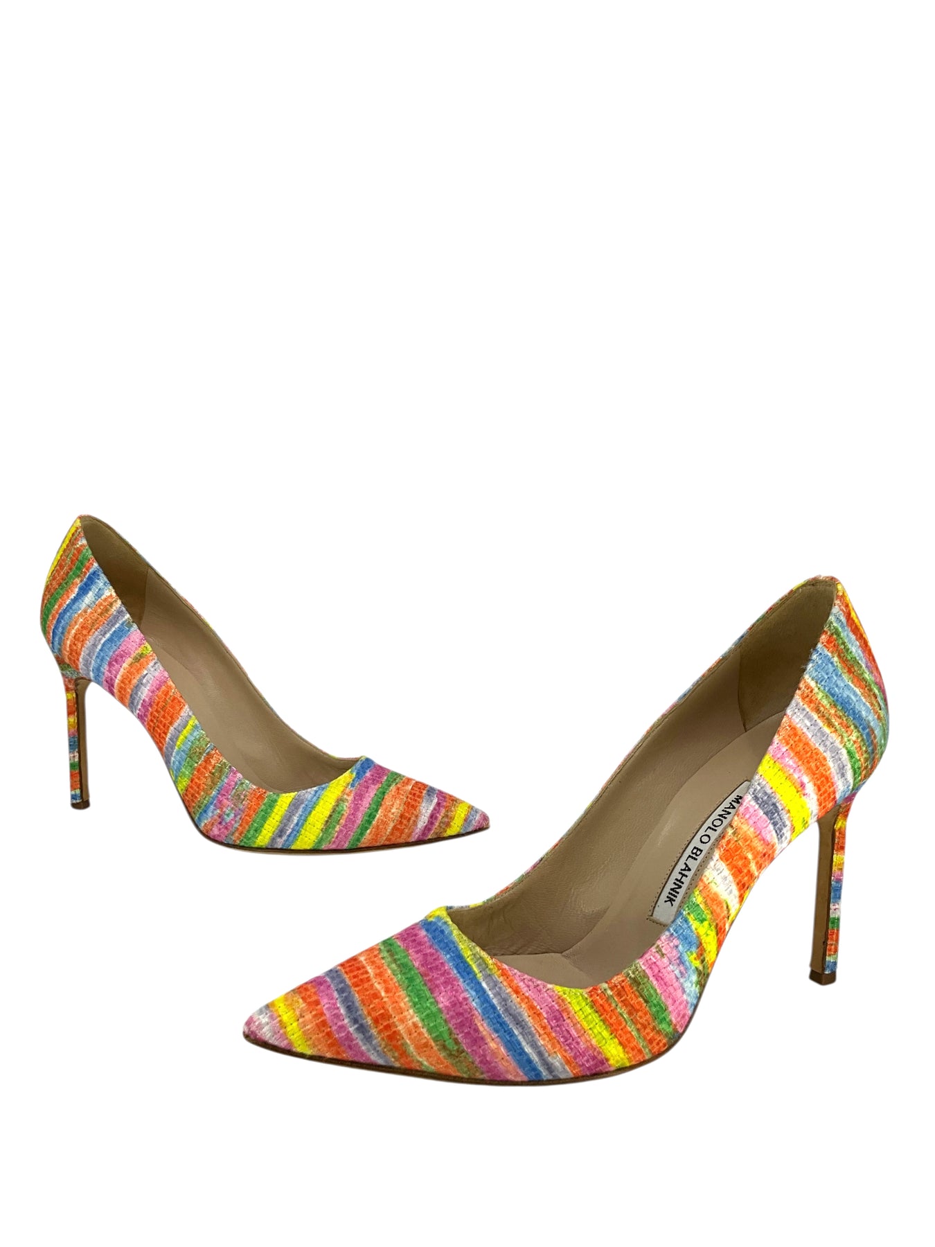 Manolo Blahnik Striped Rainbow BB 105 Pumps Size 8