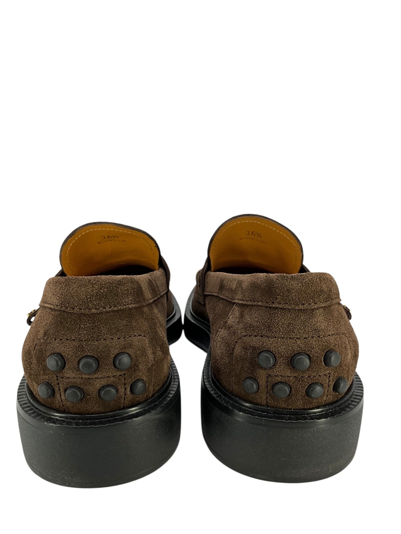 We guarantee the authenticity of these ultra-comfortable TOD'S Mocassino Suede Loafers Size 6.5 in velvety brown suede.