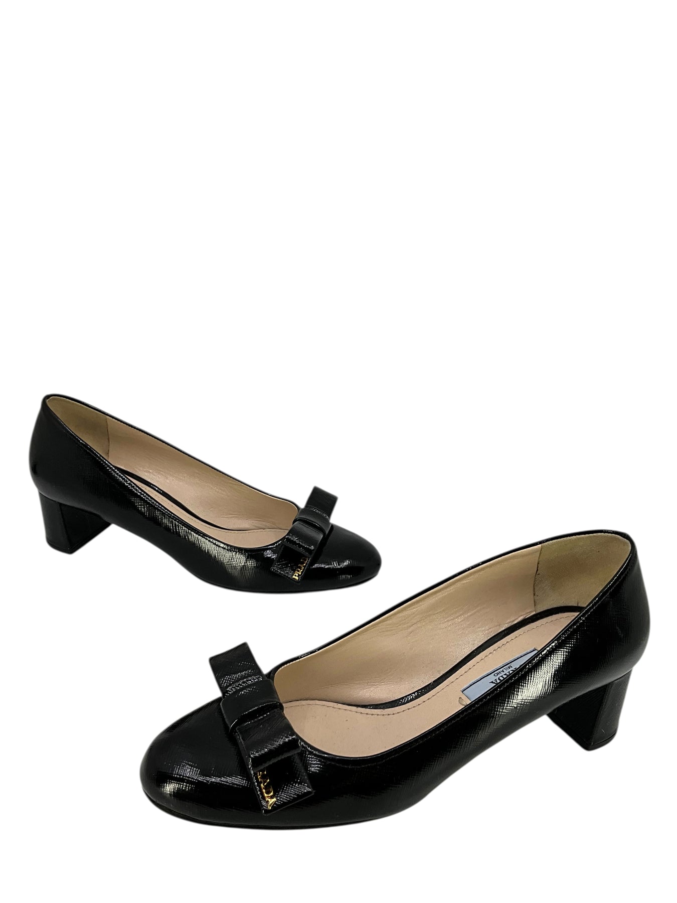 PRADA Saffiano Leather Bow Pumps Size 7-Consigned Designs