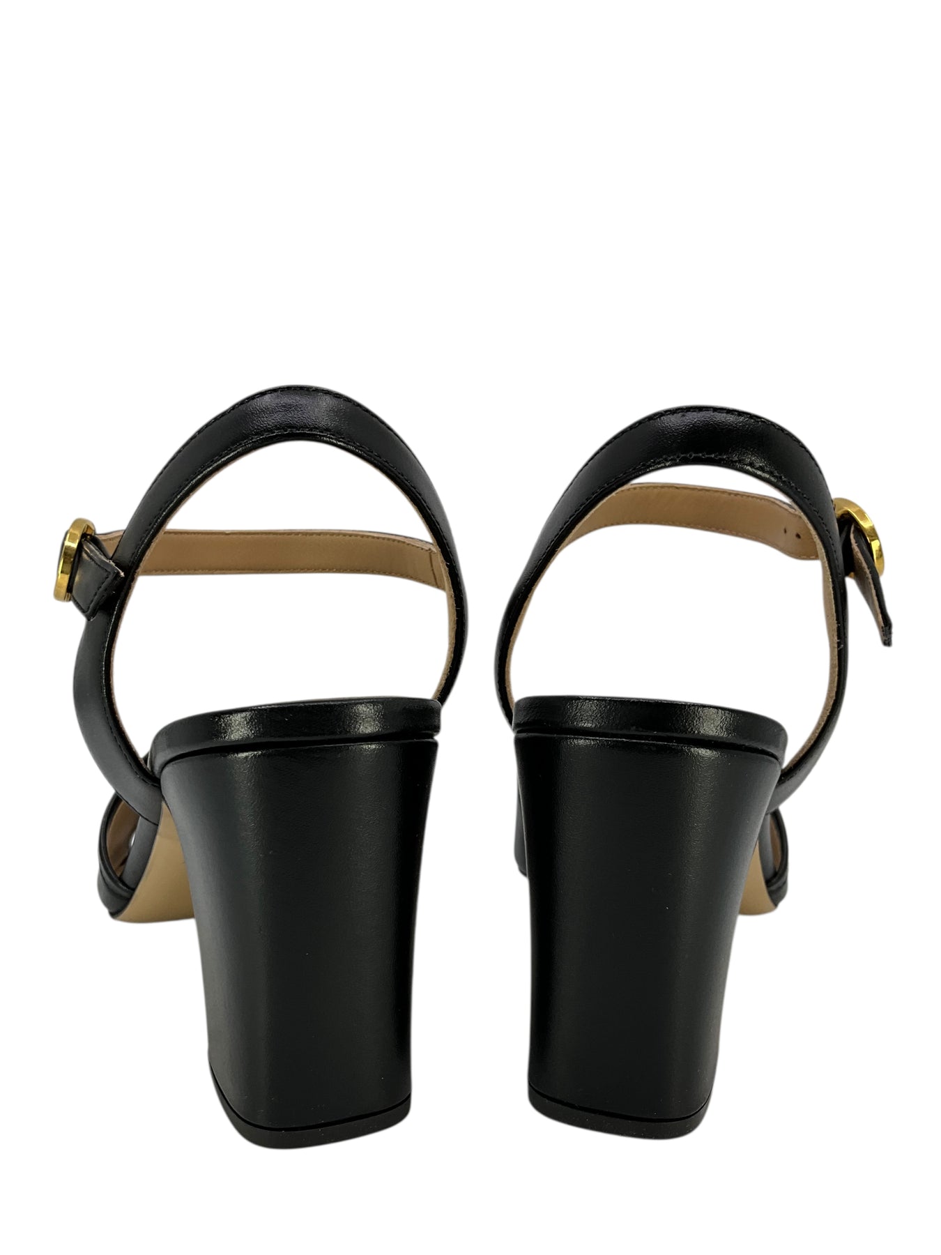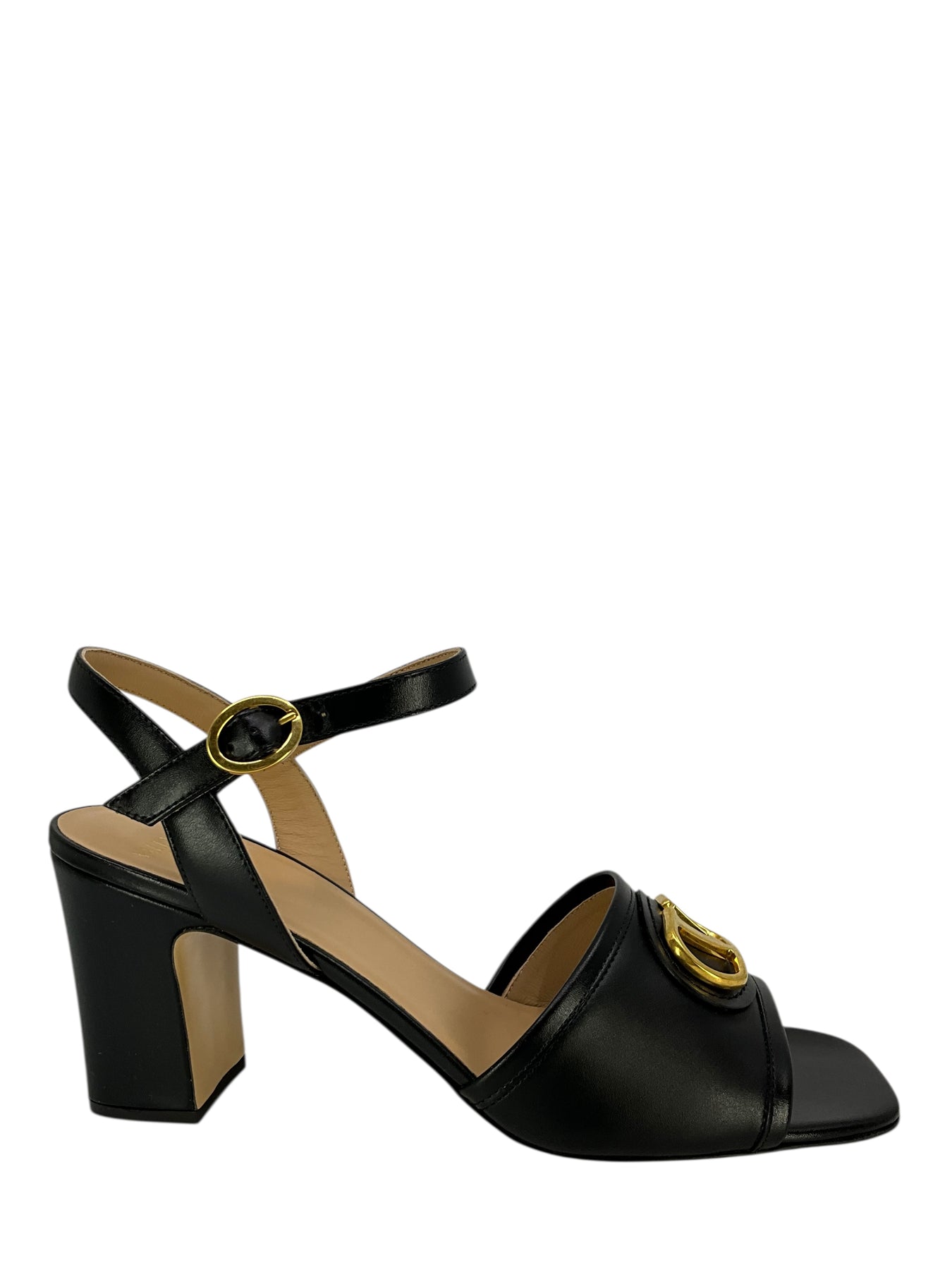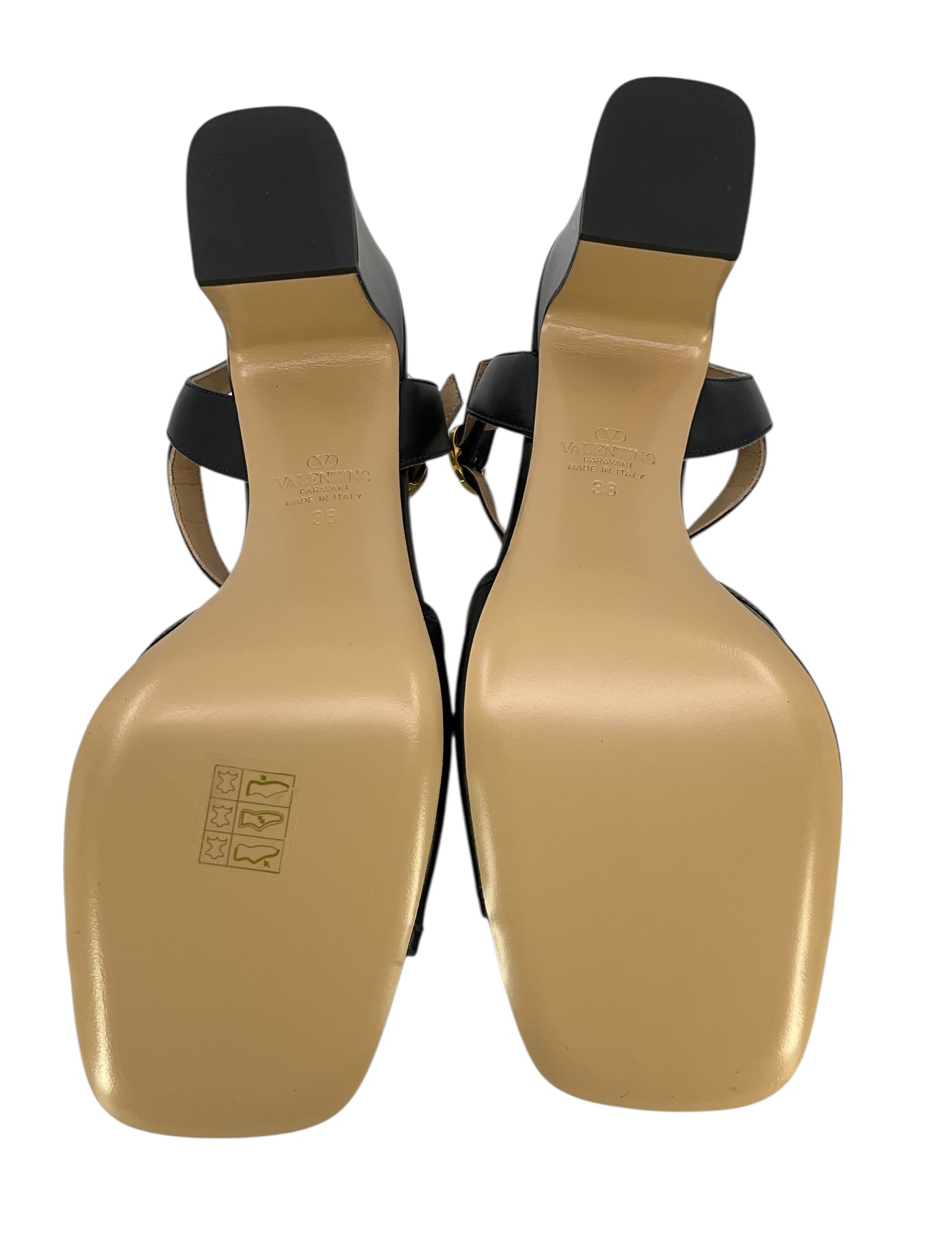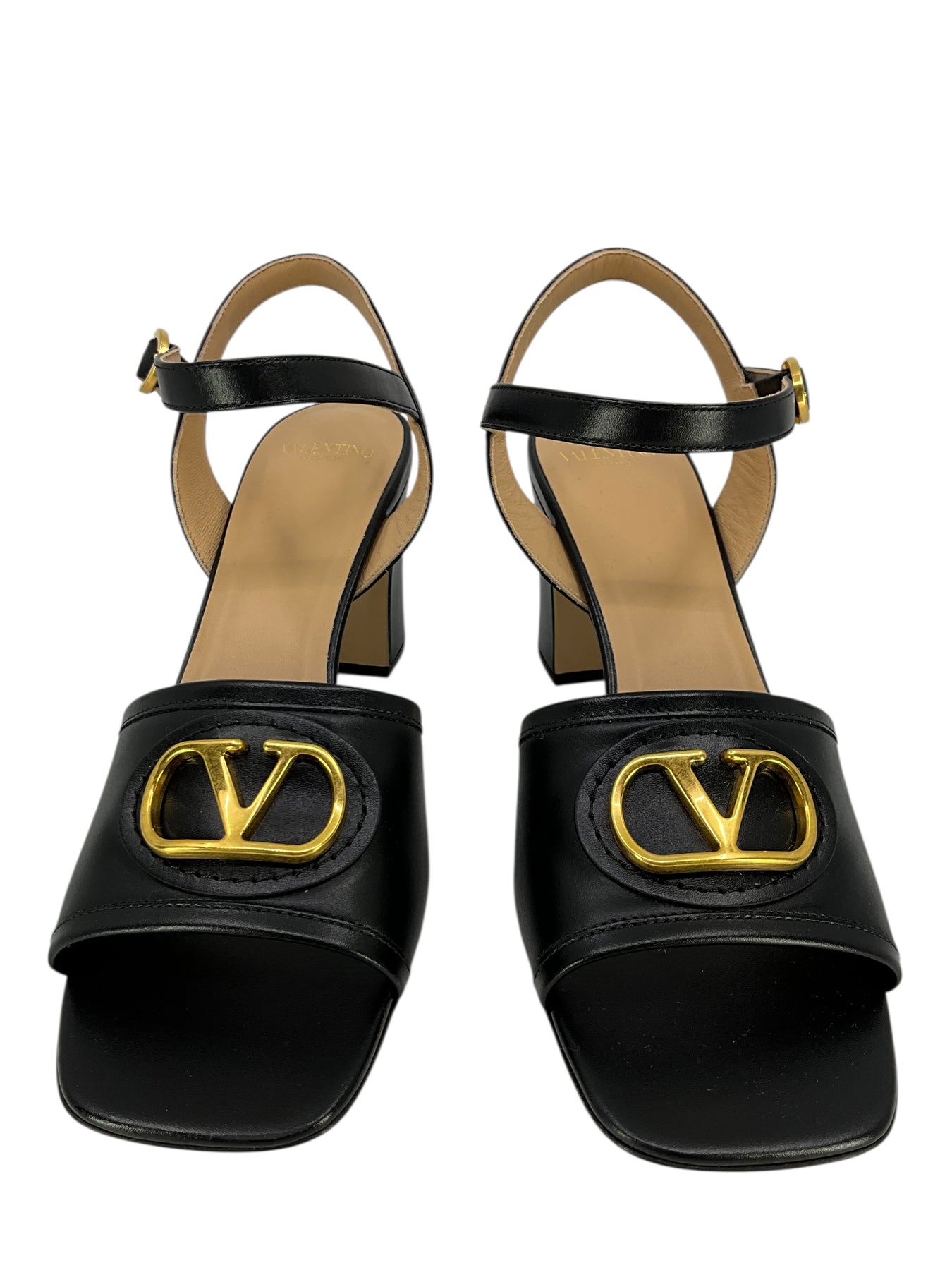 Add a signature heel to your collection with this never before used authentic pair of chic Valentino VLOGO Leather Ankle Strap Sandals Size 8 NEW (IT 38) expertly crafted in black leather. Featuring a signature gold-tone metal logo accent, a self-covered block heel and an adjustable buckled ankle strap.