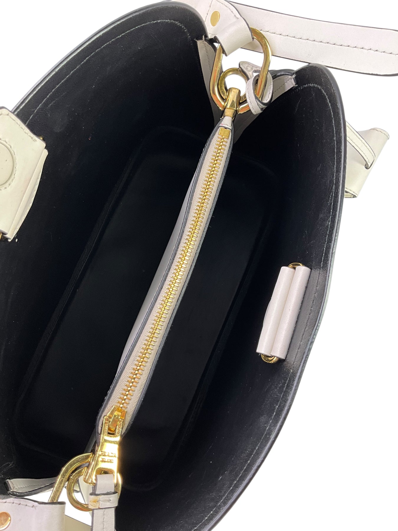 Condition: Excellent. The exterior leather is perfect and like-new. No visible wear. The interior lining is overall clean with some faint surface scratches on the black leather base.