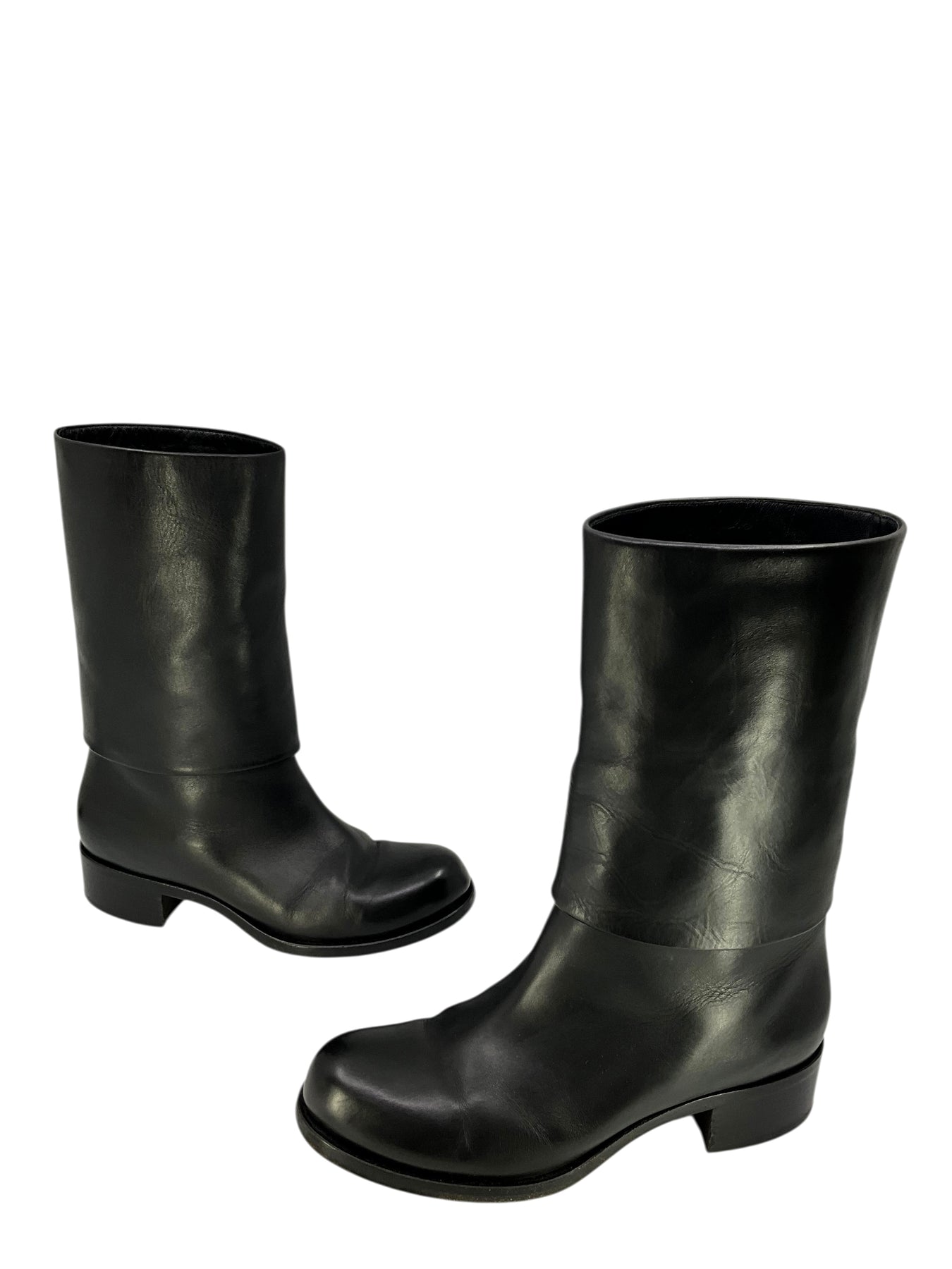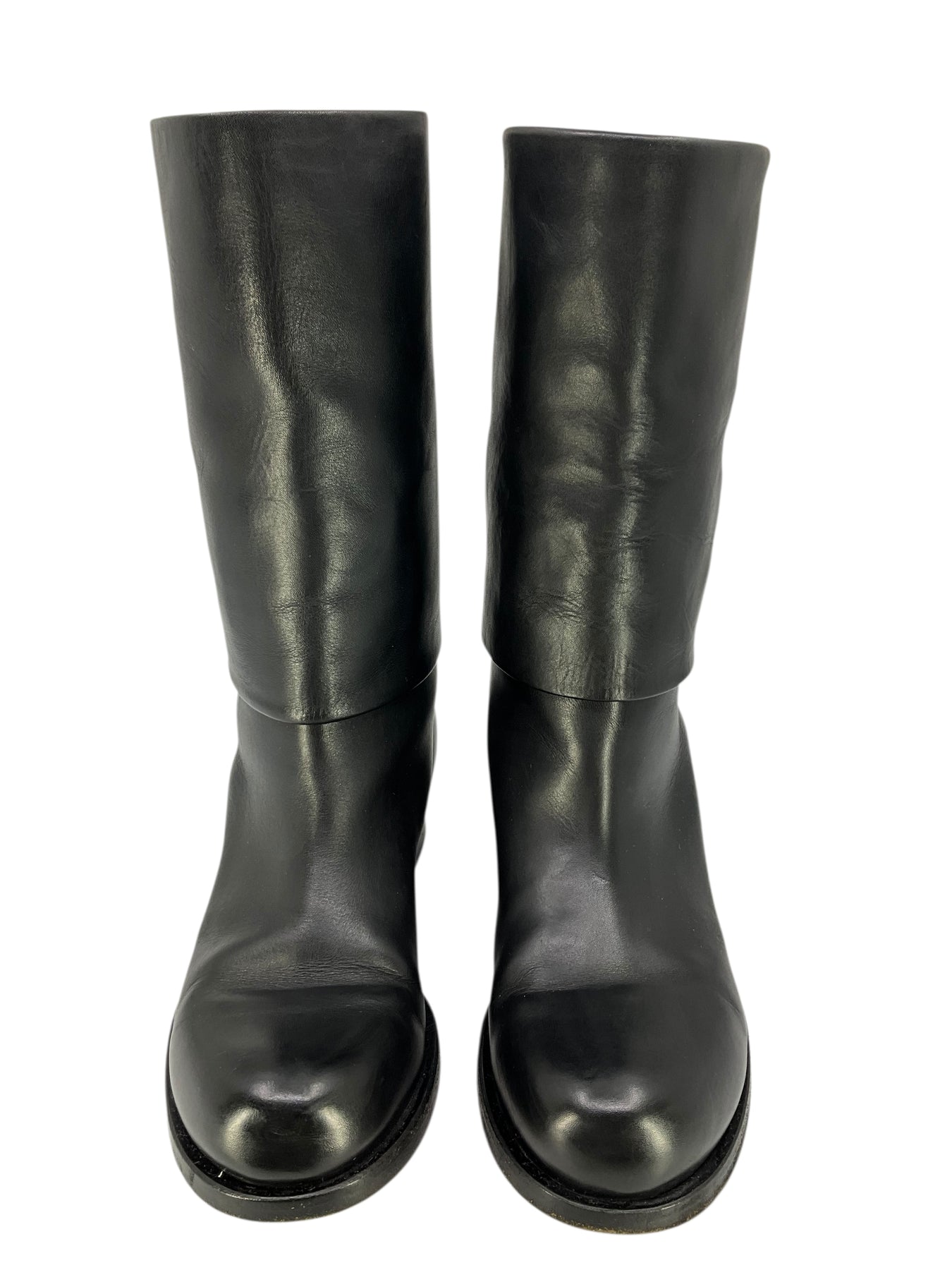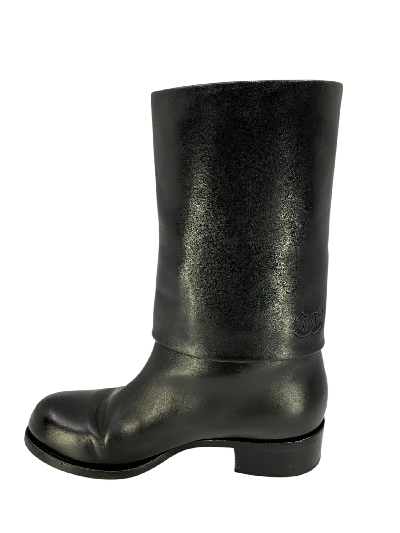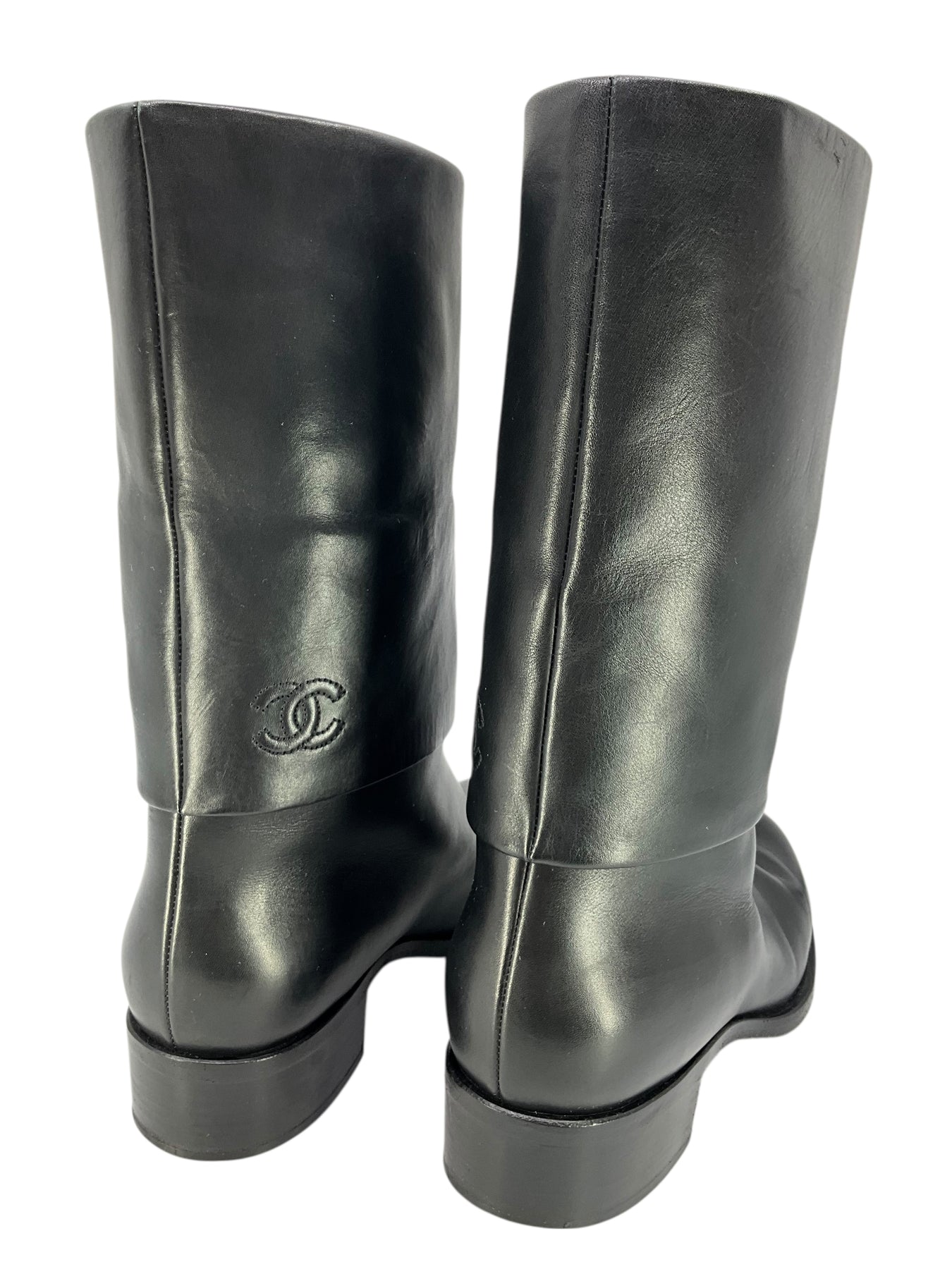 CHANEL Leather CC Logo Fold Over Boots Size 8