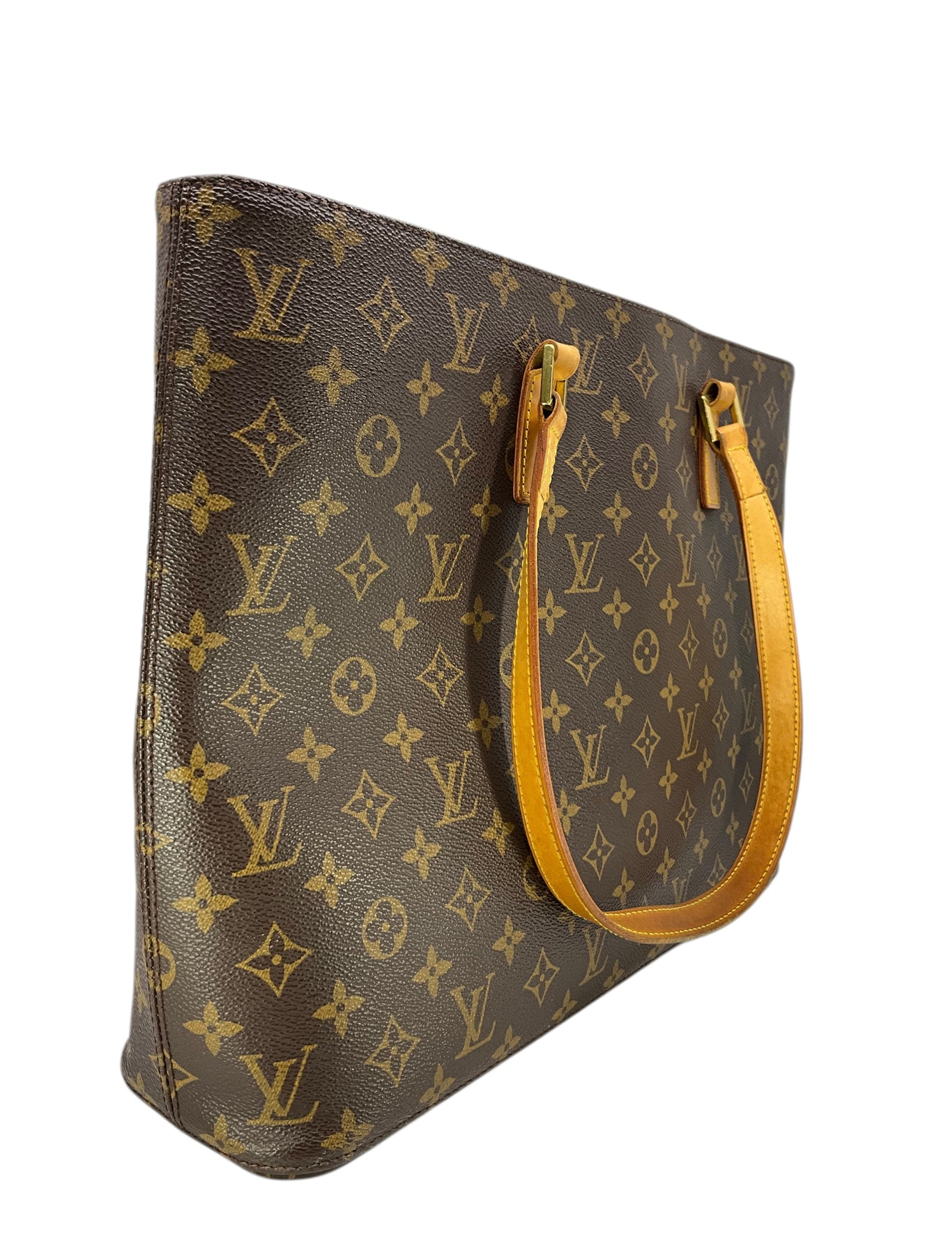We guarantee the authenticity of this Louis Vuitton Monogram Canvas Luco Tote bag in large crafted from monogram canvas with natural cowhide leather handles and polished brass hardware.