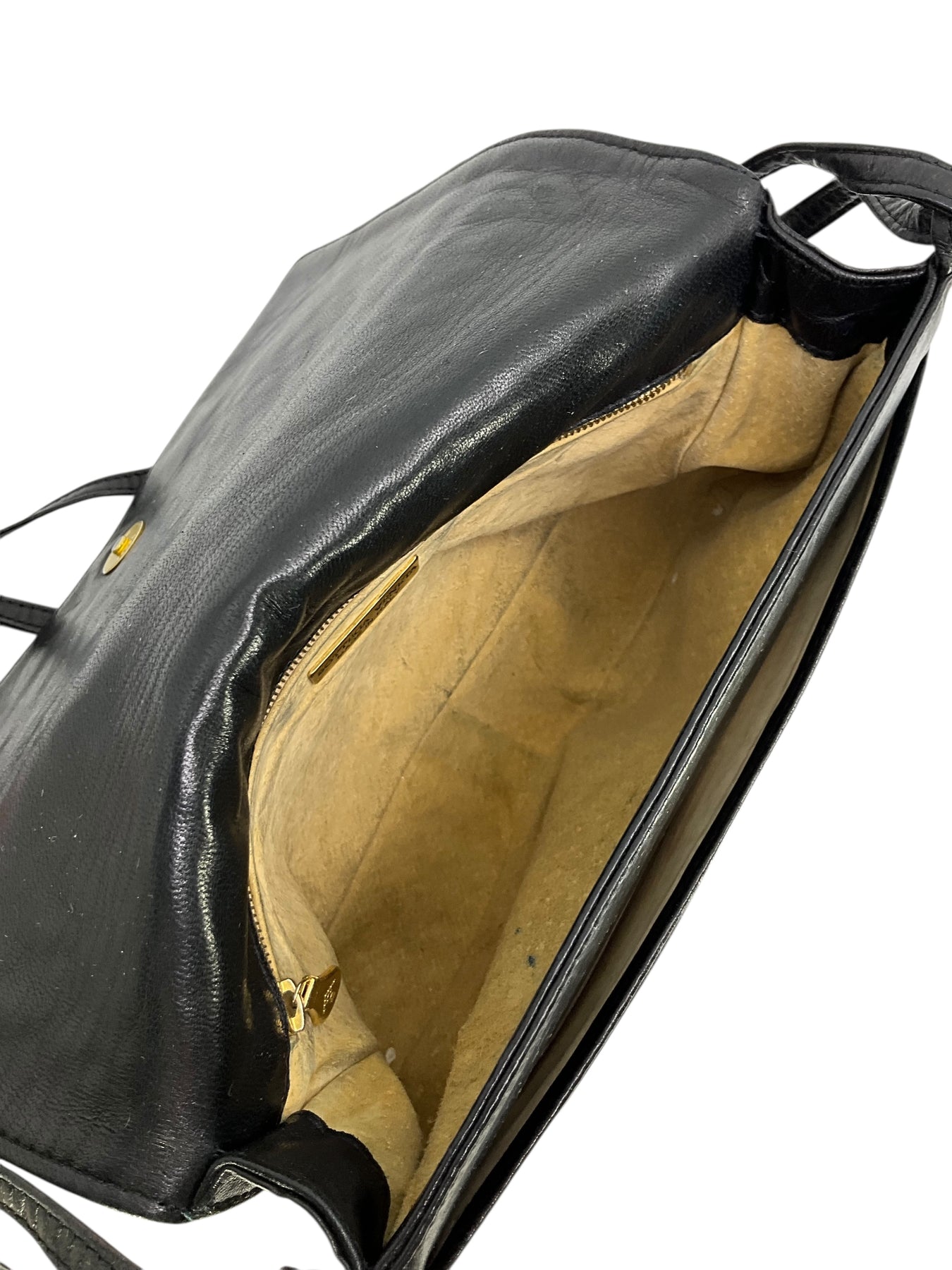 Condition: Very Good. This exterior is overall clean and mint vintage condition. The piping trim and edges of the bag have scuffing. The shoulder strap has creasing. The interior lining has markings but is overall very good.