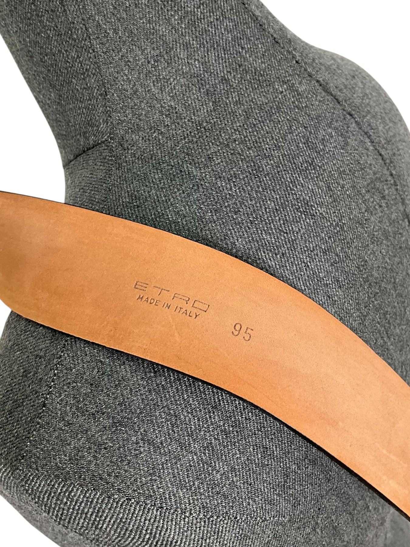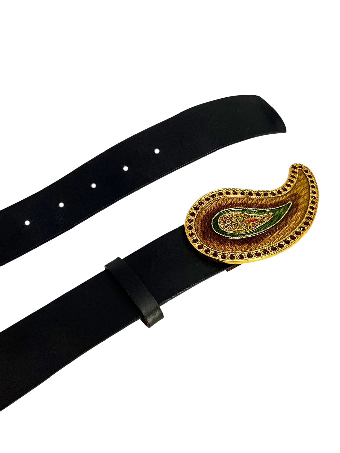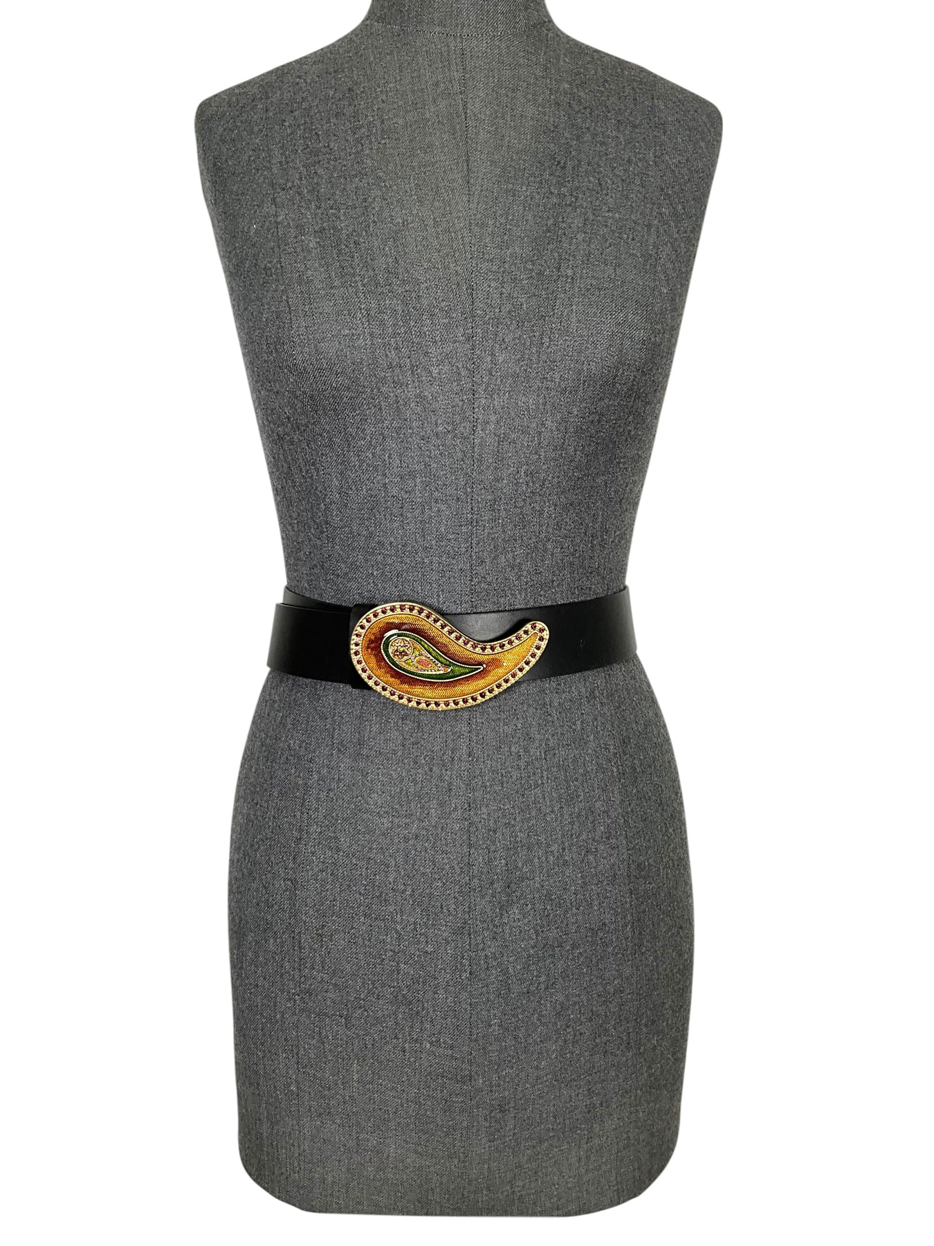 Guaranteed authentic Etro Leather Paisley Buckle Belt Size 95 expertly crafted from smooth black leather with a stunning paisley buckle closure.