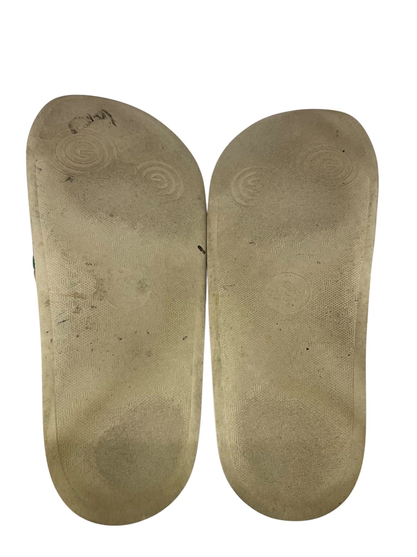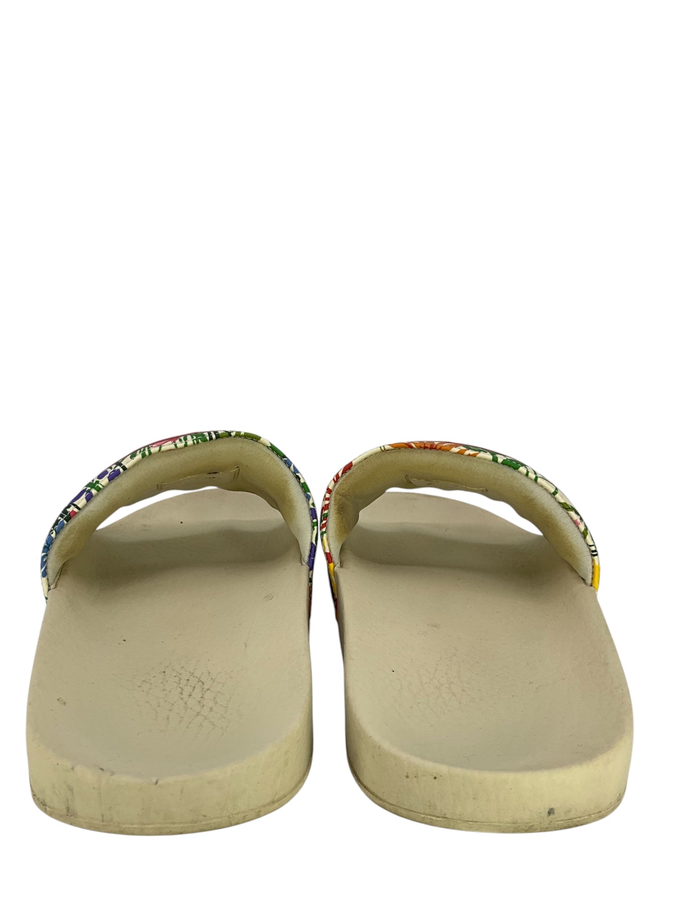 Condition: Very Good. The floral printed uppers are perfect with no visible wear. The foot-beds and bottom soles both have scuffing and rubbing. *Includes original box and dust cover.