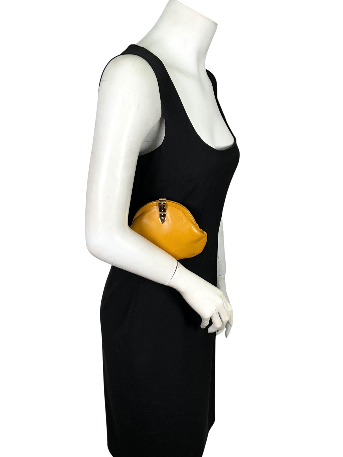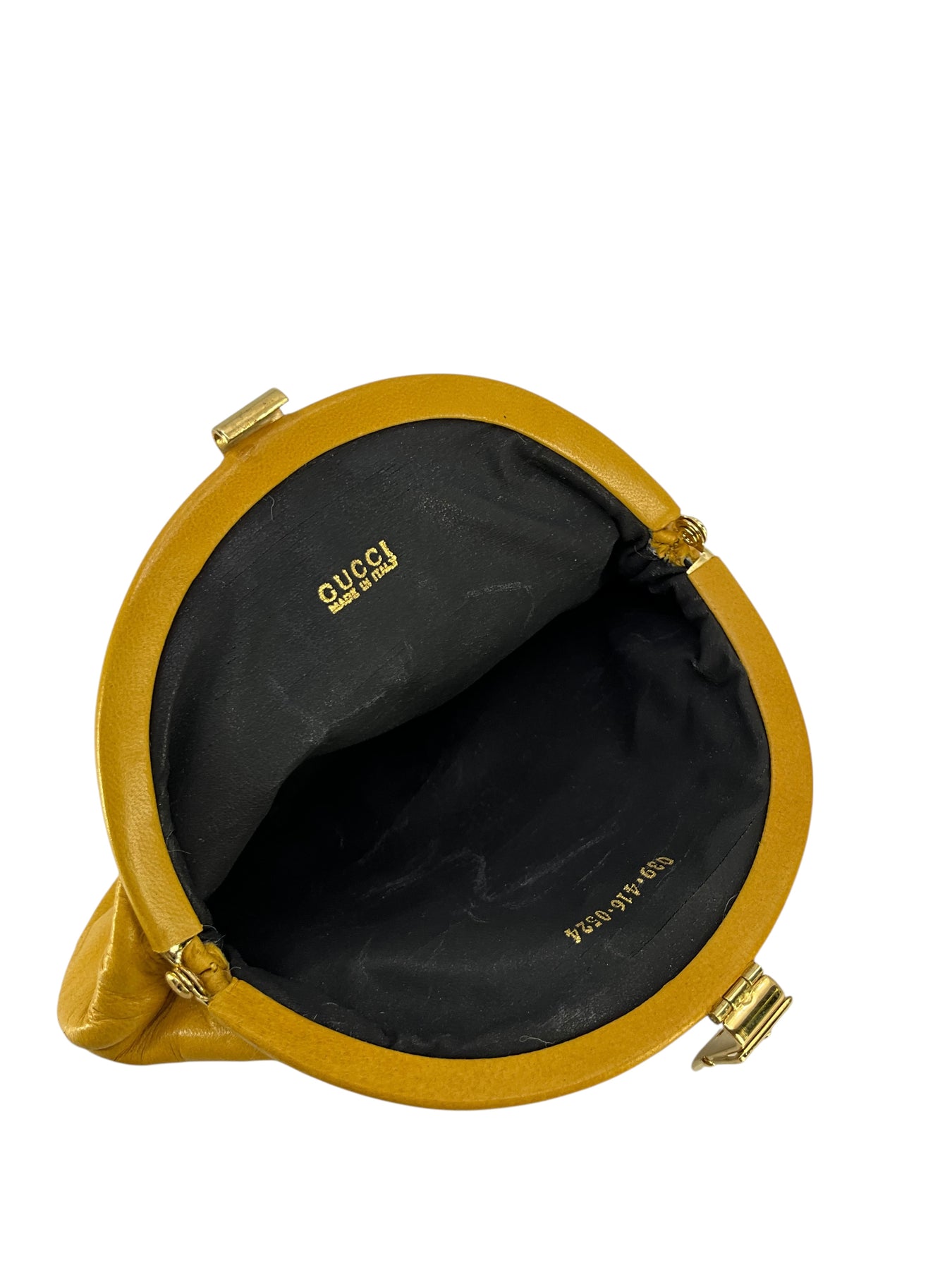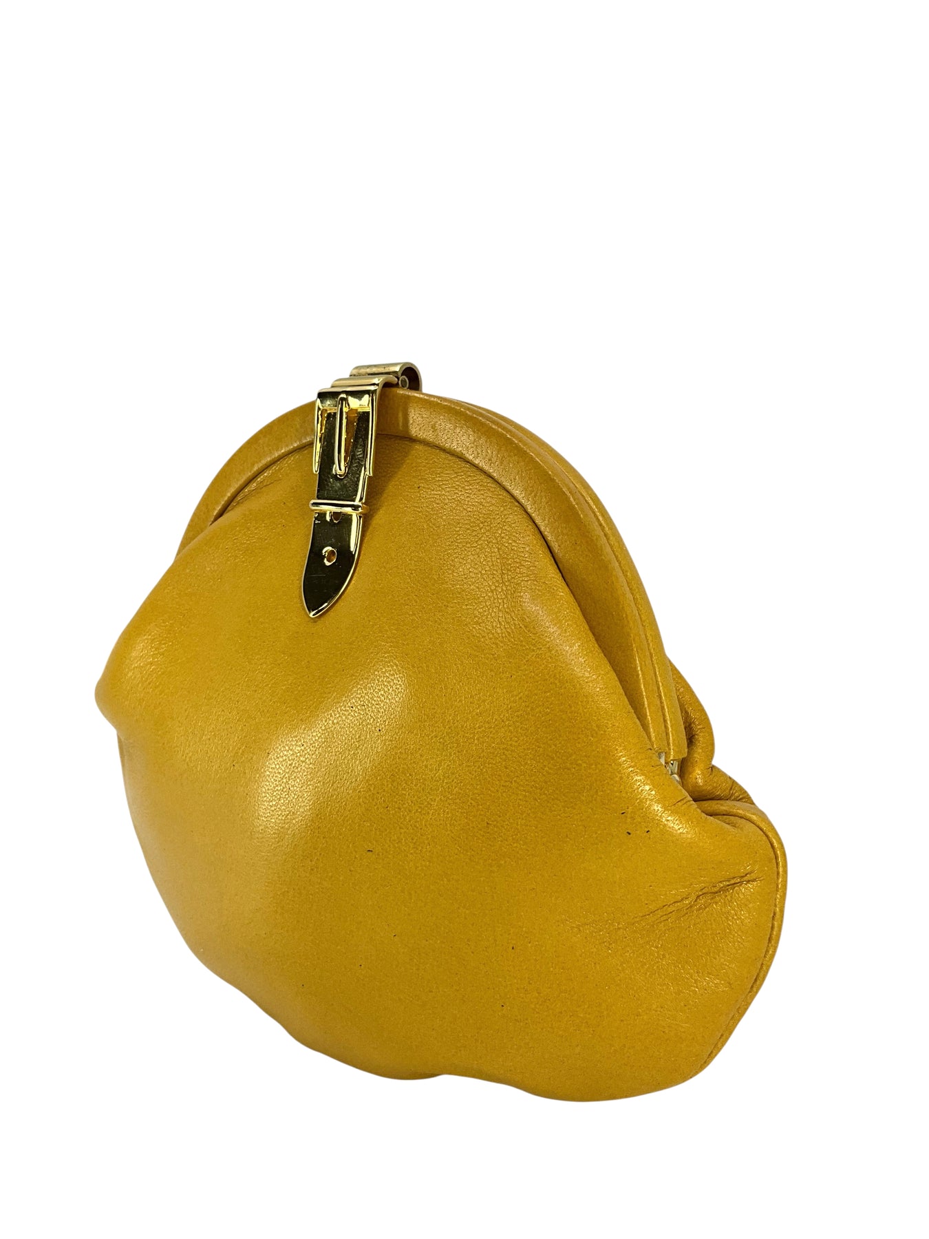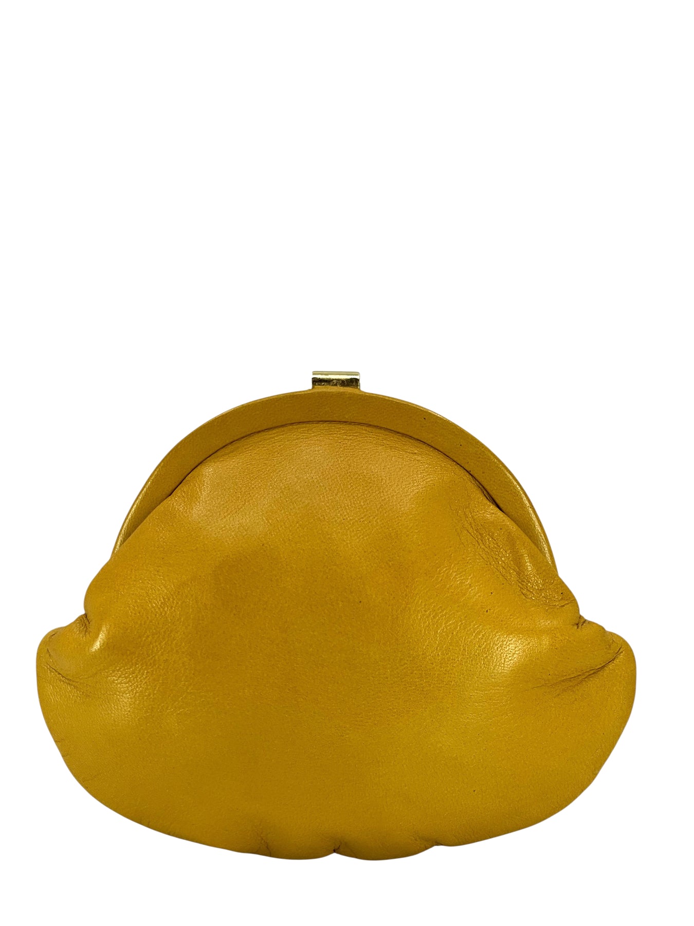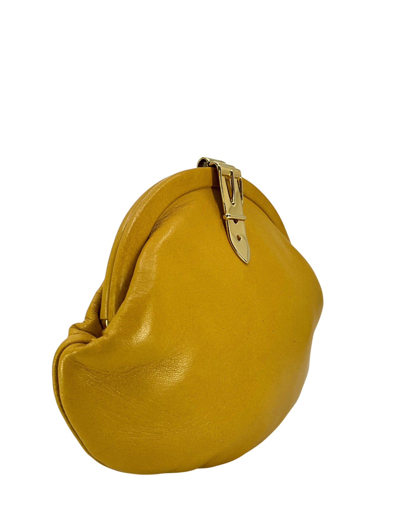 We guarantee the authenticity of this Gucci Vintage Leather Coin Purse crafted in smooth mustard yellow leather with a gold-tone metal buckle clasp closure.