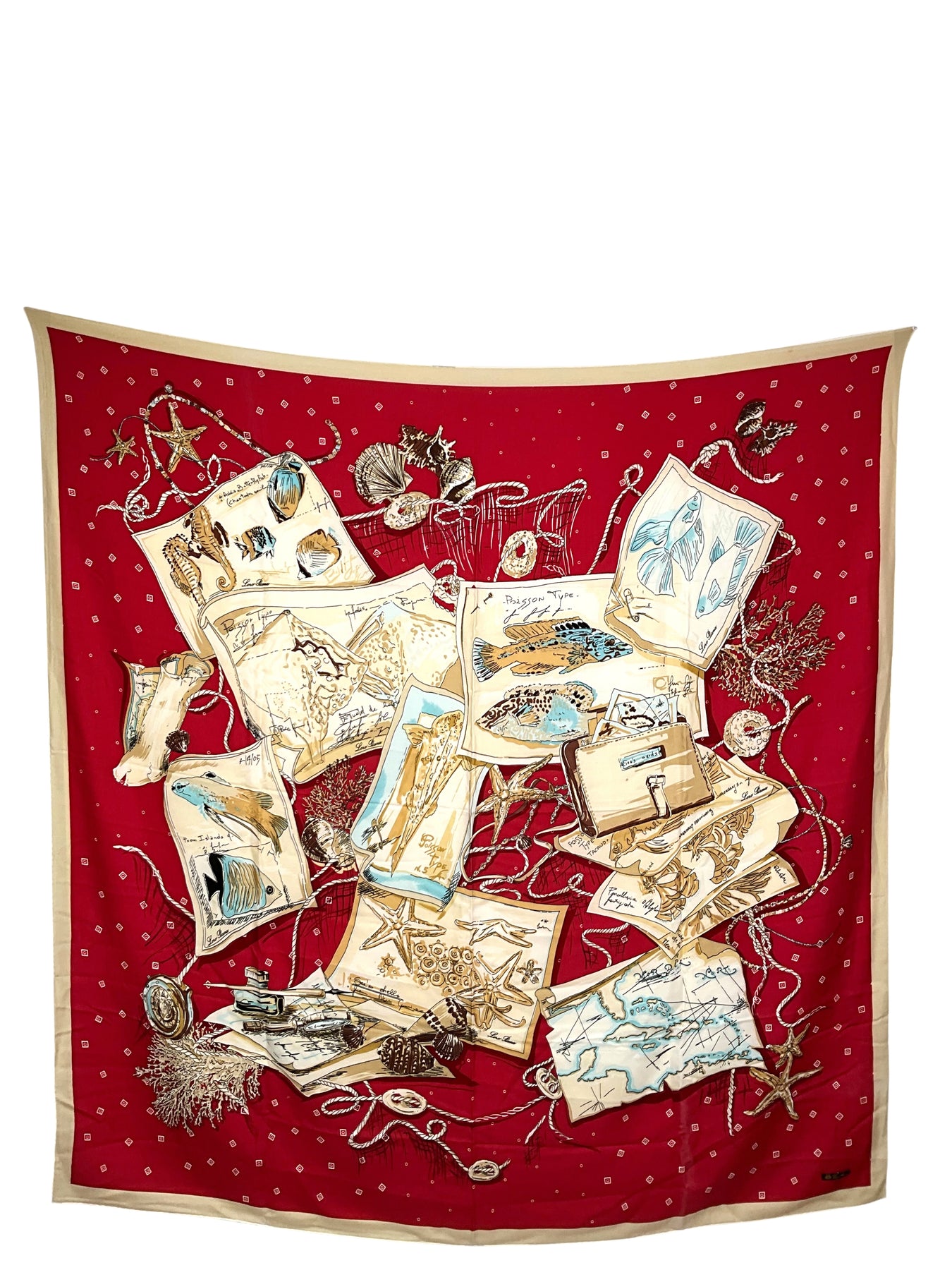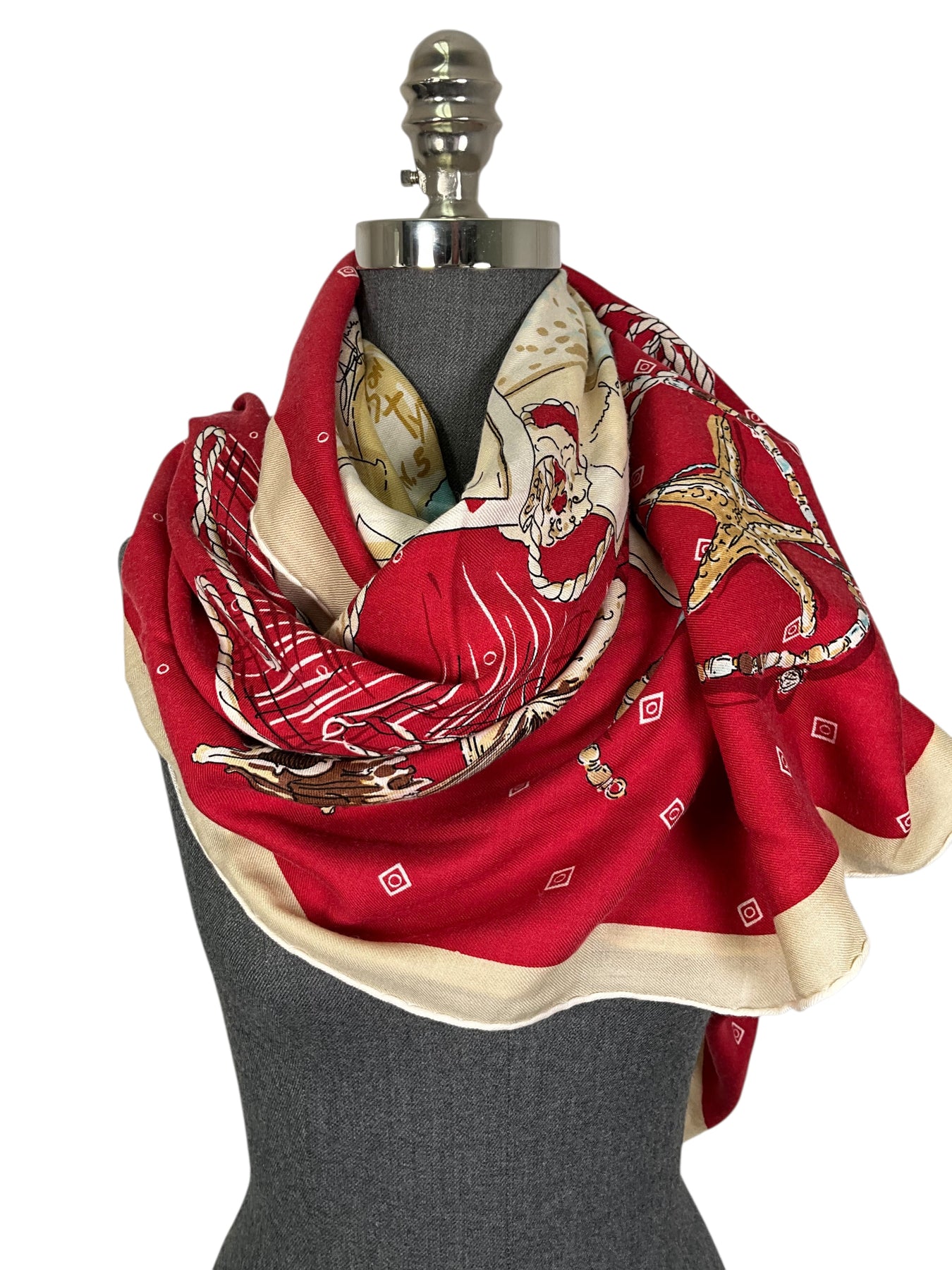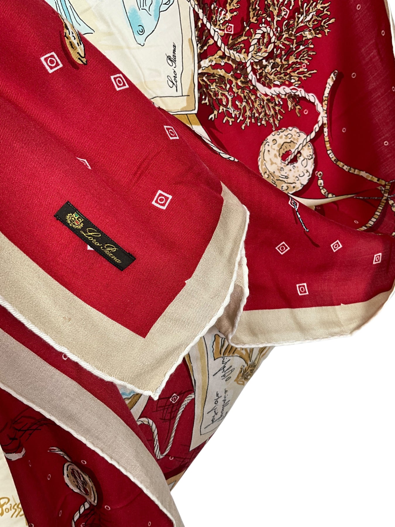 Add to your collection this authentic Loro Piana Floral Cashmere Shawl Scarf beautifully crafted in a red and beige cashmere silk blend with hand-rolled edges.